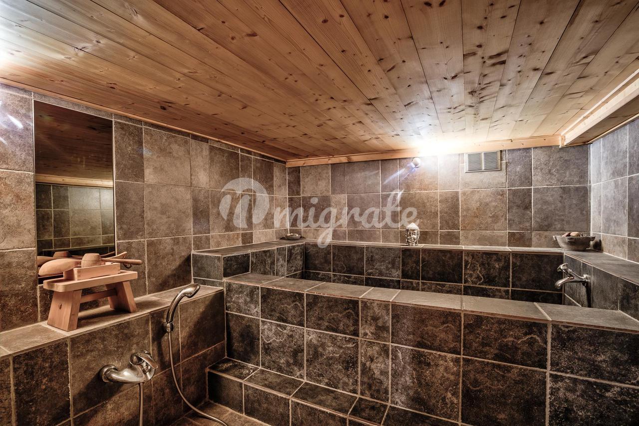 Шале, перестроенное в 2005 году, было отделано по высоким стандартам и прекрасно сочетает в себе роскошь традиционного стиля шале с инновационным современным дизайном. Основная гостиная находится на первом этаже с гостиной двойной высоты, сосредоточенной вокруг камина и огромными вертикальными панорамными окнами, обрамляющими вид на Ле Дрю. Также на этом этаже есть спальня, кабинет/спальня, прачечная и гараж на две машины. На первом этаже есть три спальни и две ванные комнаты, включая главную спальню и антресольную детскую спальню или зону с телевизором. В цокольном этаже есть сауна и японская баня, а также котельная и различные кладовые.