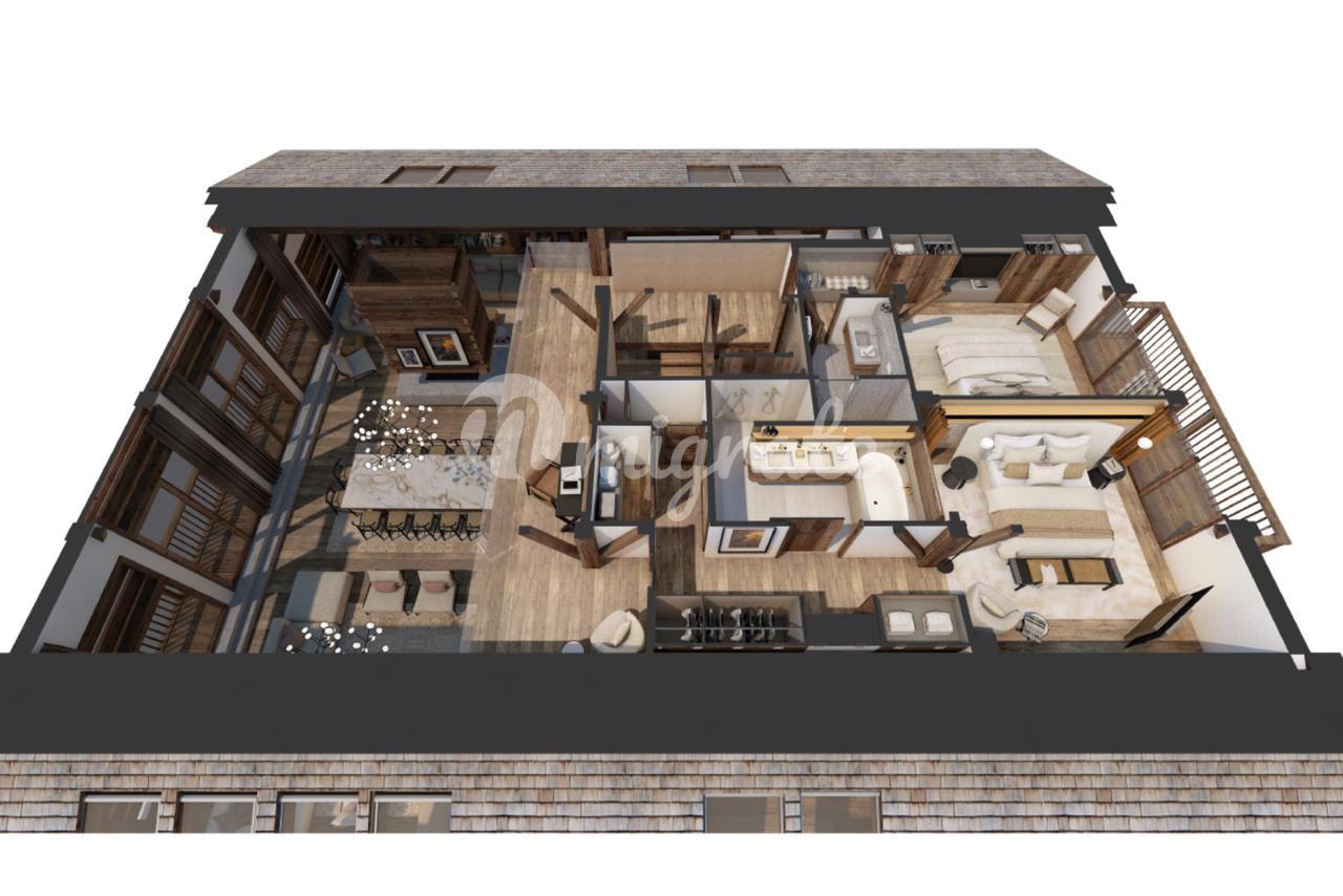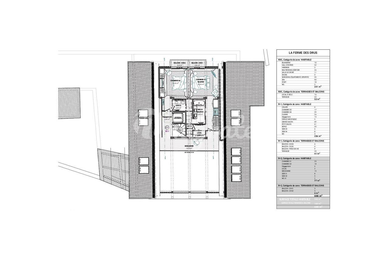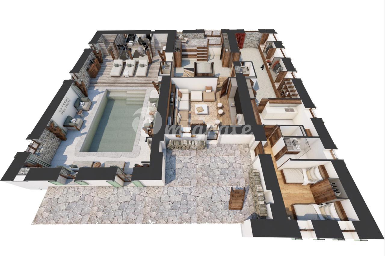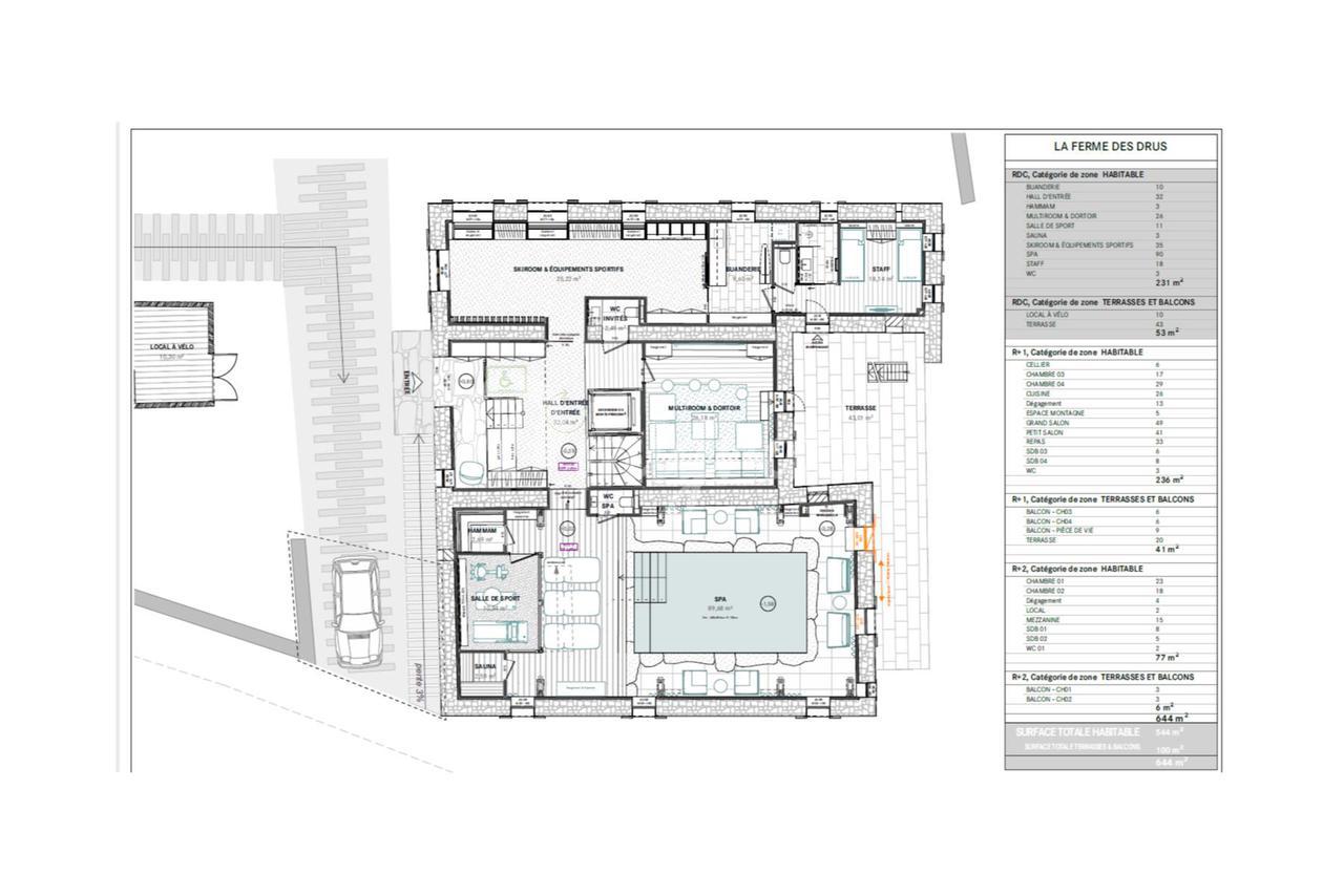 Ferme des Drus, фермерский дом конца 18-го века в центре Ле-Буа, будет преобразован в исключительное шале с 5 спальнями впечатляющего объема, редко встречающееся в Долине. В шале будет несколько балконов и террас, с которых открывается великолепный вид на горный массив Дрю, Бреван и Монблан.