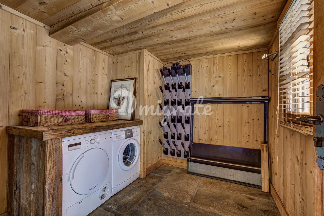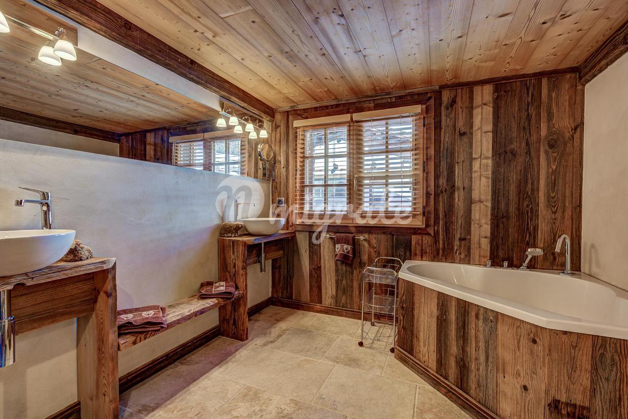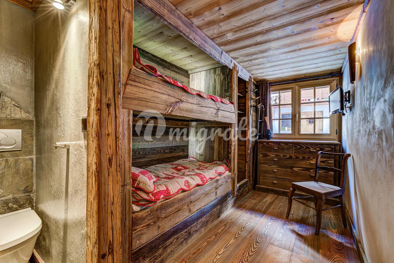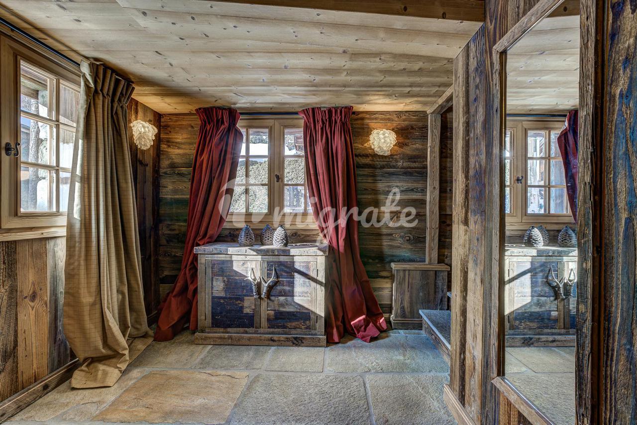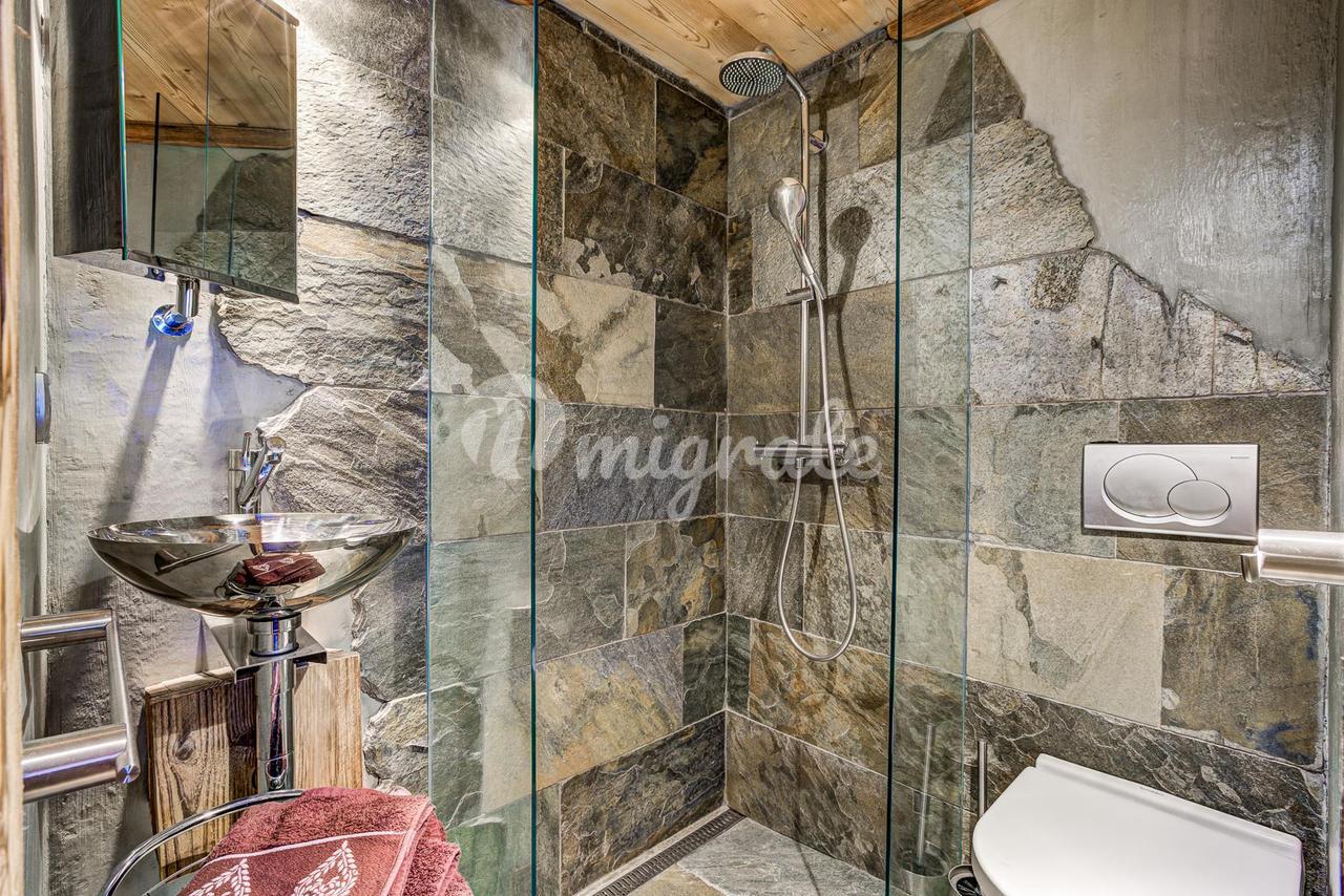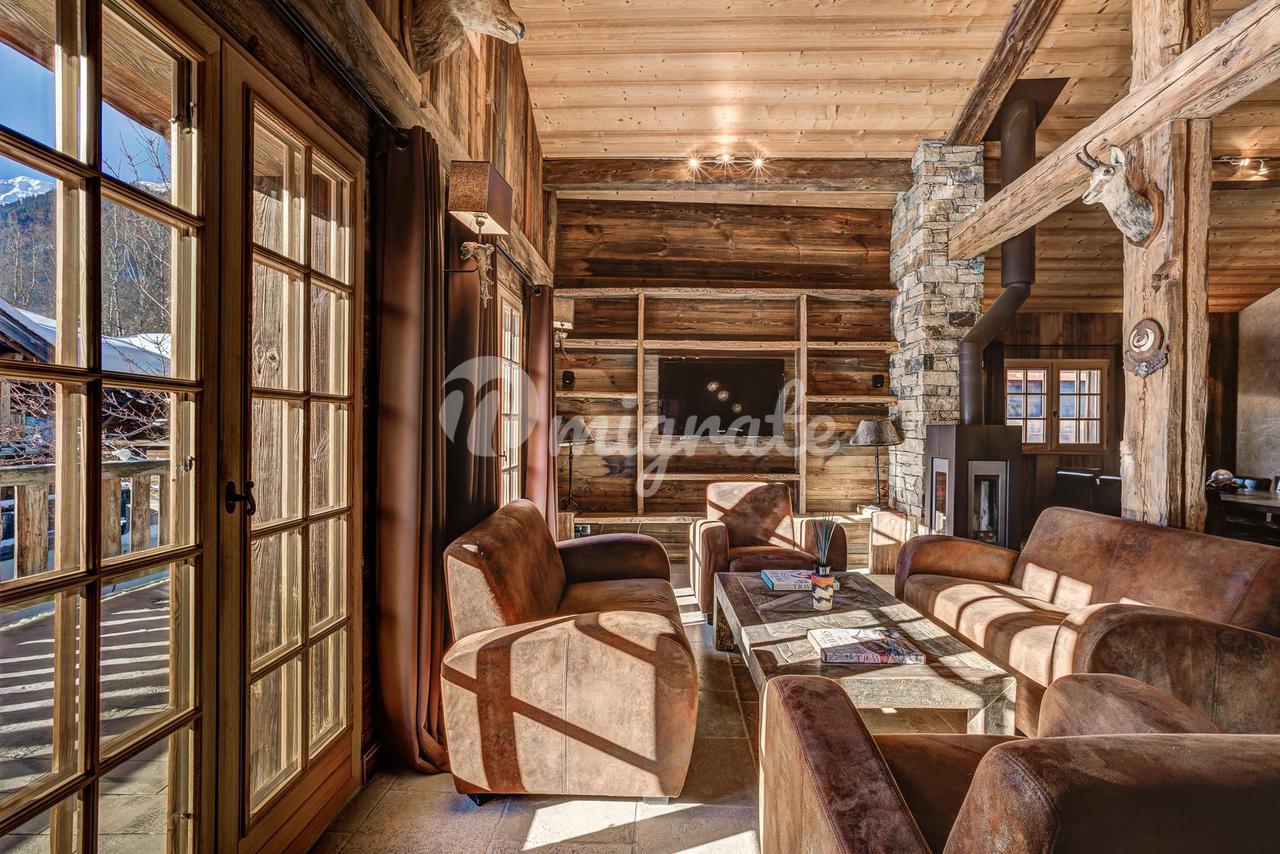 Шале представляет собой типичное альпийское шале из темного дерева и с высококачественной отделкой. Основная жилая площадь находится на первом этаже с гостиной двойной высоты, ведущей на большую солнечную террасу с прекрасным видом. Главная спальня с паровым душем также находится на первом этаже.