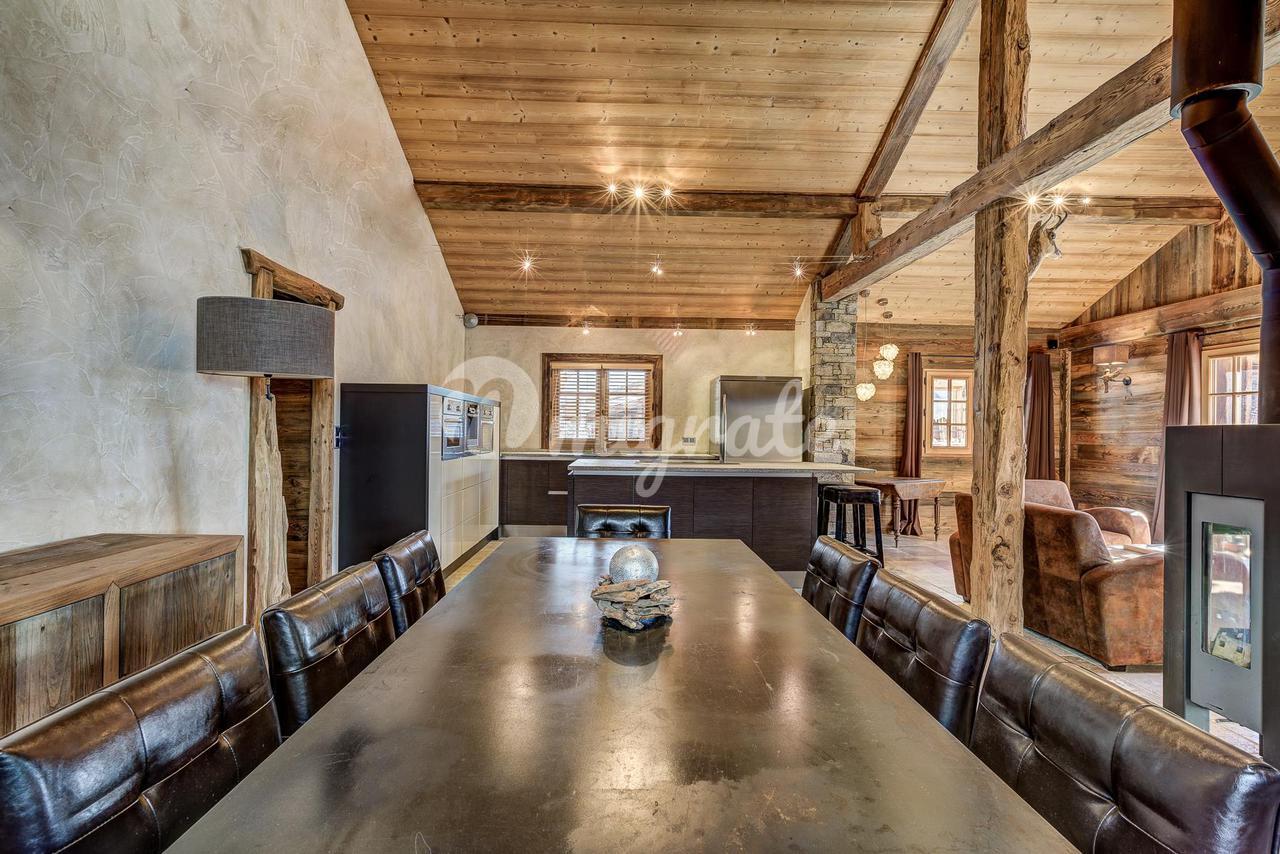 Это красивое шале сочетает в себе современный и горный стиль. Гостиная открытой планировки с двойной высотой делает это шале идеальным для большой семьи, чтобы вместе поужинать перед камином. Его расположение идеально подходит для поля для гольфа и канатной дороги Ла-Флежер, а также обеспечивает легкий доступ к пешеходным тропам и лыжным трассам.
