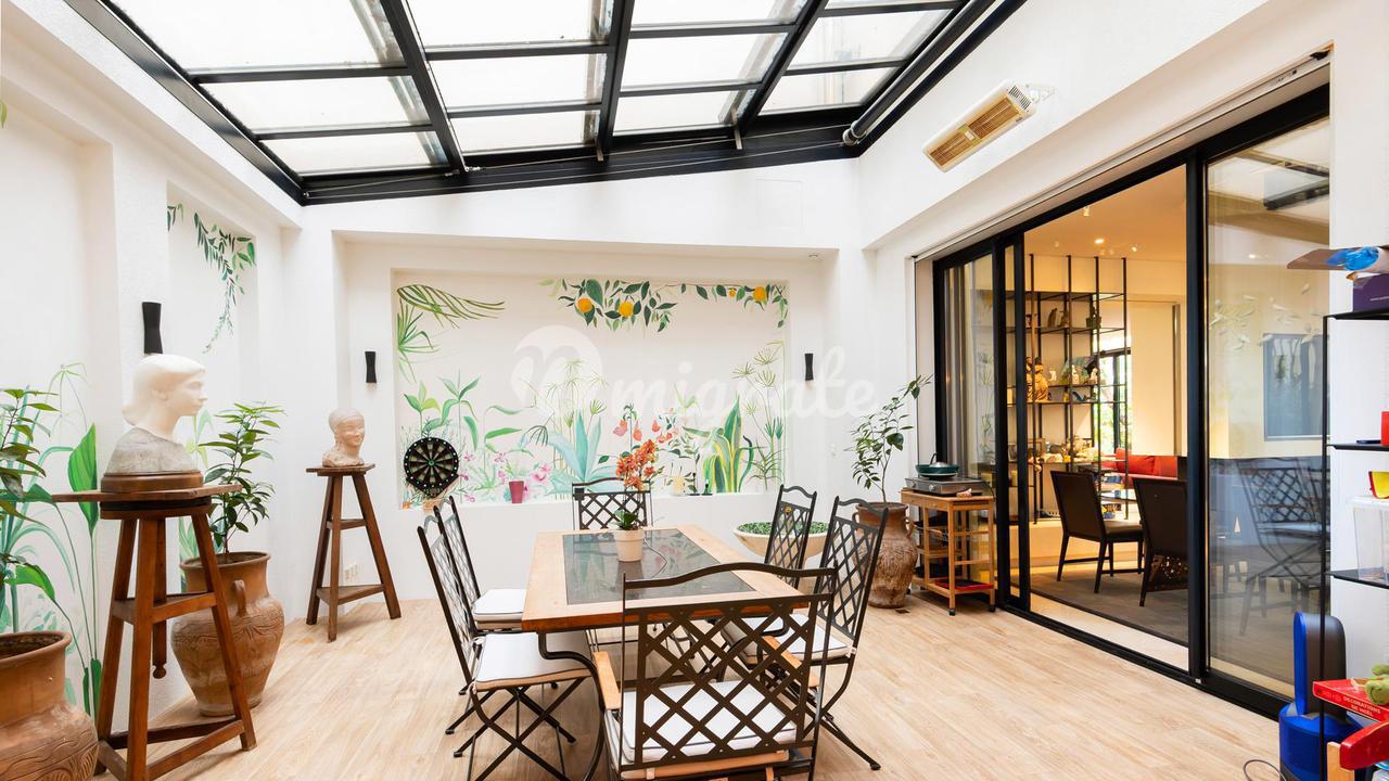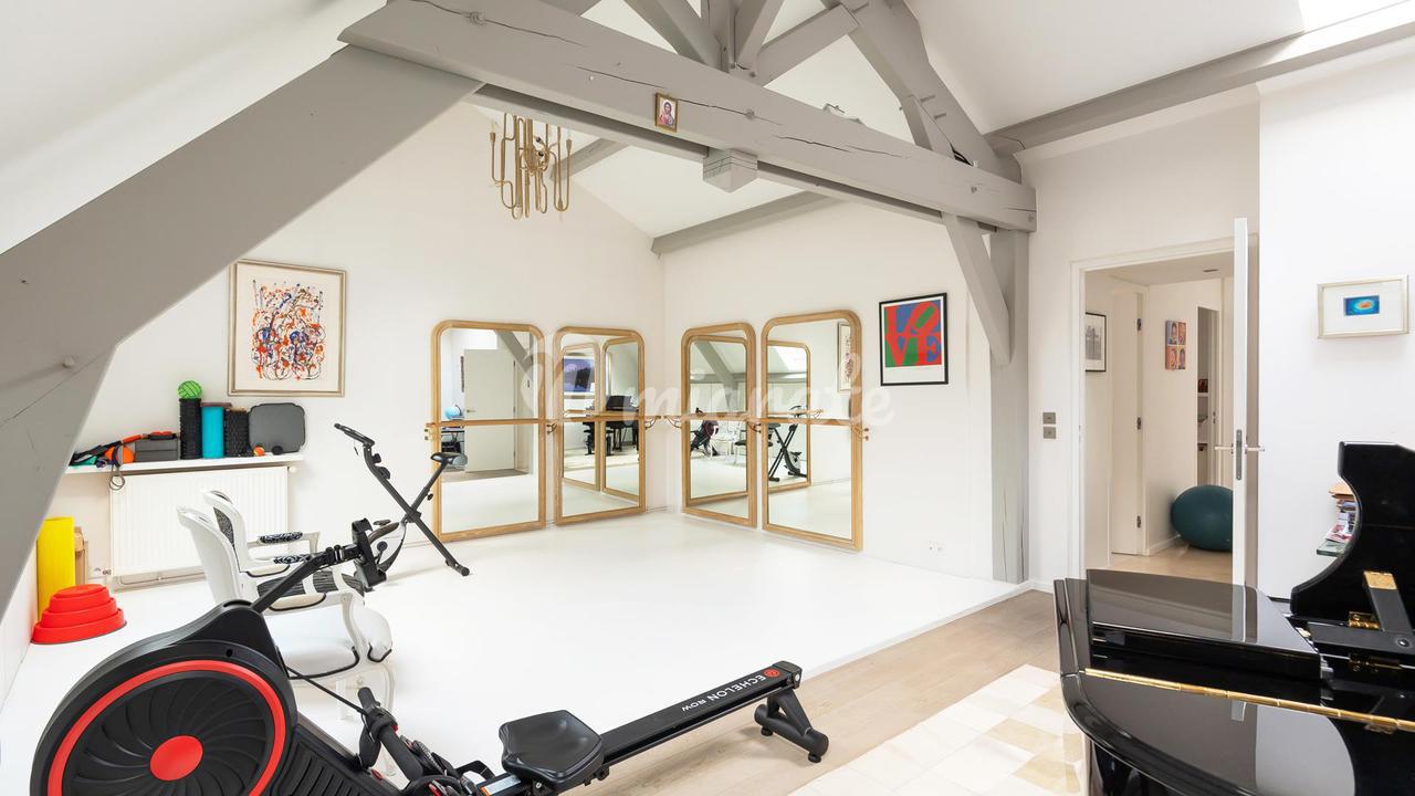 Защищенный от городского шума, он выходит окнами на сад площадью 272,35 кв.м. Полностью отремонтированный архитектором с современным вкусом, этот дом построен на трех уровнях. На первом этаже находится прихожая, гостиная площадью более 50 кв.м с видом на восток с прекрасным видом на ландшафтный сад, кухня Bulthaup, гостевые туалеты и патио, покрытое раздвижной стеклянной крышей в качестве зимнего сада. На втором этаже находится главная спальня с балконом с видом на сад, гардеробная, ванная комната с душем, ванной и туалетом, две спальни, каждая со своей ванной комнатой. Далее, на втором этаже есть еще две спальни, которые имеют общую ванную комнату, и большая жилая площадь, в настоящее время преобразованная в офис / танцевальную комнату. В подвале есть подвал, подсобное помещение и кладовая. Парковочное место в кондоминиуме дополняет это свойство.