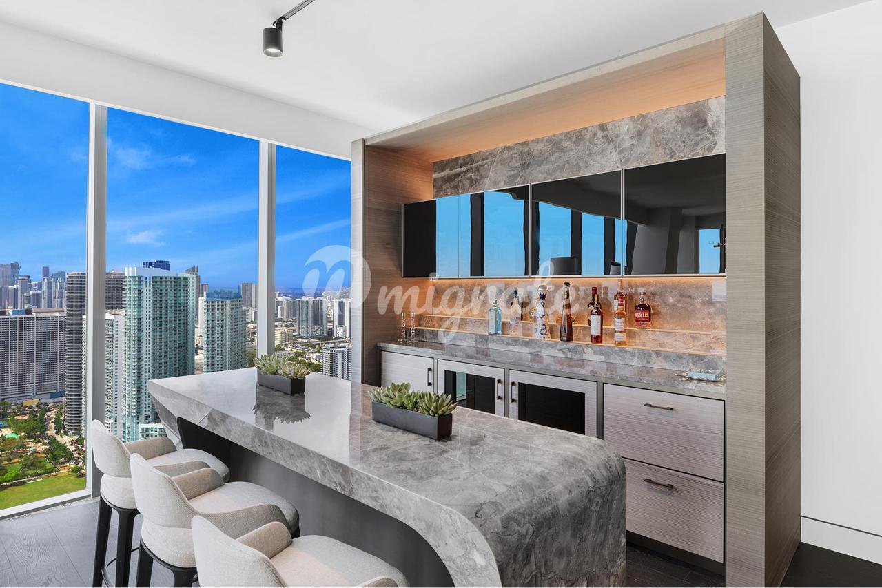Живите роскошно! 3 BR 3,5 BA + office sky home переопределяет современную элегантность. Непревзойденная отделка на заказ по всей планировке 3887 квадратных метров. Благодаря тщательно проработанным столярным изделиям, мебели итальянского дизайна и сборки ни одна деталь не была упущена из виду или сэкономлена на расходах. Богатый паркет из твердых пород дерева приглашает вас из частного фойе в большой салон с просторными жилыми / развлекательными зонами и захватывающим панорамным видом на залив Бискейн, Майами-Бич и динамичный городской пейзаж. Кухня в европейском стиле оснащена изготовленной на заказ мебелью, бытовой техникой Wolf и варочной панелью на природном газе. Основной люкс, элегантно обставленный, с гардеробной, гардеробной и прилегающим официальным кабинетом. Система освещения Lutron, Джош. Голосовое управление Au и Sonos. Этот искусно спроектированный дом предлагается полностью под ключ - единственное, чего не хватает, - это вас!