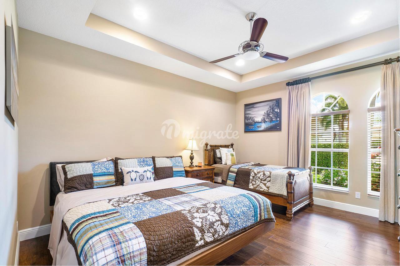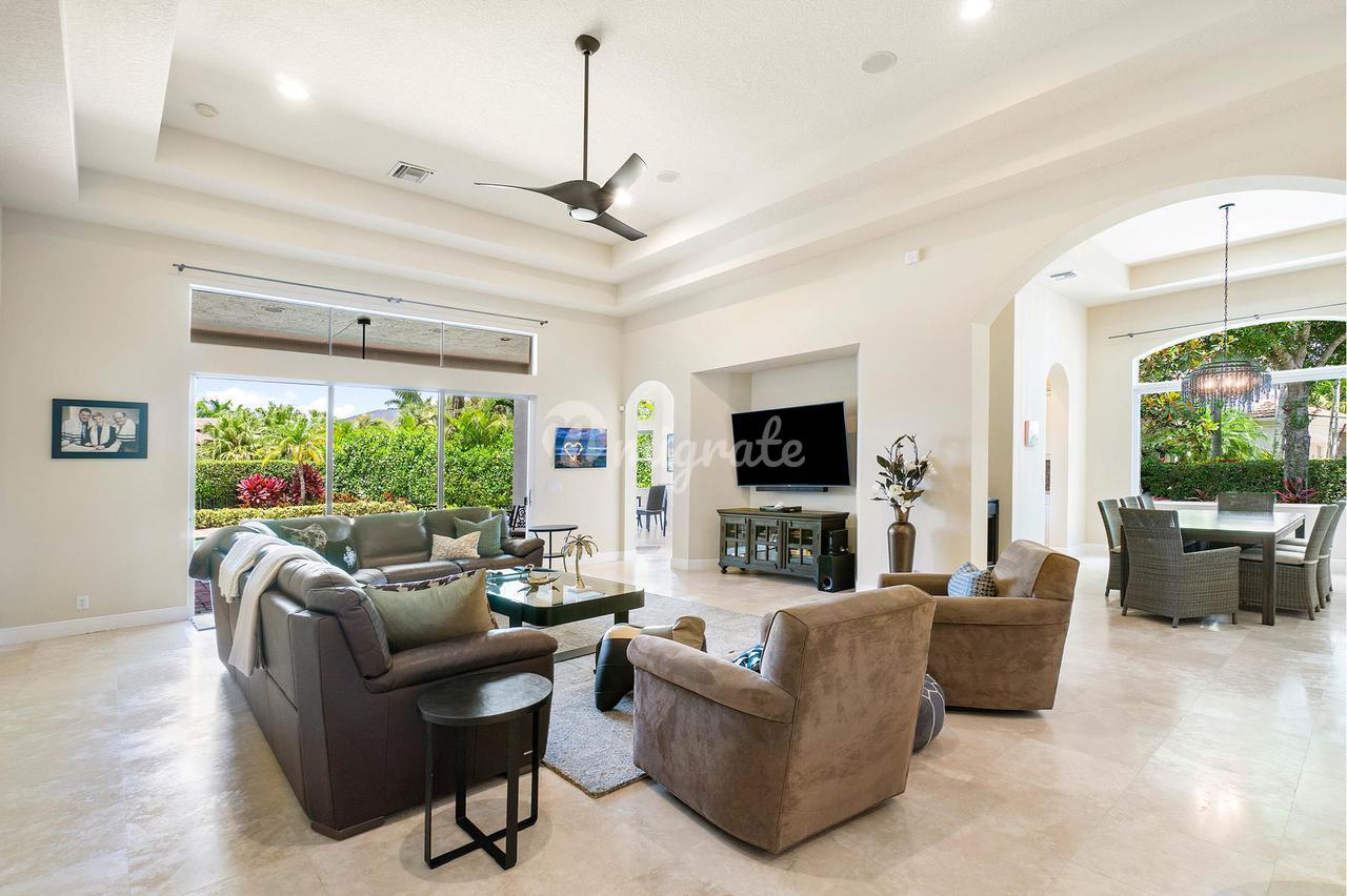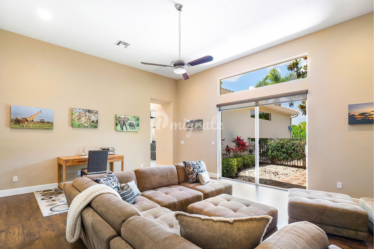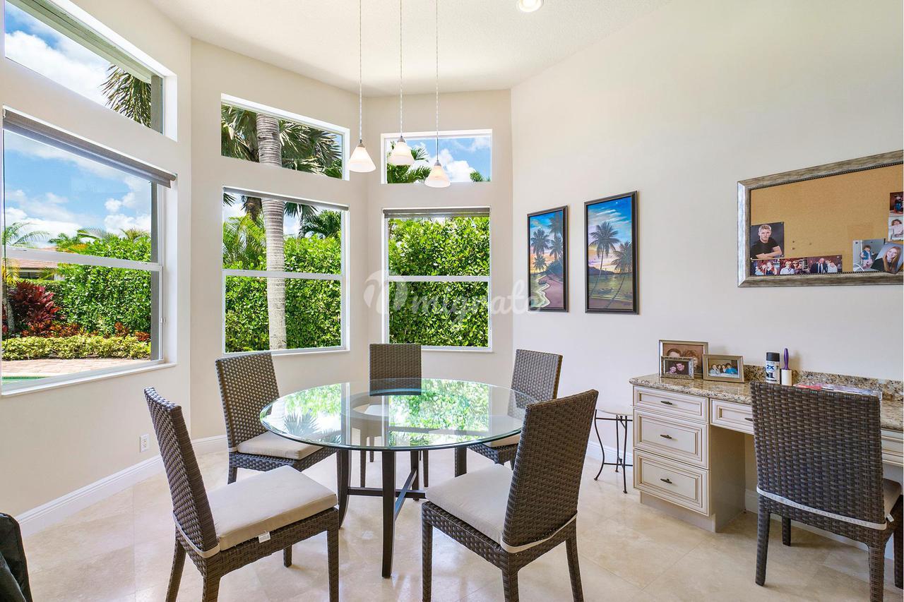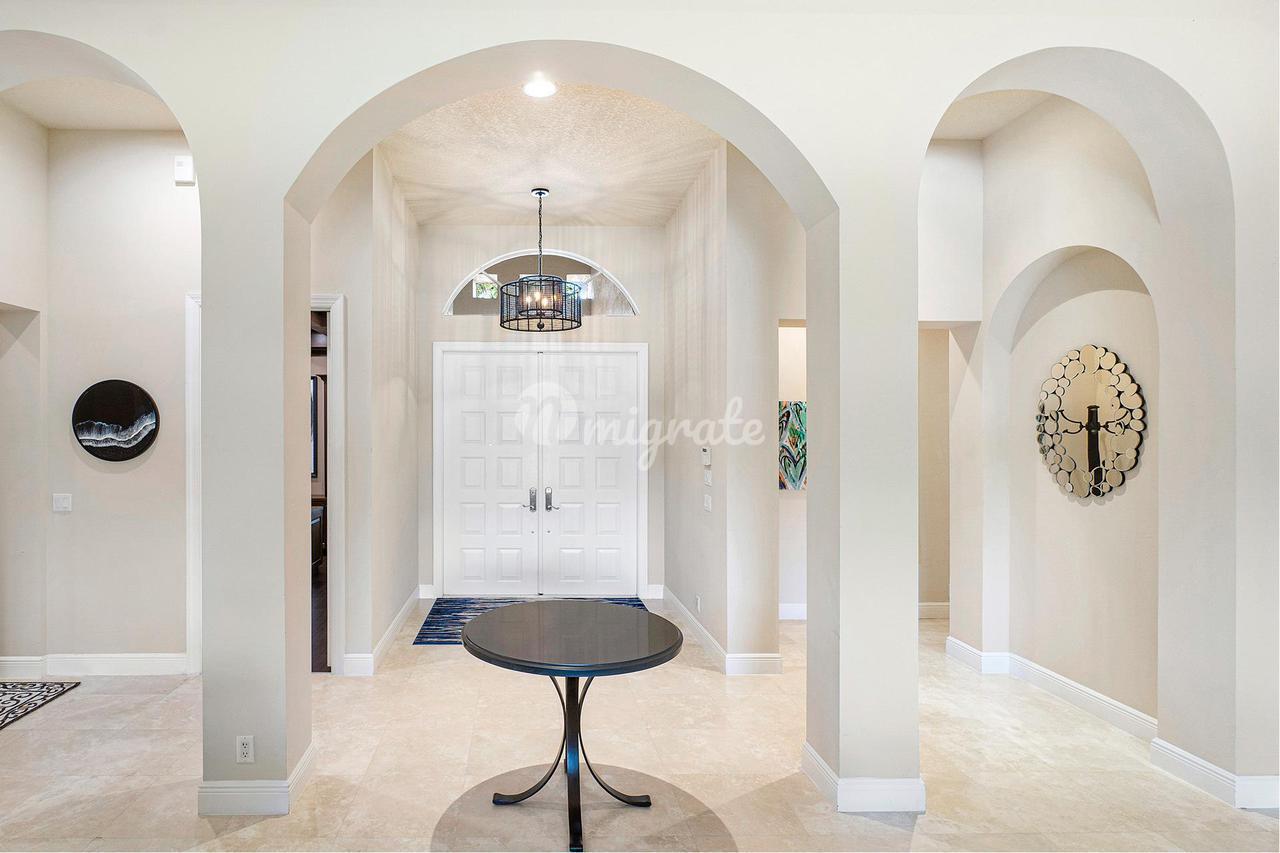 Этот дом для гольфа в загородном клубе Мизнер с 4 кроватями и 4,1 ванными комнатами площадью более 4200 кв. футов включает в себя 3 основных люкса и дополнительную гостевую комнату с ванной комнатой. Кроме того, этот дом имеет кольцевую подъездную дорожку и расположен на участке площадью более 13000 кв. футов в тупике. Войдите через парадные двери в большую комнату с видом на просторный внутренний дворик и бассейн. Большая комната ведет ко всем жилым зонам и спальням. Кухня для гурманов выходит в зону для завтрака с видом на бассейн и двор с одной стороны и примыкает к столовой с другой. Спальня владельца находится на одной стороне дома с 2 индивидуальными кроватями и просторной ванной. Просторный семейный номер ведет в большую гостевую спальню с ванной комнатой, доступ к которой осуществляется из обеих комнат. 2 добавить. гостевые апартаменты и индивидуальный домашний офис дополняют этот единственный в своем роде одноэтажный дом, и не нужно ждать полноценного гольфа!