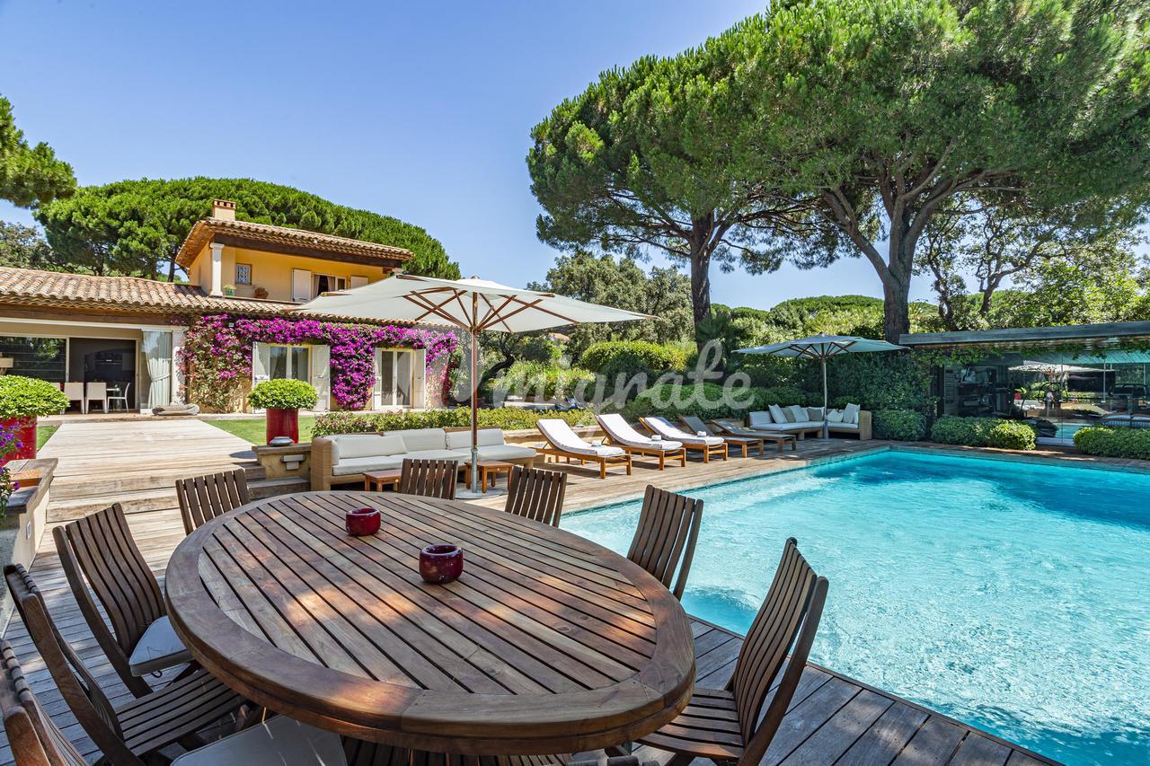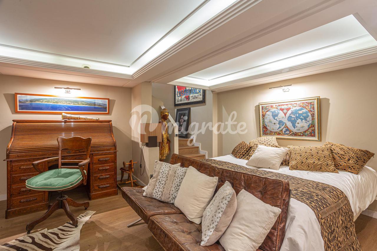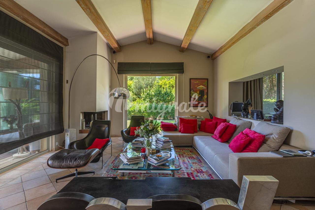 Предлагая около 300 кв. м жилья на двух уровнях, этот великолепный дом включает в себя: Прихожая, гостиная/столовая, открытая кухня, шесть спален с собственными ванными комнатами, кабинет, прачечная и винный погреб. В отеле также есть пейзажный бассейн, джакузи, турецкая баня и тренажерный зал. Расположенный в очаровательных садах площадью около 3000 кв. м с множеством средиземноморской флоры, несколькими террасами и красивыми лужайками.