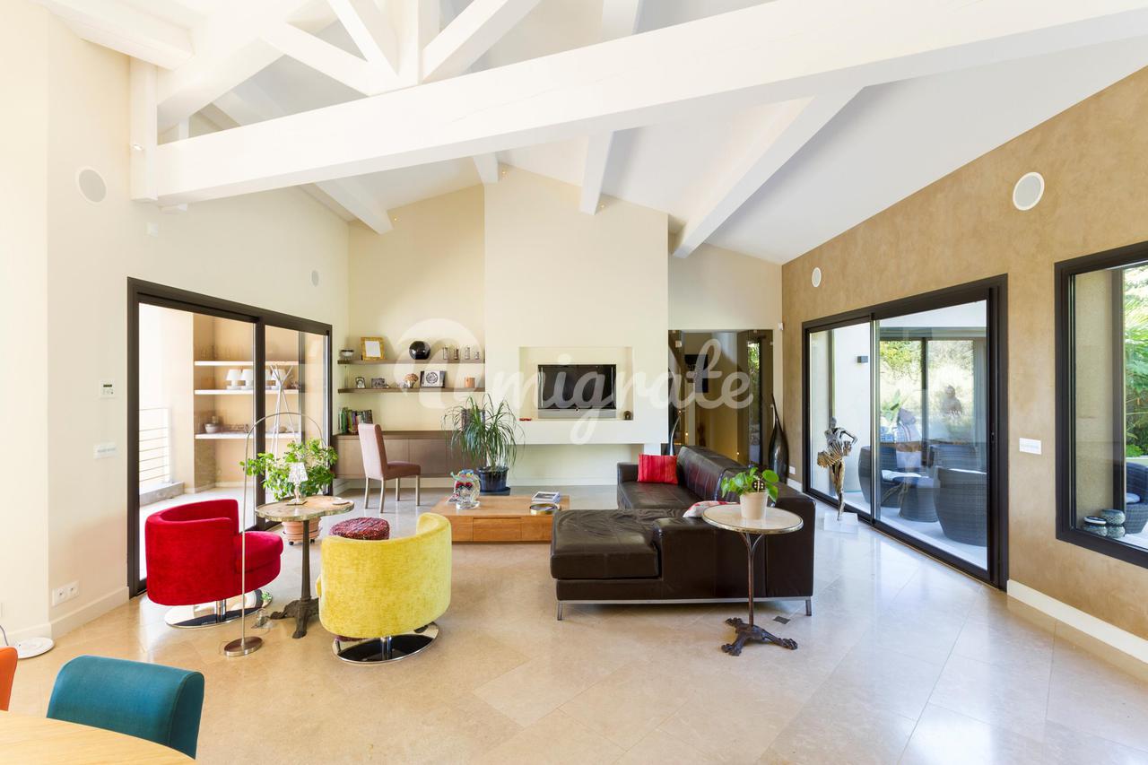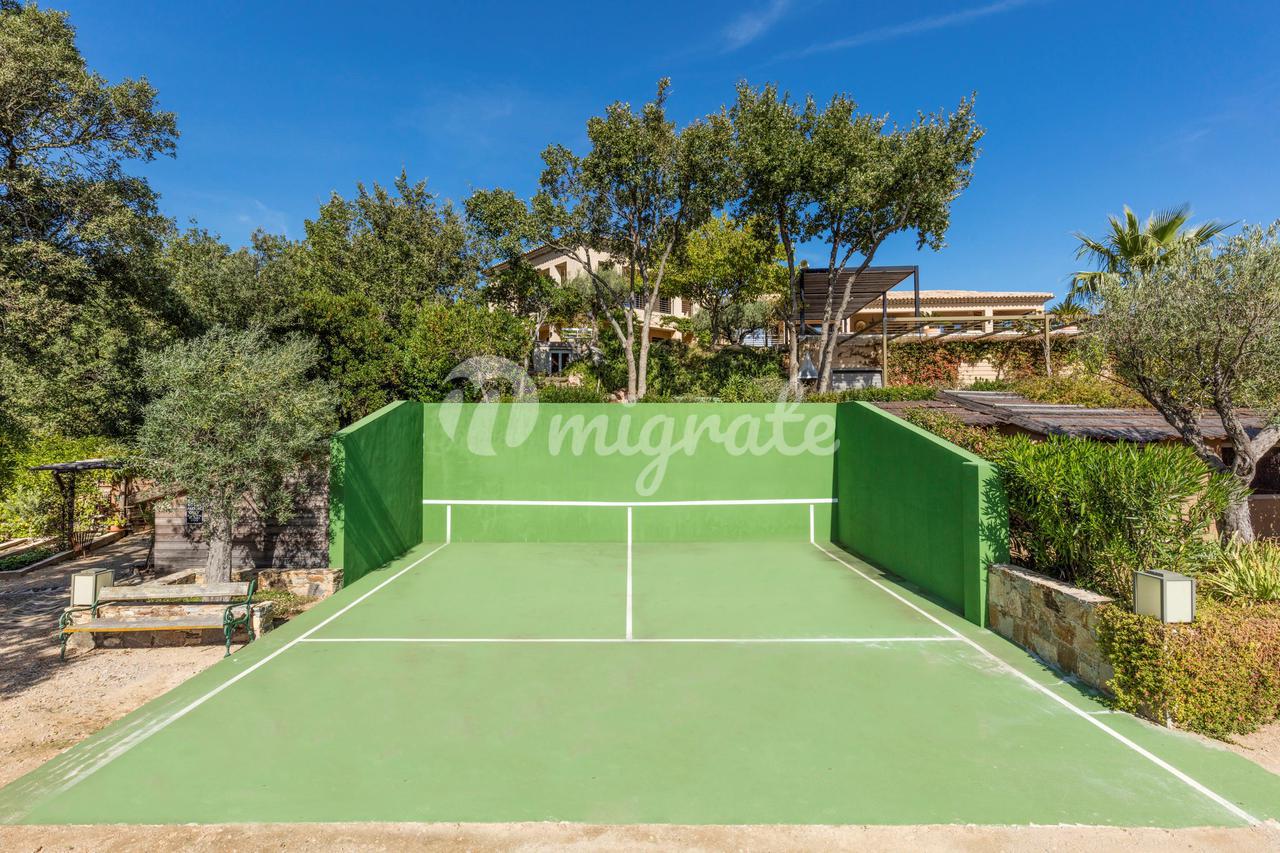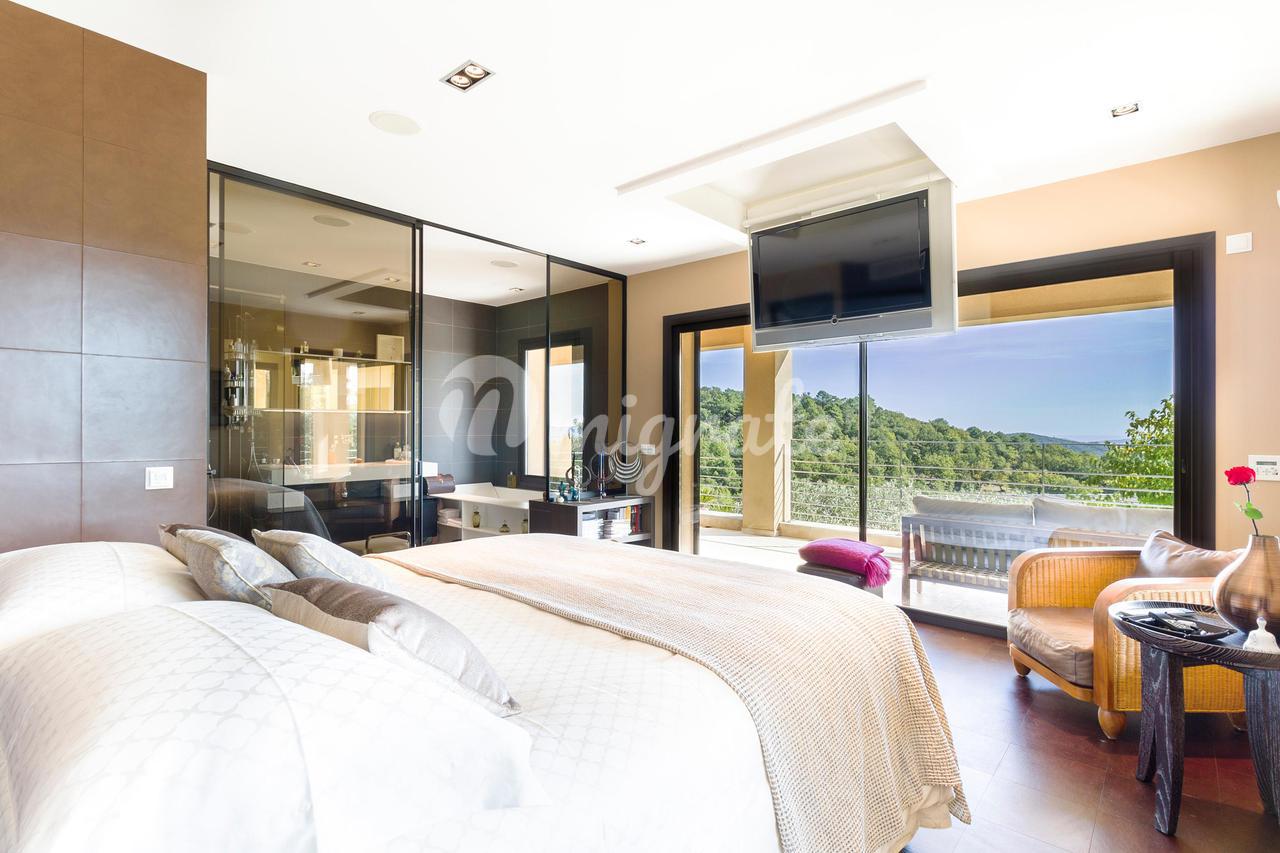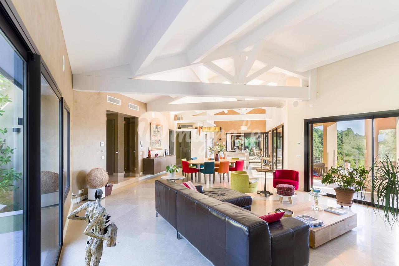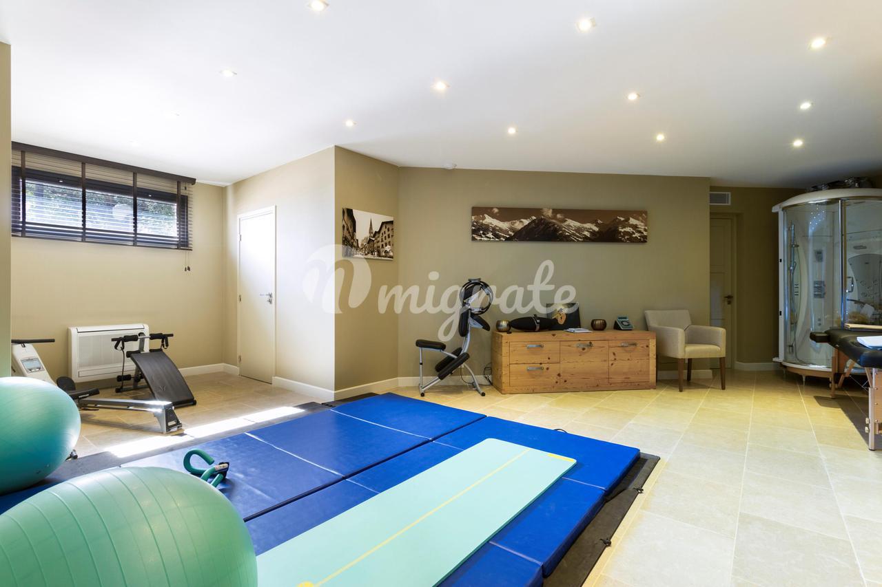 Главный дом, расположенный на двух полууровнях и готовый подвал, был идеально спланирован и спланирован. Этот дом расположен в тихом месте, на двух гектарах закрытого лесного массива, и его не упускают из виду. В гостиные почти постоянно светит солнце благодаря большим эркерам, из которых также открывается прекрасный вид на близлежащие холмы. Полукрытые террасы обеспечивают доступ к большому бассейну с подогревом, полю для игры в петанк, патио с прудом с рыбками, большой изолированной площадке для барбекю и тренировочной стене для тенниса. В дополнение к квартире площадью 75 кв.м есть тренажерный зал и ТВ-зона.