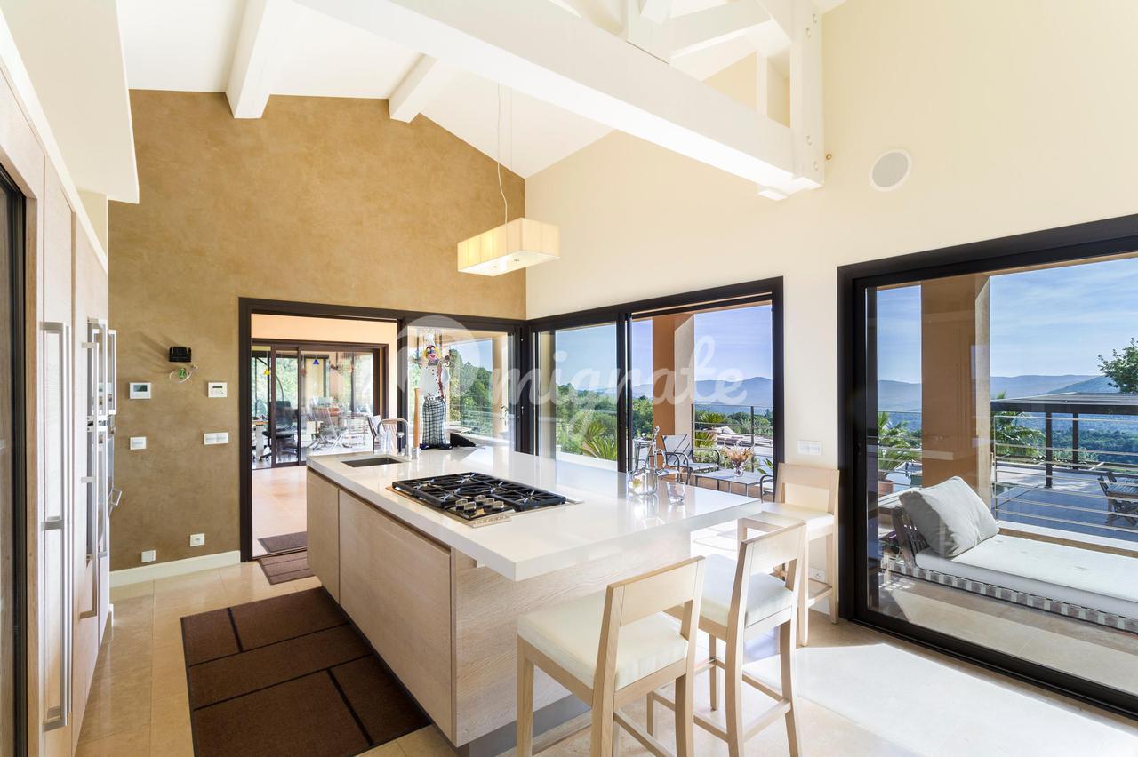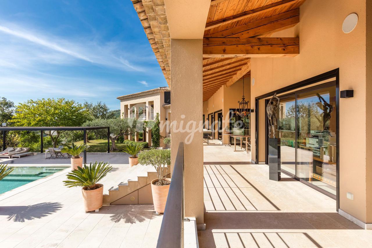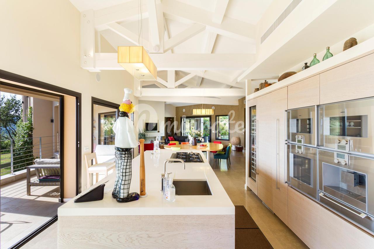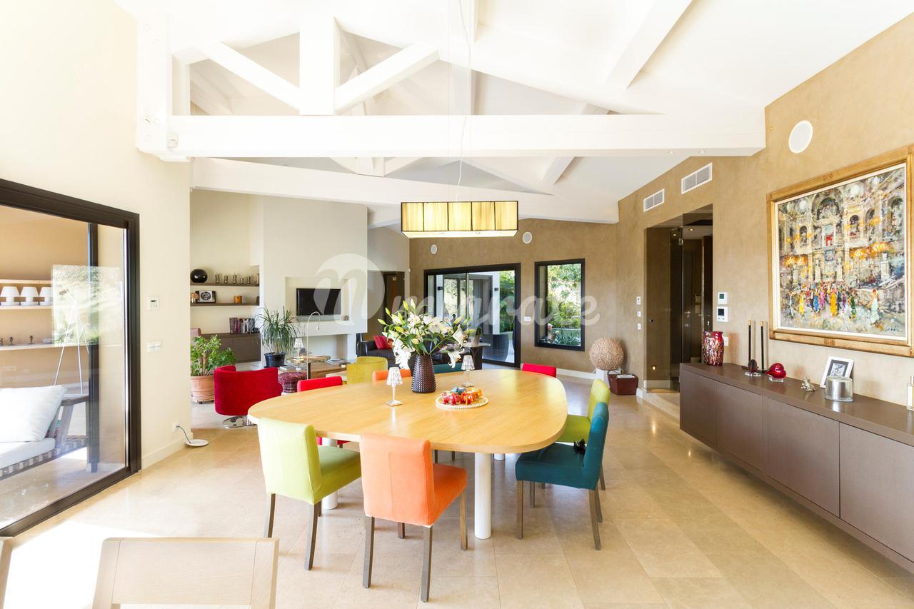 Главный дом, расположенный на двух полууровнях и готовый подвал, был идеально спланирован и спланирован. Этот дом расположен в тихом месте, на двух гектарах закрытого лесного массива, и его не упускают из виду. В гостиные почти постоянно светит солнце благодаря большим эркерам, из которых также открывается прекрасный вид на близлежащие холмы. Полукрытые террасы обеспечивают доступ к большому бассейну с подогревом, полю для игры в петанк, патио с прудом с рыбками, большой изолированной площадке для барбекю и тренировочной стене для тенниса. В дополнение к квартире площадью 75 кв.м есть тренажерный зал и ТВ-зона.
