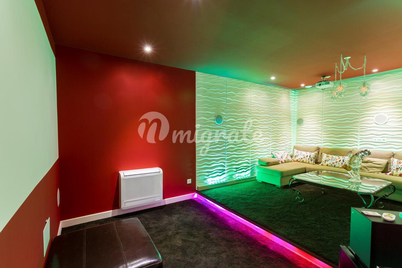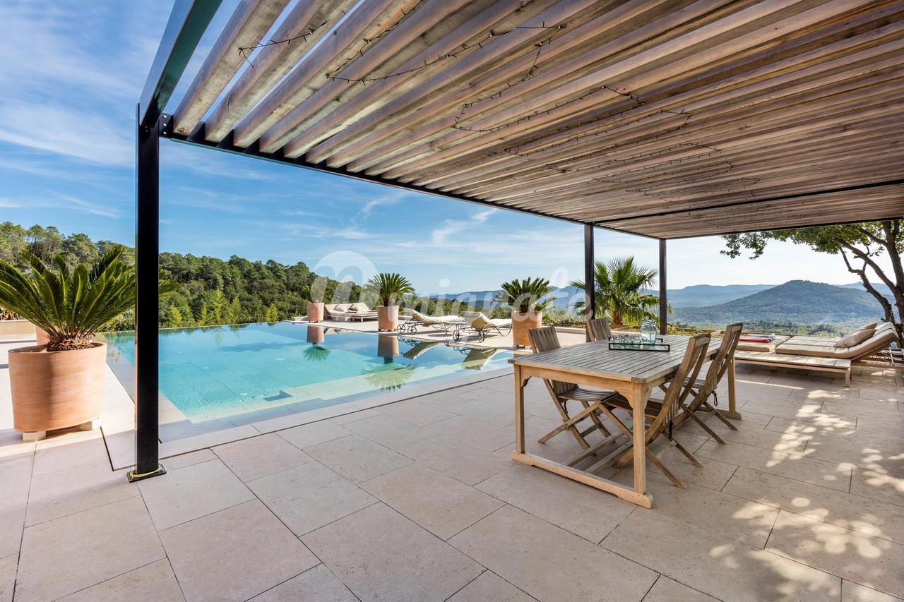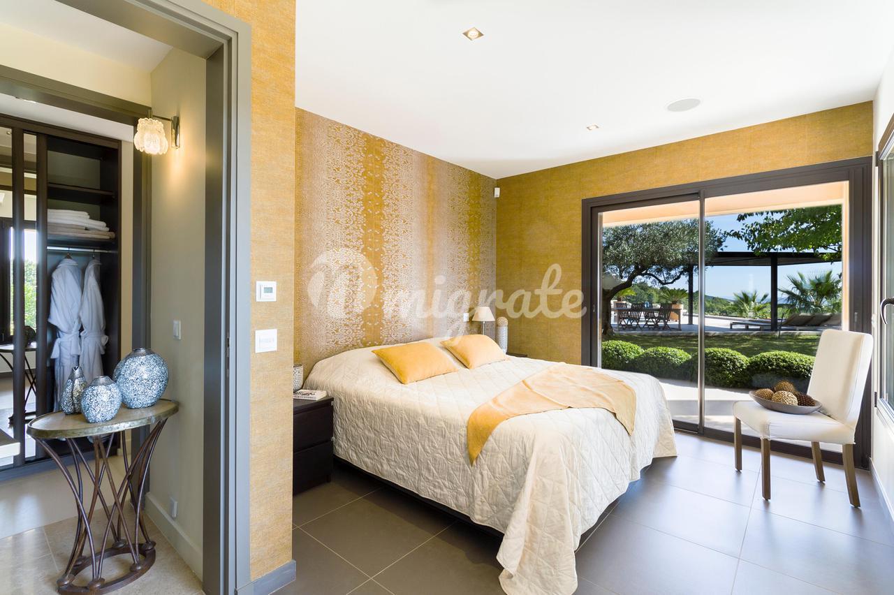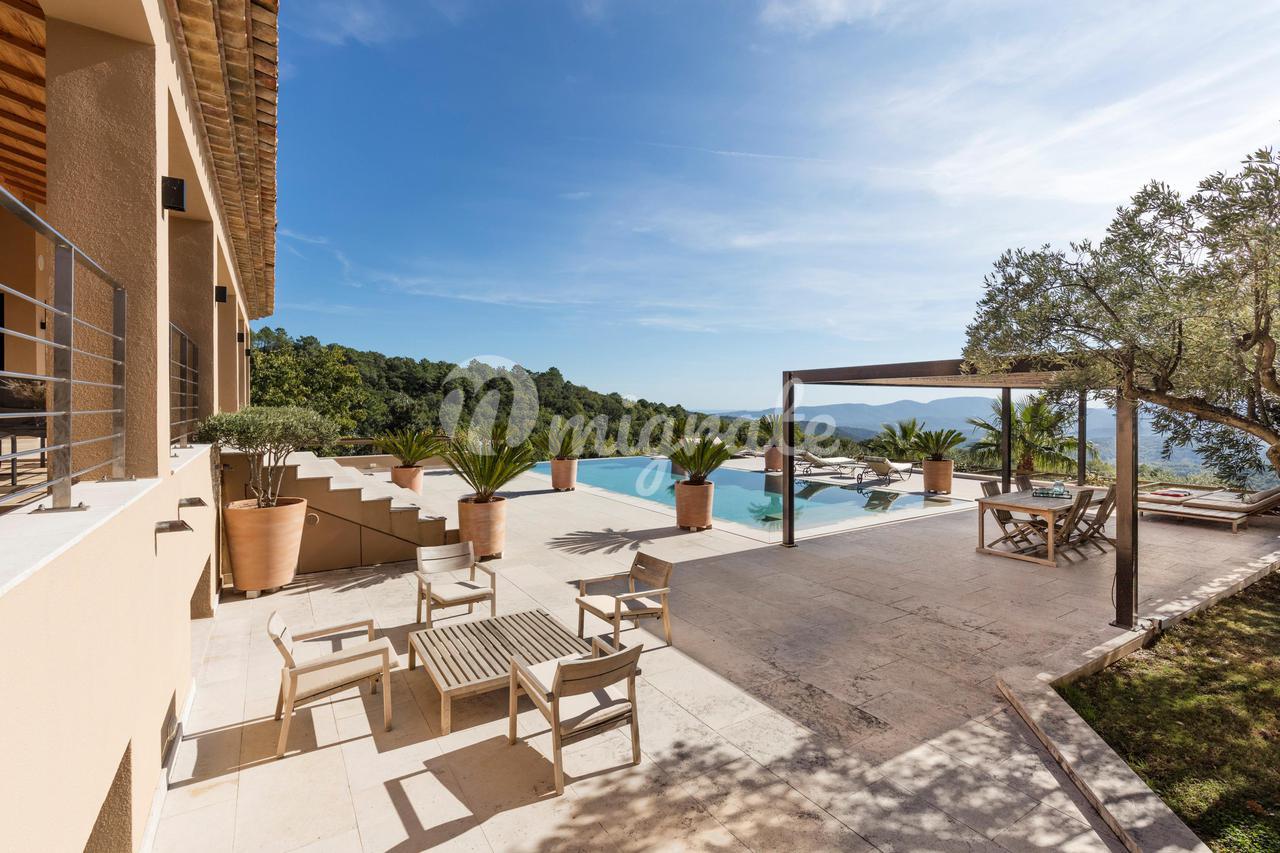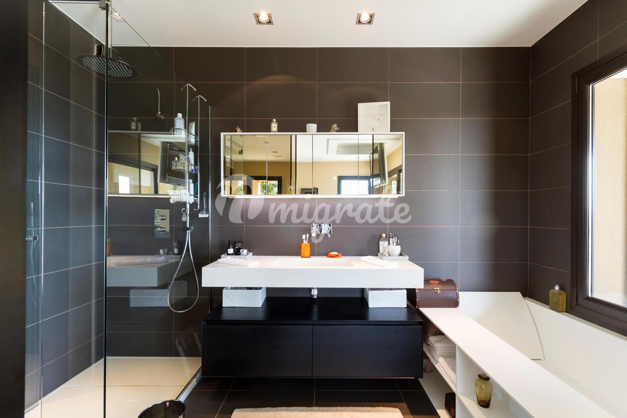 Главный дом, расположенный на двух полууровнях и готовый подвал, был идеально спланирован и спланирован. Этот дом расположен в тихом месте, на двух гектарах закрытого лесного массива, и его не упускают из виду. В гостиные почти постоянно светит солнце благодаря большим эркерам, из которых также открывается прекрасный вид на близлежащие холмы. Полукрытые террасы обеспечивают доступ к большому бассейну с подогревом, полю для игры в петанк, патио с прудом с рыбками, большой изолированной площадке для барбекю и тренировочной стене для тенниса. В дополнение к квартире площадью 75 кв.м есть тренажерный зал и ТВ-зона.