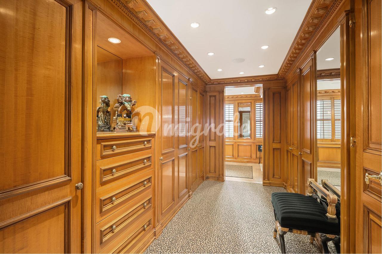 Войдя через частную площадку лифта со скрытым гардеробом, можно попасть в обширную галерею, выходящую на Центральный парк, с большим гардеробом и дамской комнатой. Галерея выходит в Большую гостиную, выходящую на Пятую авеню, с несколькими большими окнами, выходящими на Пятую авеню в Центральный парк, откуда открывается захватывающий дух вид. В комнате есть паркетные полы и красивые потолочные балки, камин с мягким освещением, ведущий в романтическую формальную столовую с дровяным камином, кессонные потолки, паркетные полы, окруженные видом на Центральный парк, в центре которого находится великолепная хрустальная люстра и встроенный шкафы. Развлекательное пространство следует за современной кухней с современной техникой и комнатой для непринужденной трапезы, ведущей к Центральной галерее и библиотеке. Вид на Центральный парк продолжается на обшитую деревянными панелями библиотеку размером с ампулу, кабинет или офис со встроенным баром.