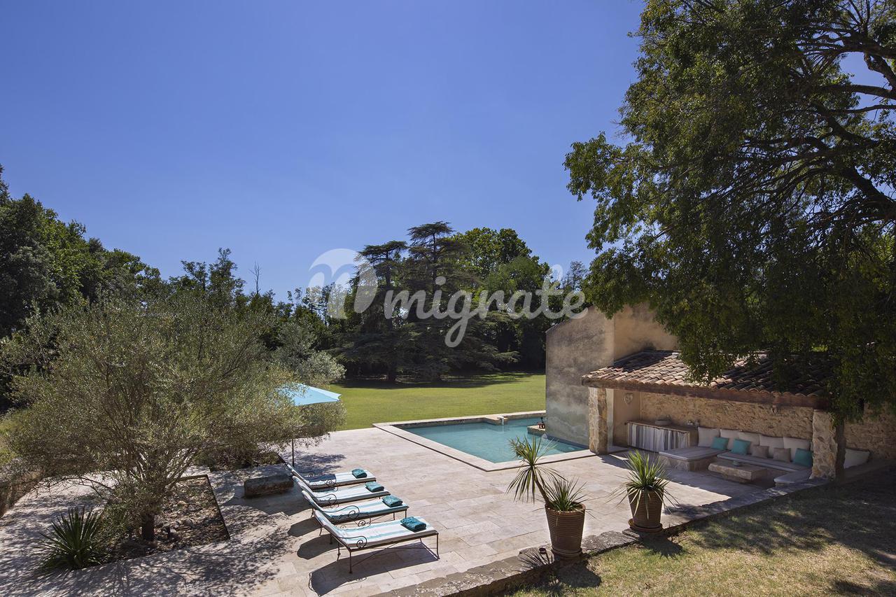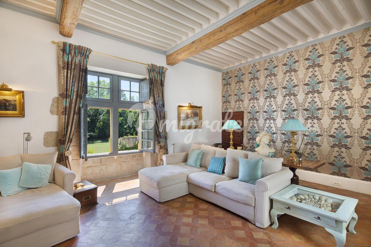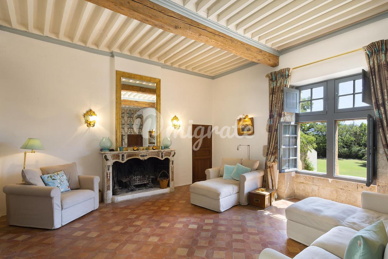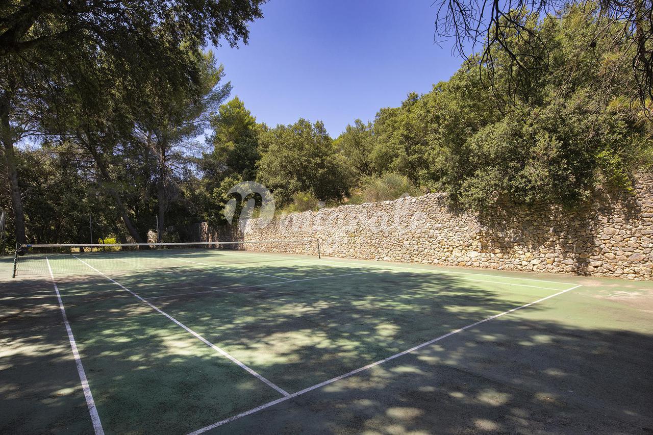 Недвижимость имеет общую жилую площадь около 1000 кв.м., состоящую из главного дома, трех отдельных коттеджей на четыре, шесть и десять человек и дополнительной квартиры-студии. Первый этаж основного дома состоит из гостиной, столовой, кухни с кладовой, выходящей на красивую полукрытую террасу, подсобного помещения, двух кабинетов и спальни с отдельным входом. Наверху есть спальня, ТВ-зал и три спальни с общей ванной комнатой. Для завершения собственности есть два винных погреба и оригинальная небольшая часовня. Эта престижная резиденция построена на 4,1 га земли с теннисным кортом и двумя бассейнами, один для главного дома и один для дач.