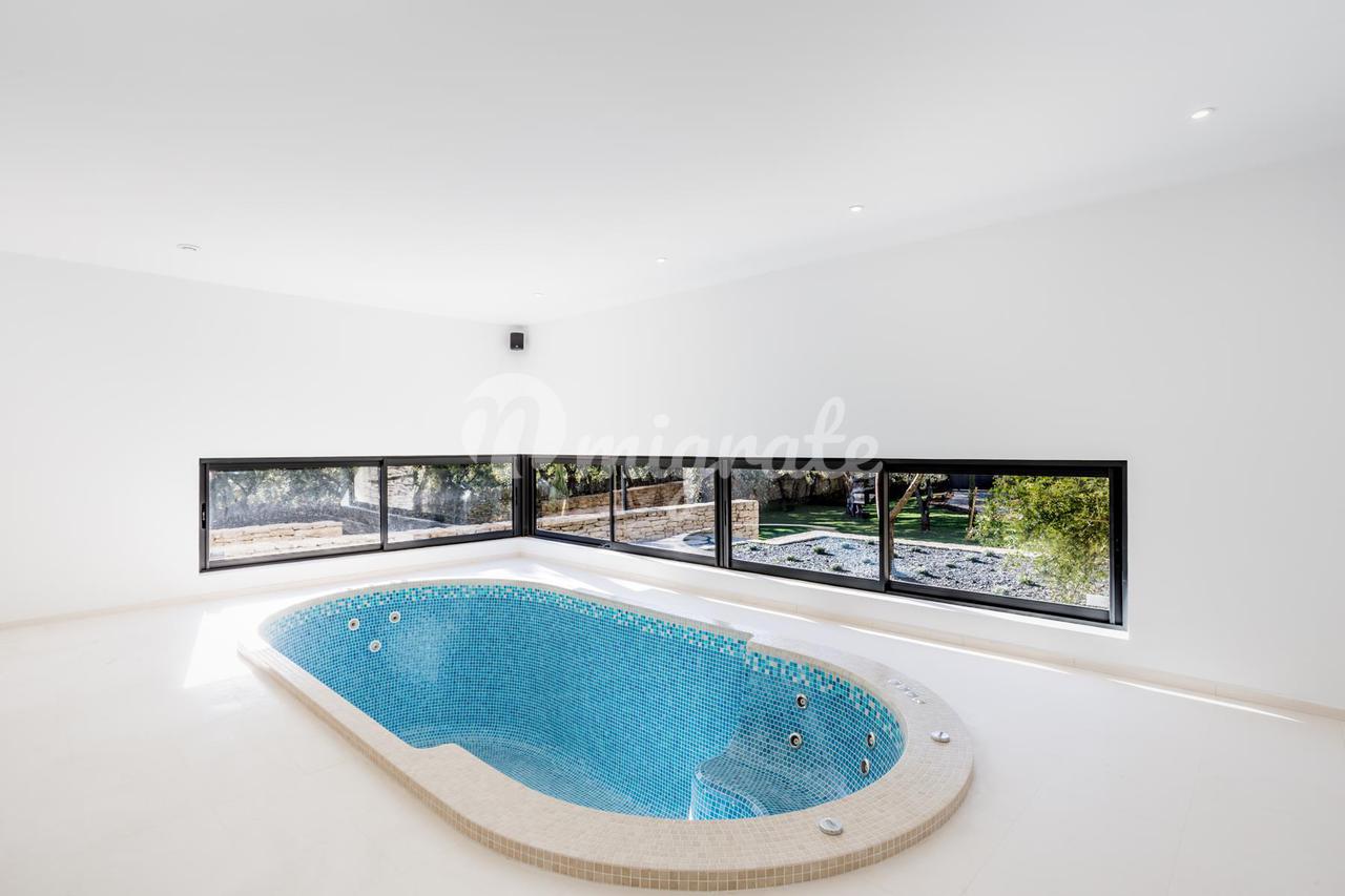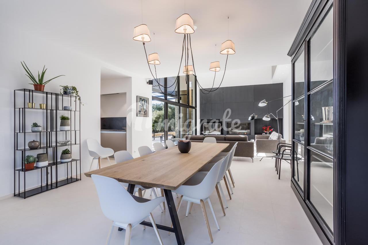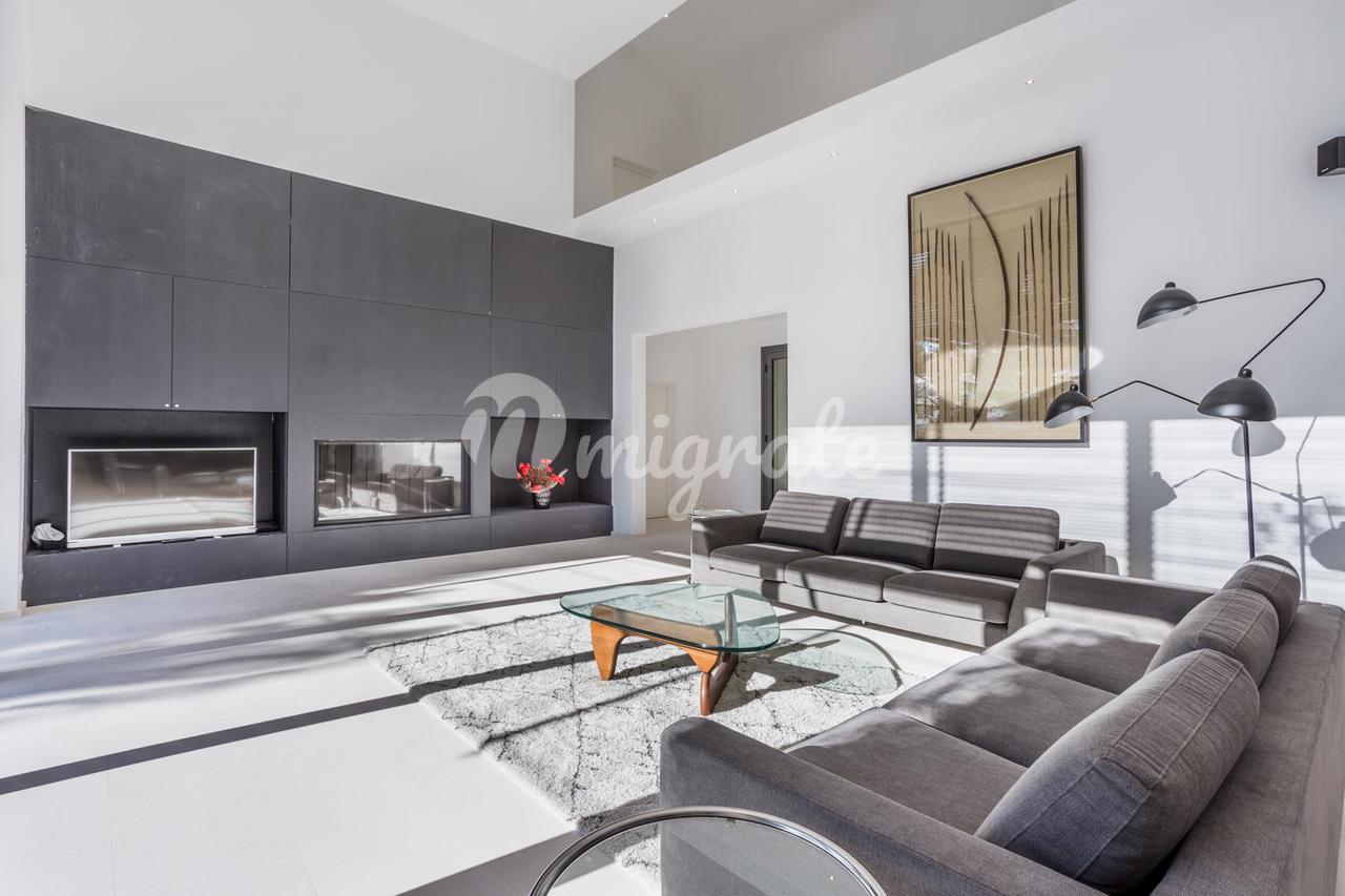 Эта вилла в современном стиле расположена на участке площадью около 0,35 га и имеет жилую площадь 410 кв.м. Главный дом включает в себя большую гостиную/столовую площадью 70 кв. м, освещенную большими окнами, выходящими в сад, современную кухню, 4 спальни с ванными комнатами и большую террасу. На цокольном этаже есть домашний кинотеатр и бильярдная. Гостевой дом состоит из гостиной с кухней, спальни в мезонине и ванной комнаты. Открытый и дополнительный крытый бассейн завершают эту собственность.