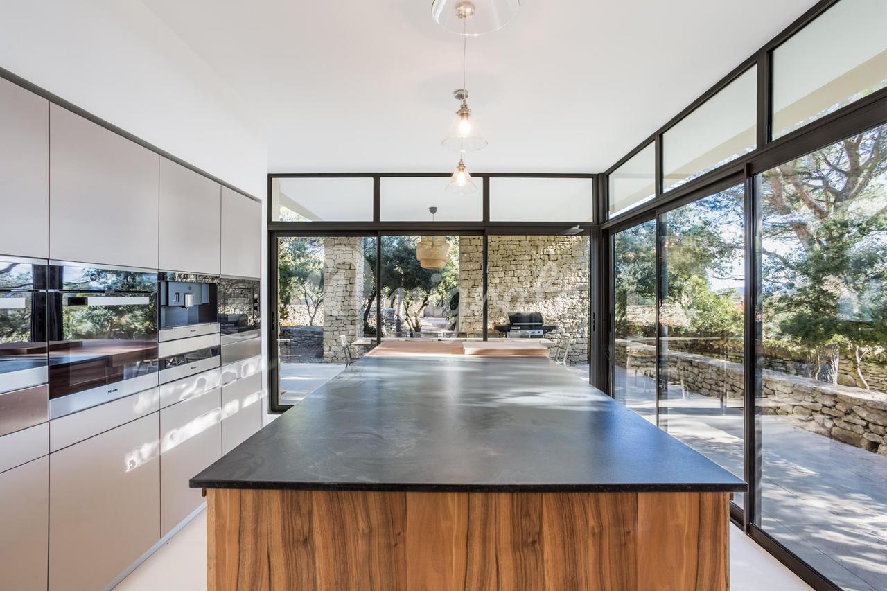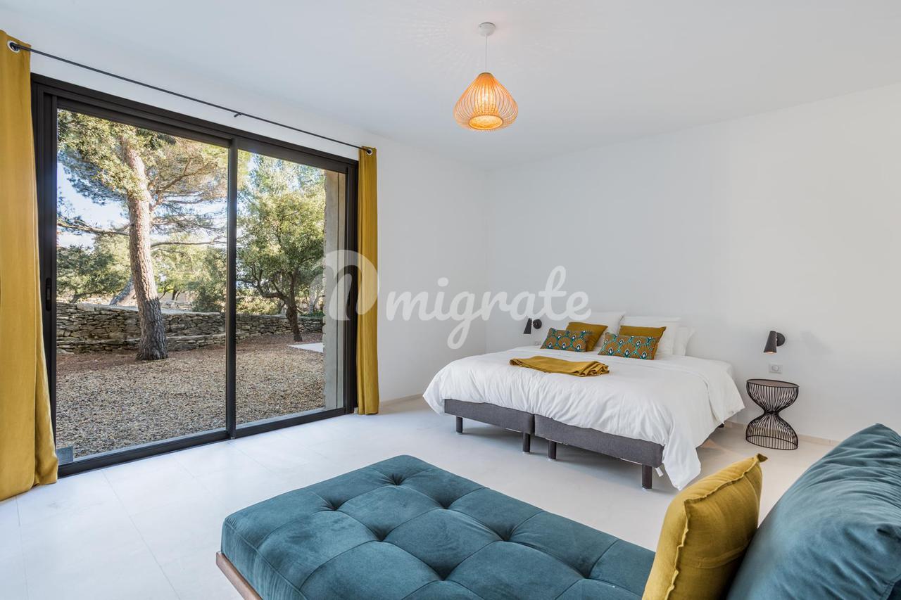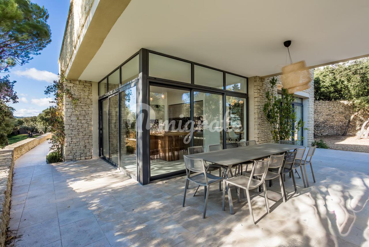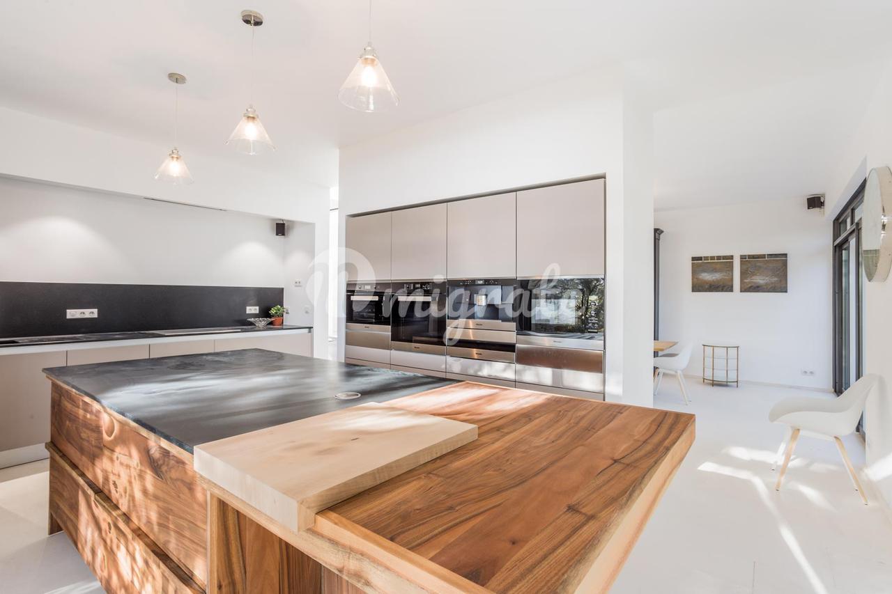 Эта вилла в современном стиле расположена на участке площадью около 0,35 га и имеет жилую площадь 410 кв.м. Главный дом включает в себя большую гостиную/столовую площадью 70 кв. м, освещенную большими окнами, выходящими в сад, современную кухню, 4 спальни с ванными комнатами и большую террасу. На цокольном этаже есть домашний кинотеатр и бильярдная. Гостевой дом состоит из гостиной с кухней, спальни в мезонине и ванной комнаты. Открытый и дополнительный крытый бассейн завершают эту собственность.