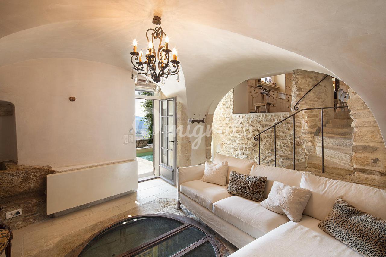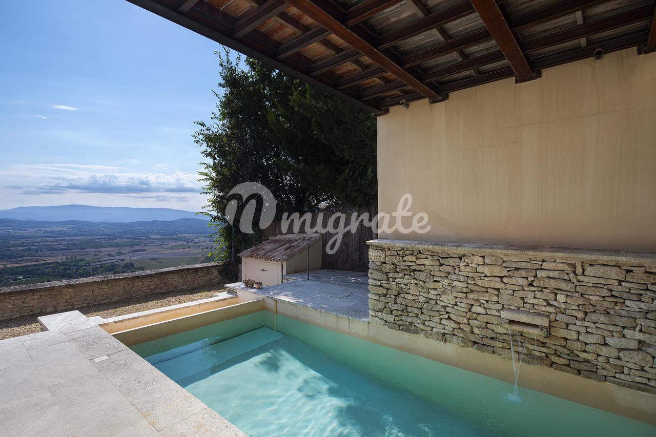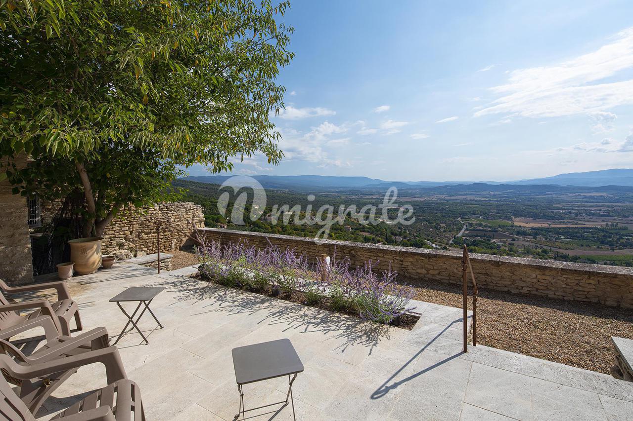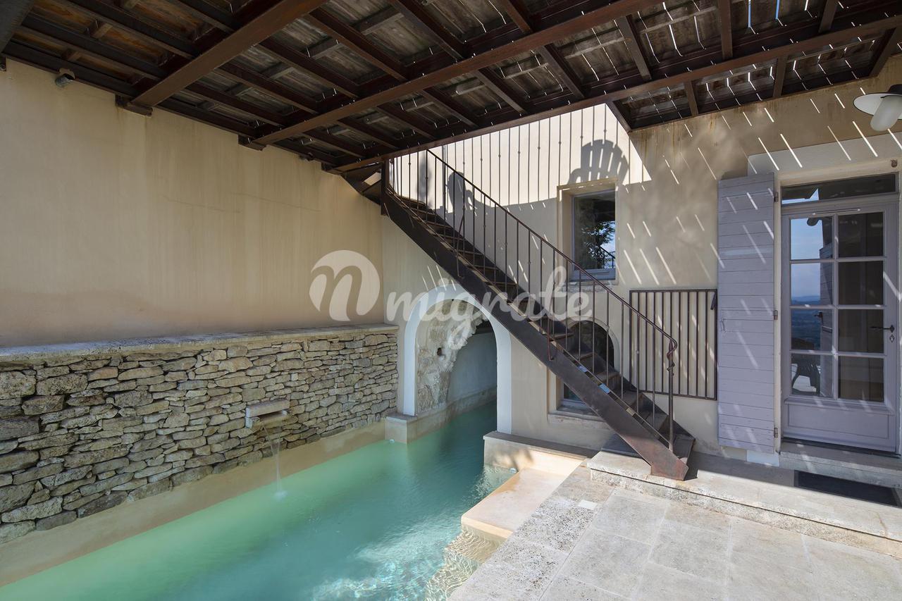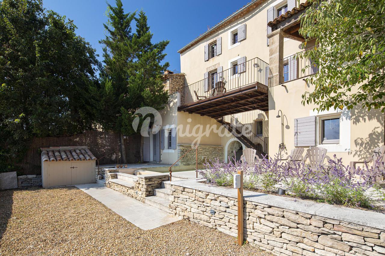 Дом построен на возвышенности, откуда открывается панорамный вид на долину Люберон. Дом имеет частично сводчатый бассейн с подогревом размером 13 х 2,5 м, сад и несколько террас. Дом имеет в общей сложности 300 кв м жилой площади на трех этажах. На уровне сада есть сводчатая гостиная, спальня и подсобное помещение. Между уровнем сада и цокольным этажом находится большая открытая кухня с обеденной зоной. Вход с улицы ведет в большую гостиную и столовую с выходом на террасу. На втором этаже пять спален, каждая с ванной комнатой.