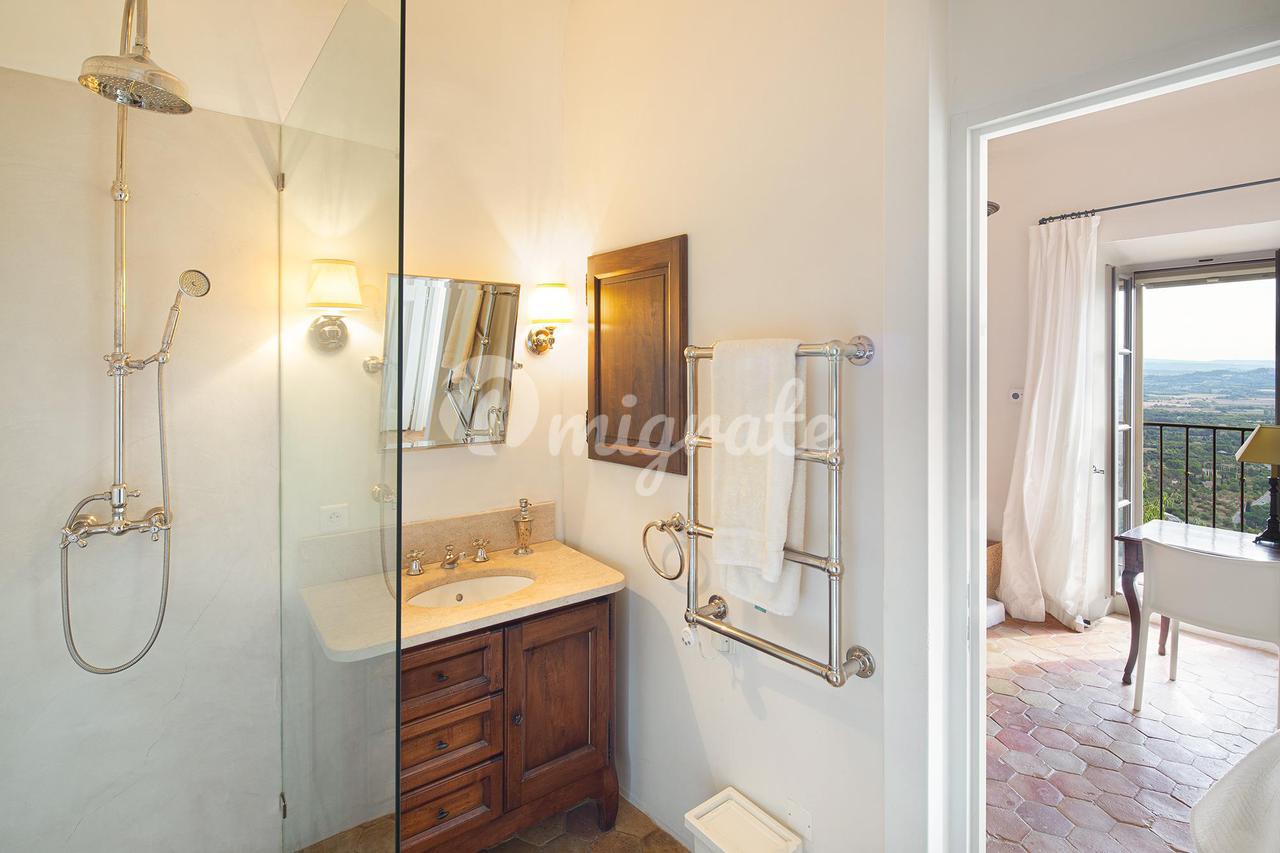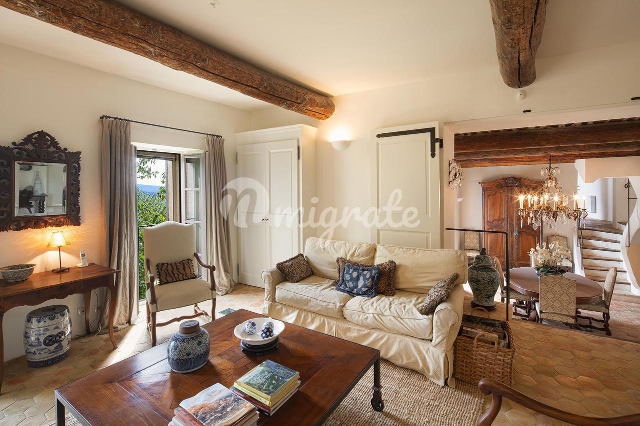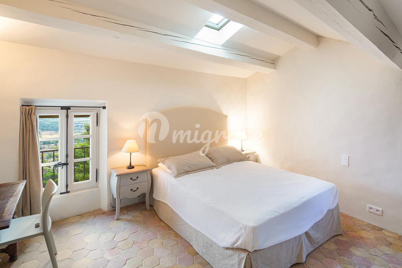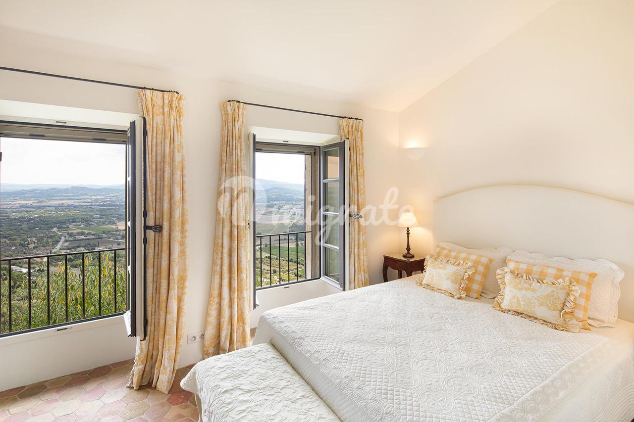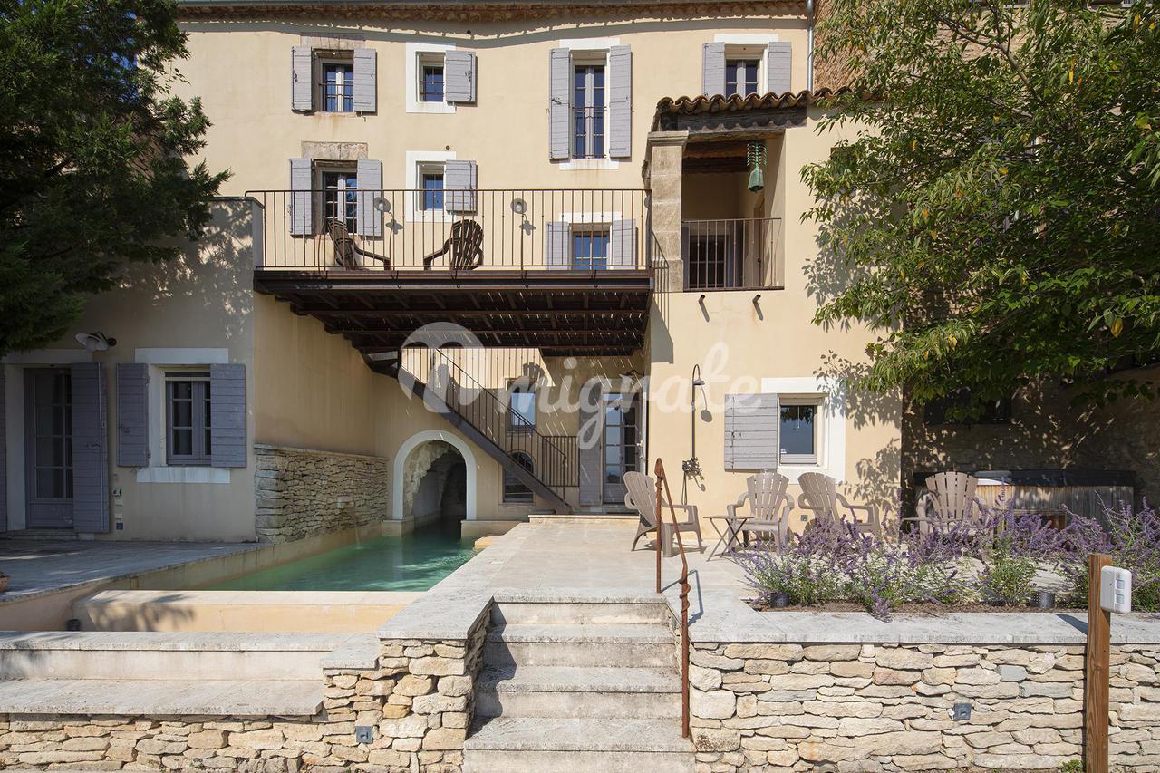 Дом построен на возвышенности, откуда открывается панорамный вид на долину Люберон. Дом имеет частично сводчатый бассейн с подогревом размером 13 х 2,5 м, сад и несколько террас. Дом имеет в общей сложности 300 кв м жилой площади на трех этажах. На уровне сада есть сводчатая гостиная, спальня и подсобное помещение. Между уровнем сада и цокольным этажом находится большая открытая кухня с обеденной зоной. Вход с улицы ведет в большую гостиную и столовую с выходом на террасу. На втором этаже пять спален, каждая с ванной комнатой.