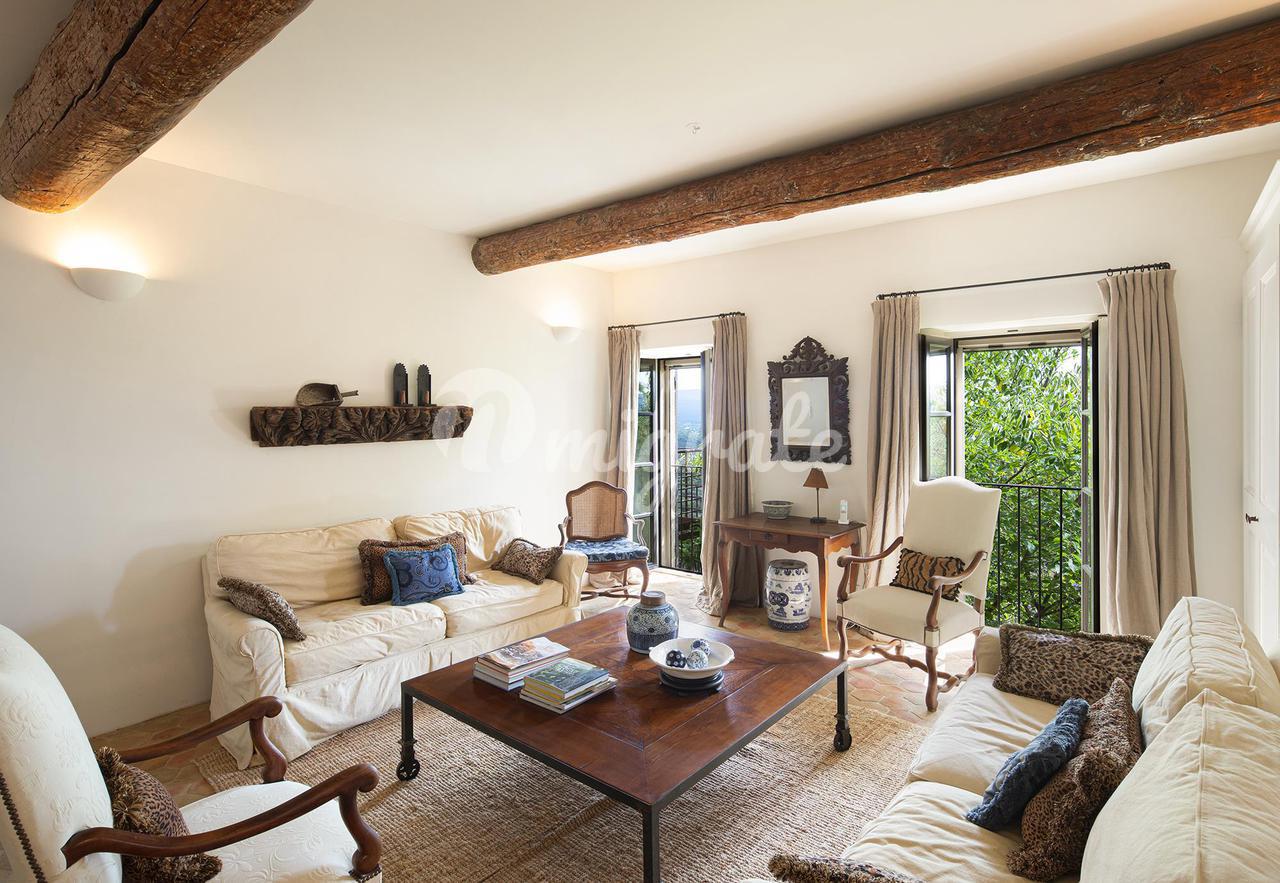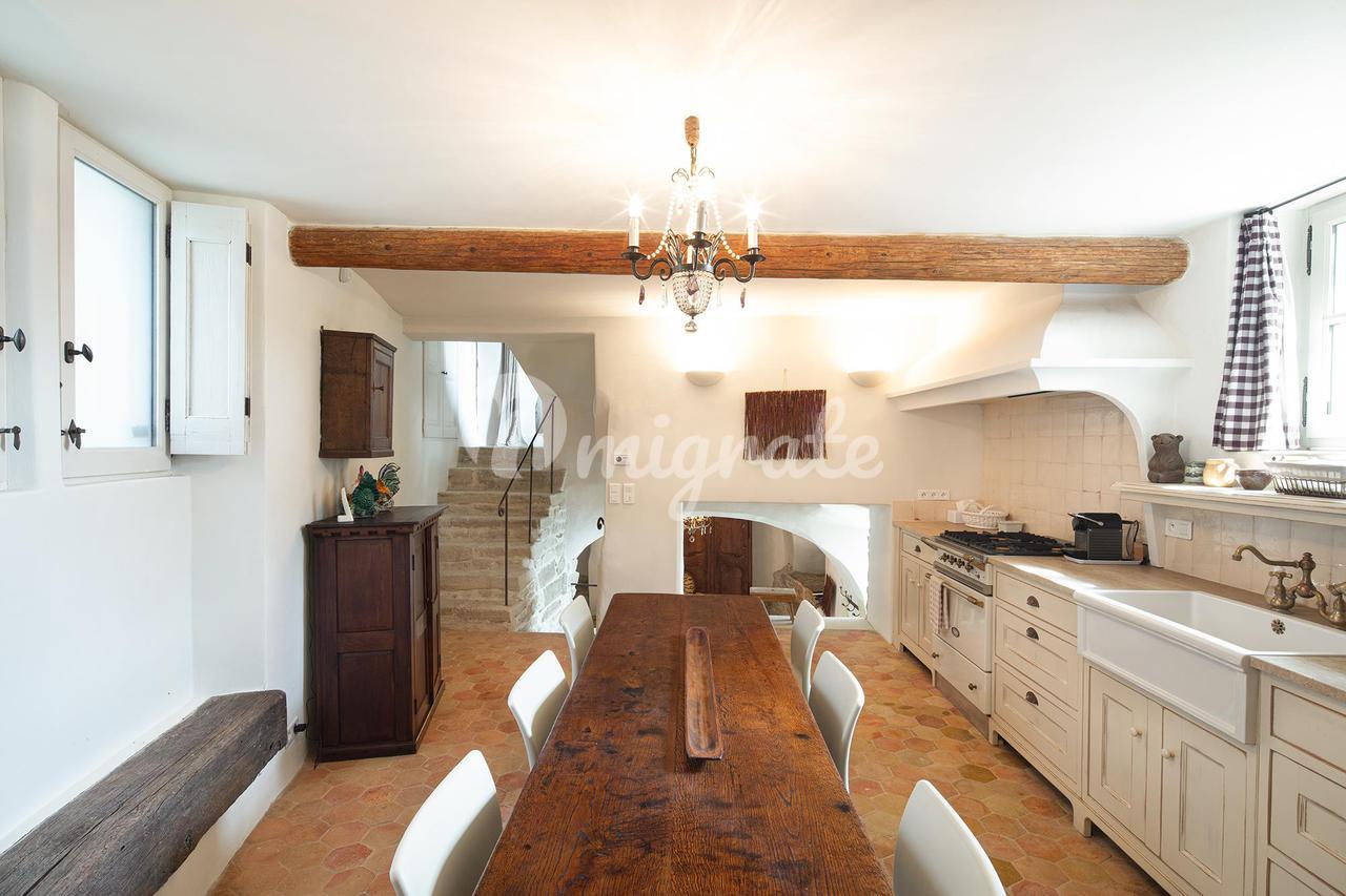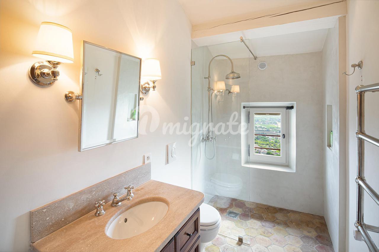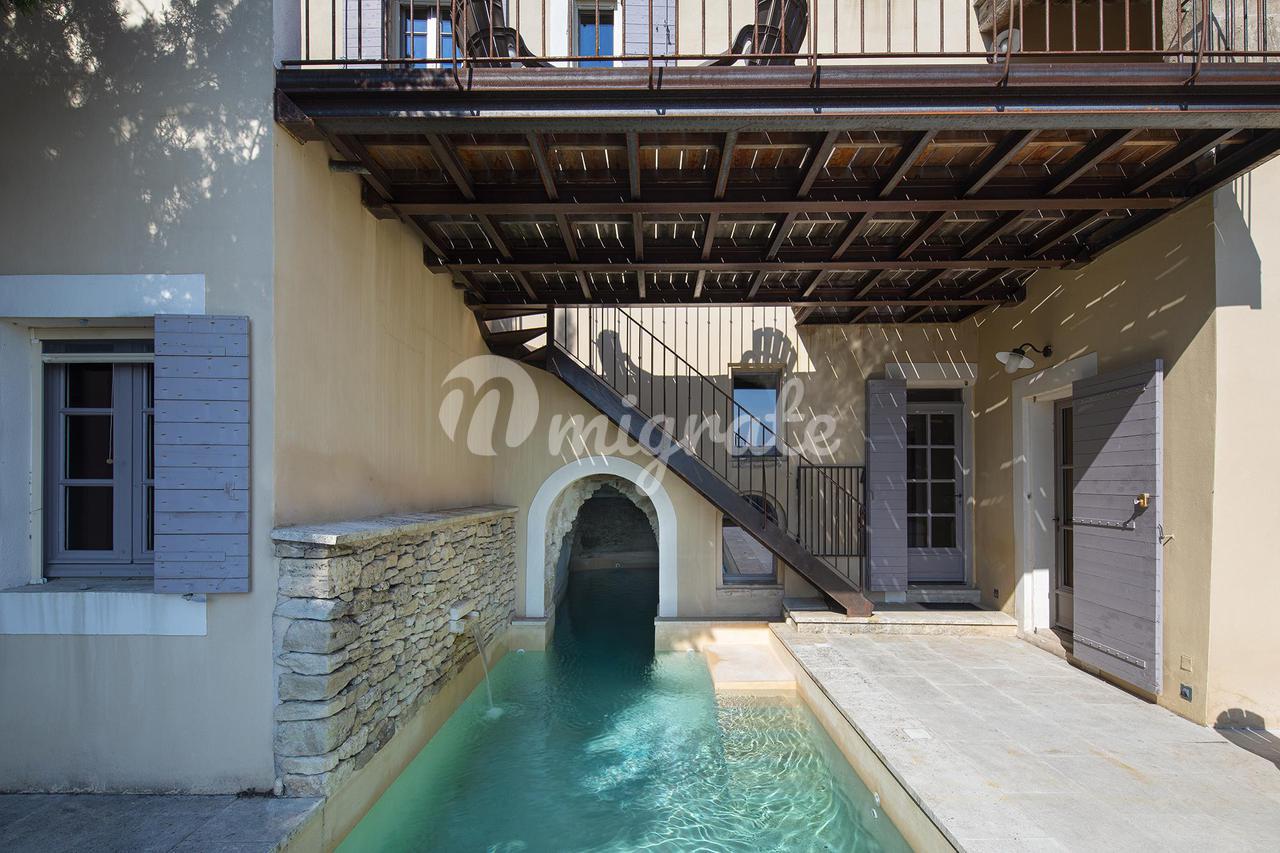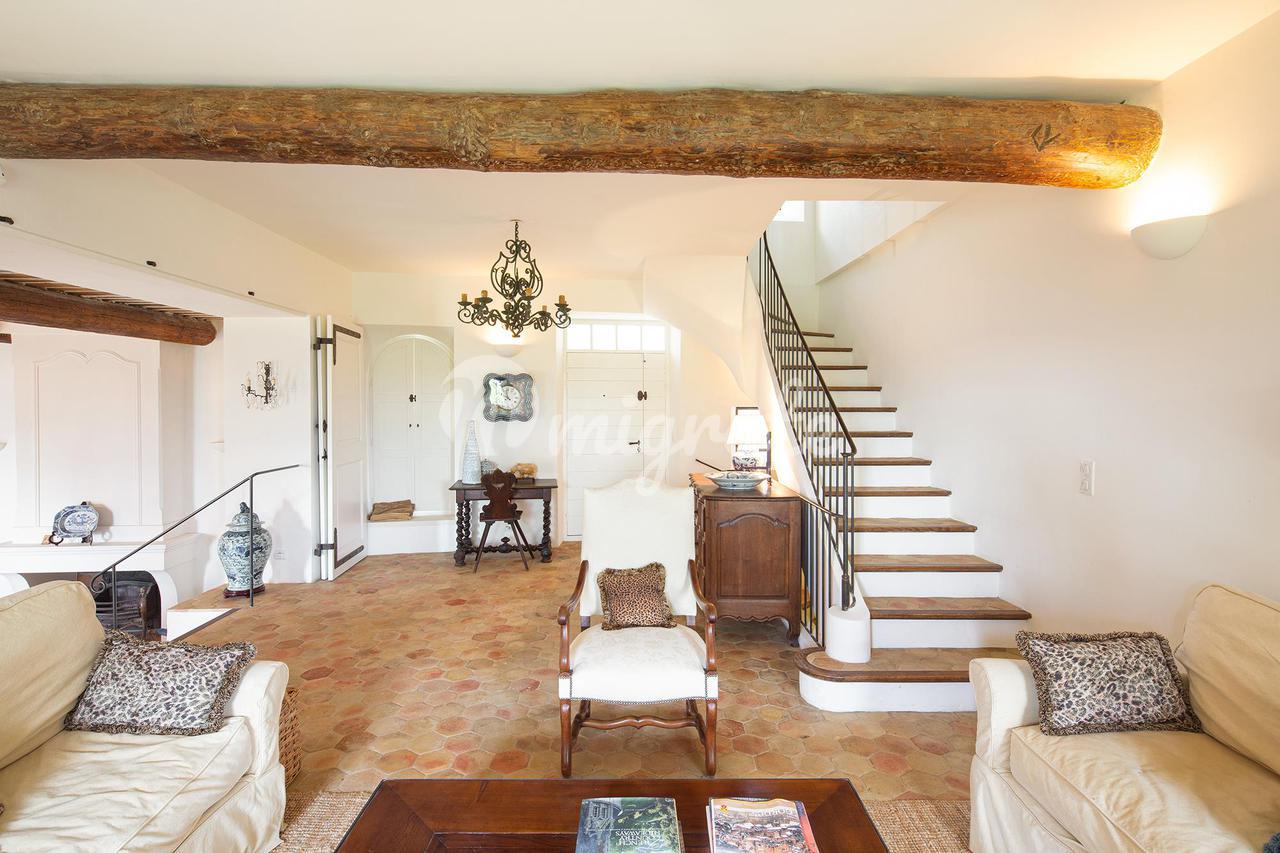 Дом построен на возвышенности, откуда открывается панорамный вид на долину Люберон. Дом имеет частично сводчатый бассейн с подогревом размером 13 х 2,5 м, сад и несколько террас. Дом имеет в общей сложности 300 кв м жилой площади на трех этажах. На уровне сада есть сводчатая гостиная, спальня и подсобное помещение. Между уровнем сада и цокольным этажом находится большая открытая кухня с обеденной зоной. Вход с улицы ведет в большую гостиную и столовую с выходом на террасу. На втором этаже пять спален, каждая с ванной комнатой.