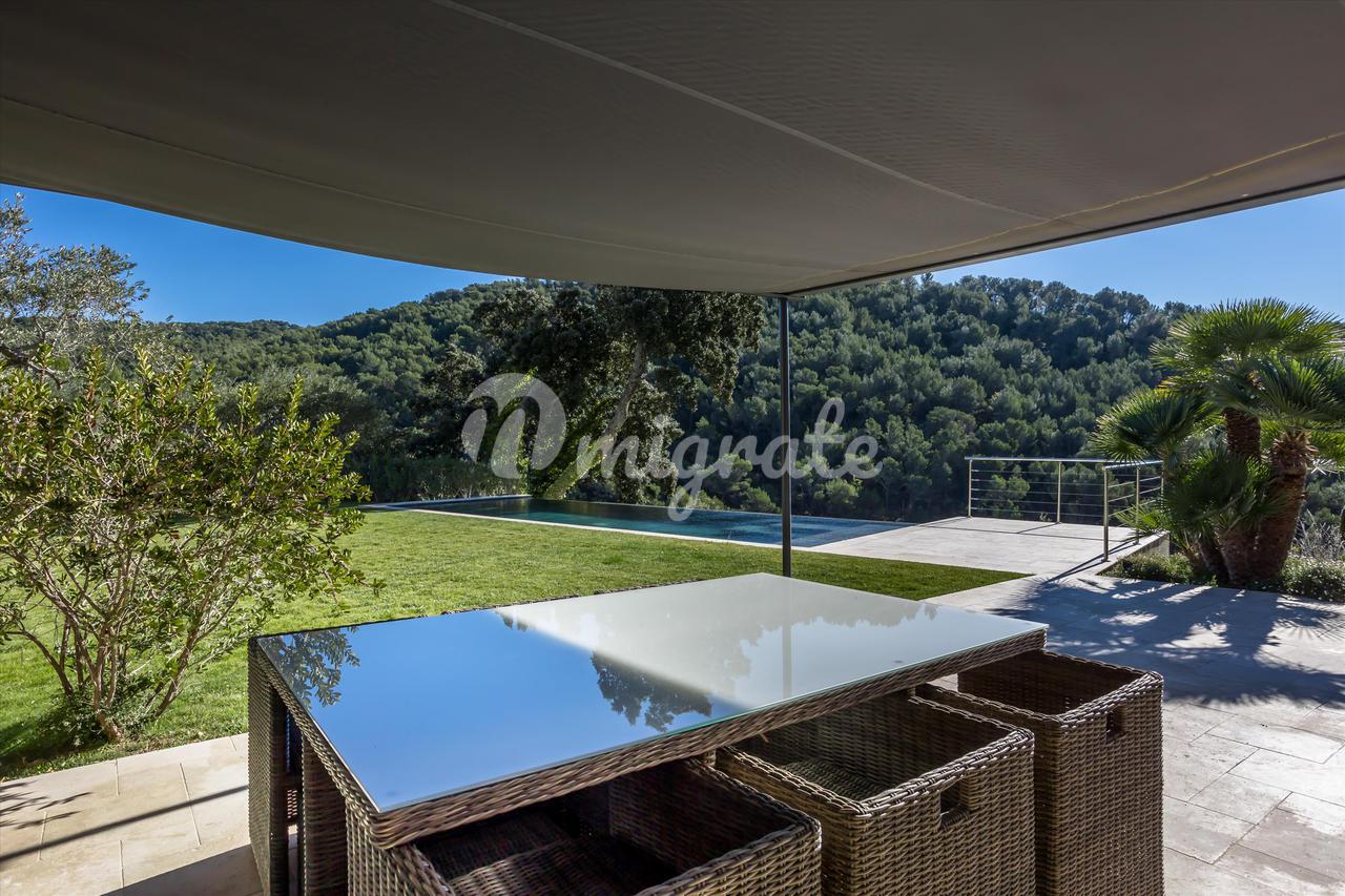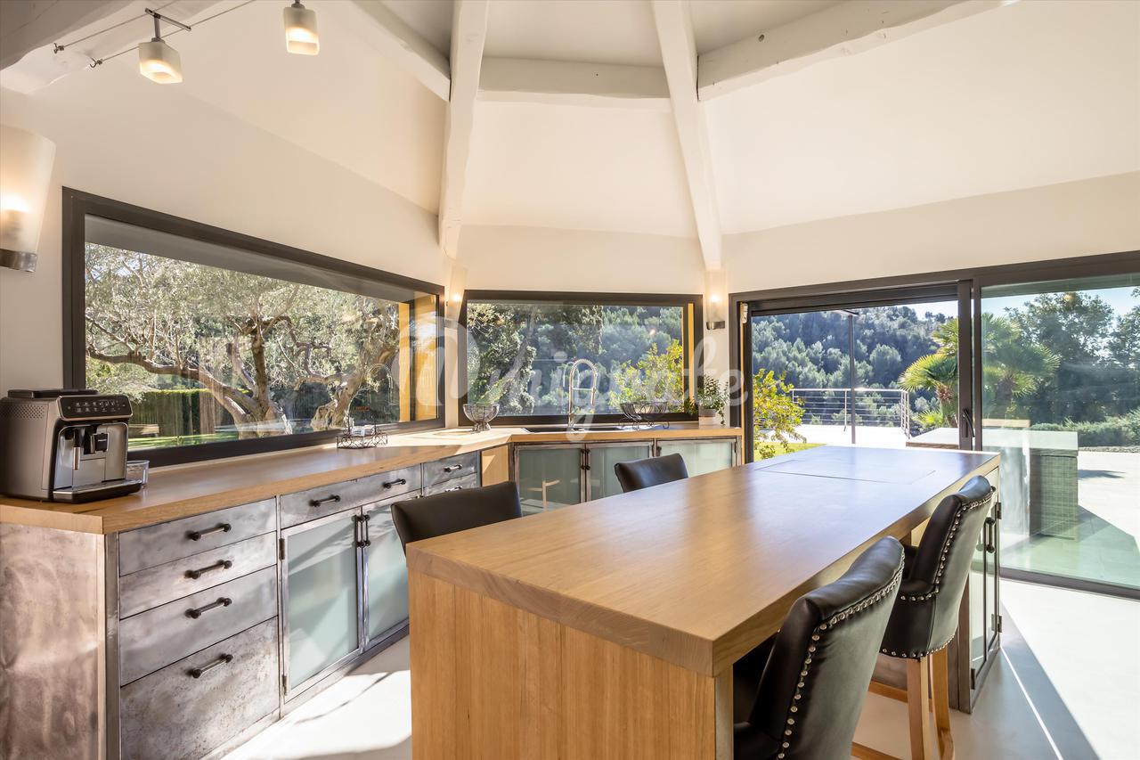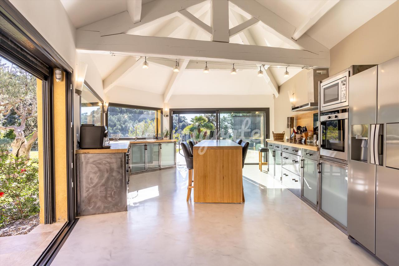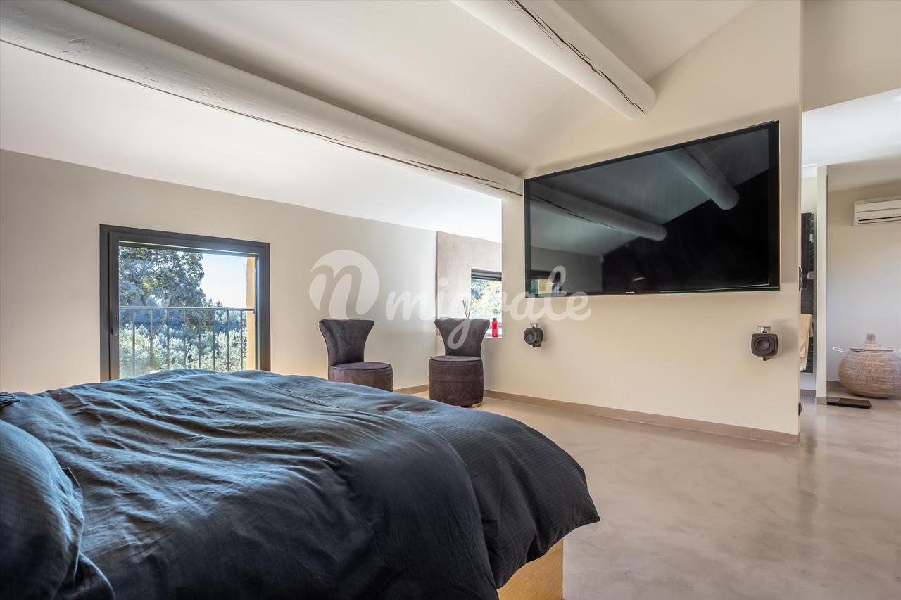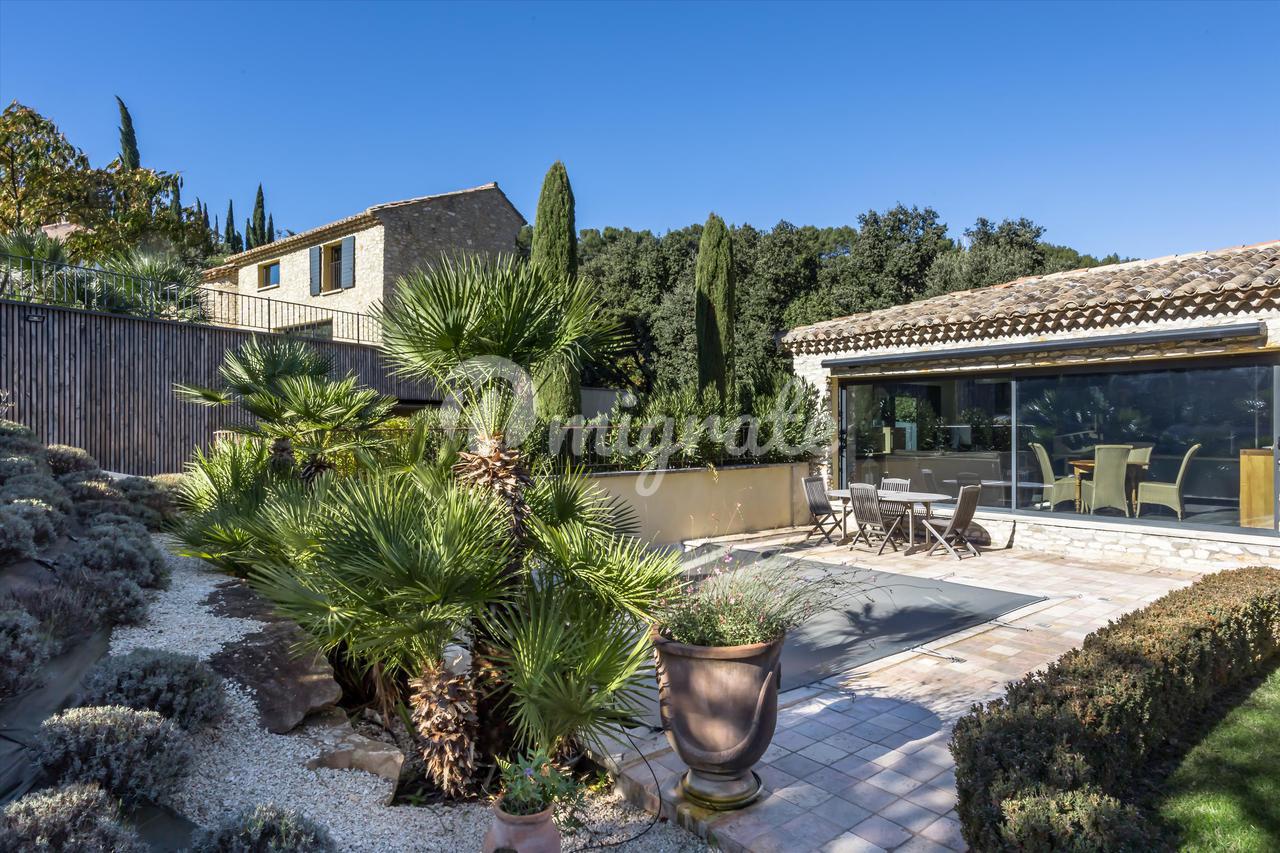 Этот полностью отремонтированный каменный дом расположен на участке площадью около 0,64 га и имеет жилую площадь 275 кв.м. Главное здание включает в себя на первом этаже помещение для хранения велосипедов и тренажерный зал с сауной и спа. Уровень сада включает в себя гостиную с камином, столовую с еще одним камином, оборудованную кухню и прачечную. Первый этаж состоит из ванной комнаты, 3 спален, включая главную спальню с ванной комнатой, и большой кладовой, куда ведет другая лестница. Кроме того, в собственности есть гостевой дом площадью около 35 кв. м, включающий гостиную, кухню и ванную комнату, 2 бассейна и 2 гаража.