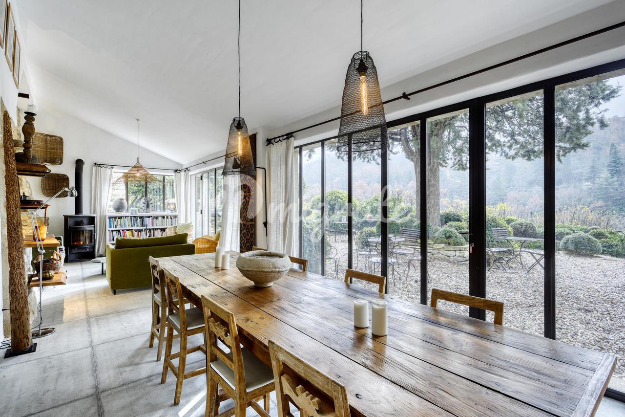 Дом состоит из кухни с большой столовой, дополненной чайной комнатой. Также на первом этаже находится ТВ-зал с видом на Люберон, за которым следует гостевая спальня с отдельным туалетом и ванной комнатой. На первом этаже вы найдете вторую спальню с ванной комнатой, затем общую с 4 кроватями и, наконец, последнюю спальню с ванной комнатой, также с отдельным входом. Многочисленные встроенные шкафы дополняют эту уникальную собственность, а также три подвала и мастерскую, которая может быть преобразована в комнату для гостей с душевой. Снаружи есть бассейн, идеально подходящий для жарких дней, и бассейн с подогревом размером около 11 х 3 метра.