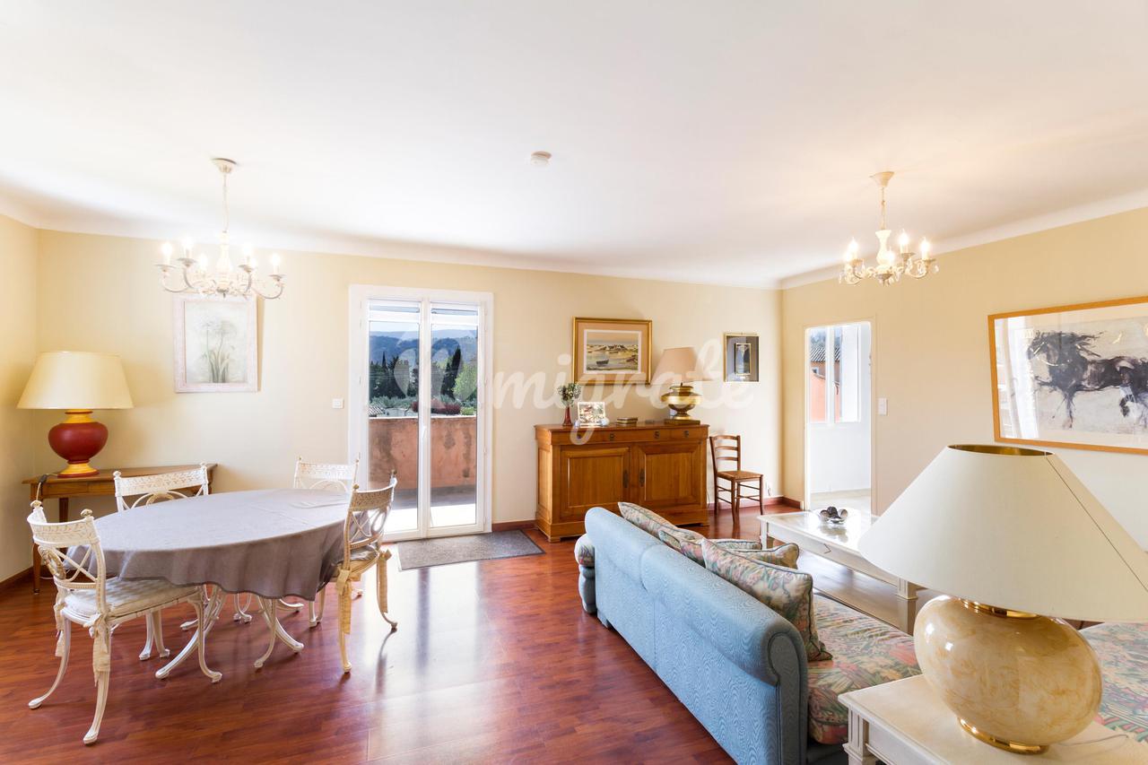 Имущество с полезной площадью около 450 кв. м состоит из основного жилого помещения с большой гостиной с каминным уголком на первом этаже, кухни, кладовых, двух спален, каждая с ванной комнатой, и кабинета/гардеробной. номер. На втором этаже расположены еще три спальни, одна с душем и собственной террасой. Наконец, автономная квартира с кухней, гостиной, двумя спальнями, ванной комнатой и террасой, а также тремя гаражами. Спланированные террасы позволяют в полной мере насладиться обстановкой и видом. Идеальный pi à terre в Провансе, который также подходит для гостиничного бизнеса.