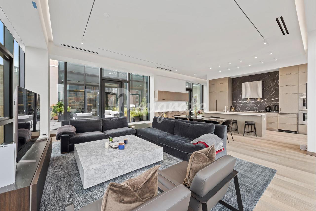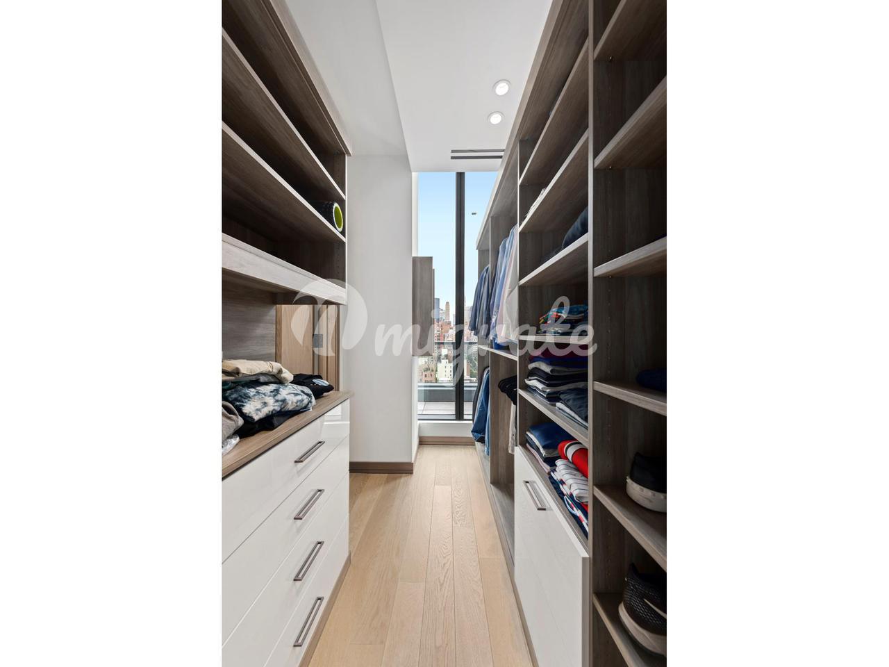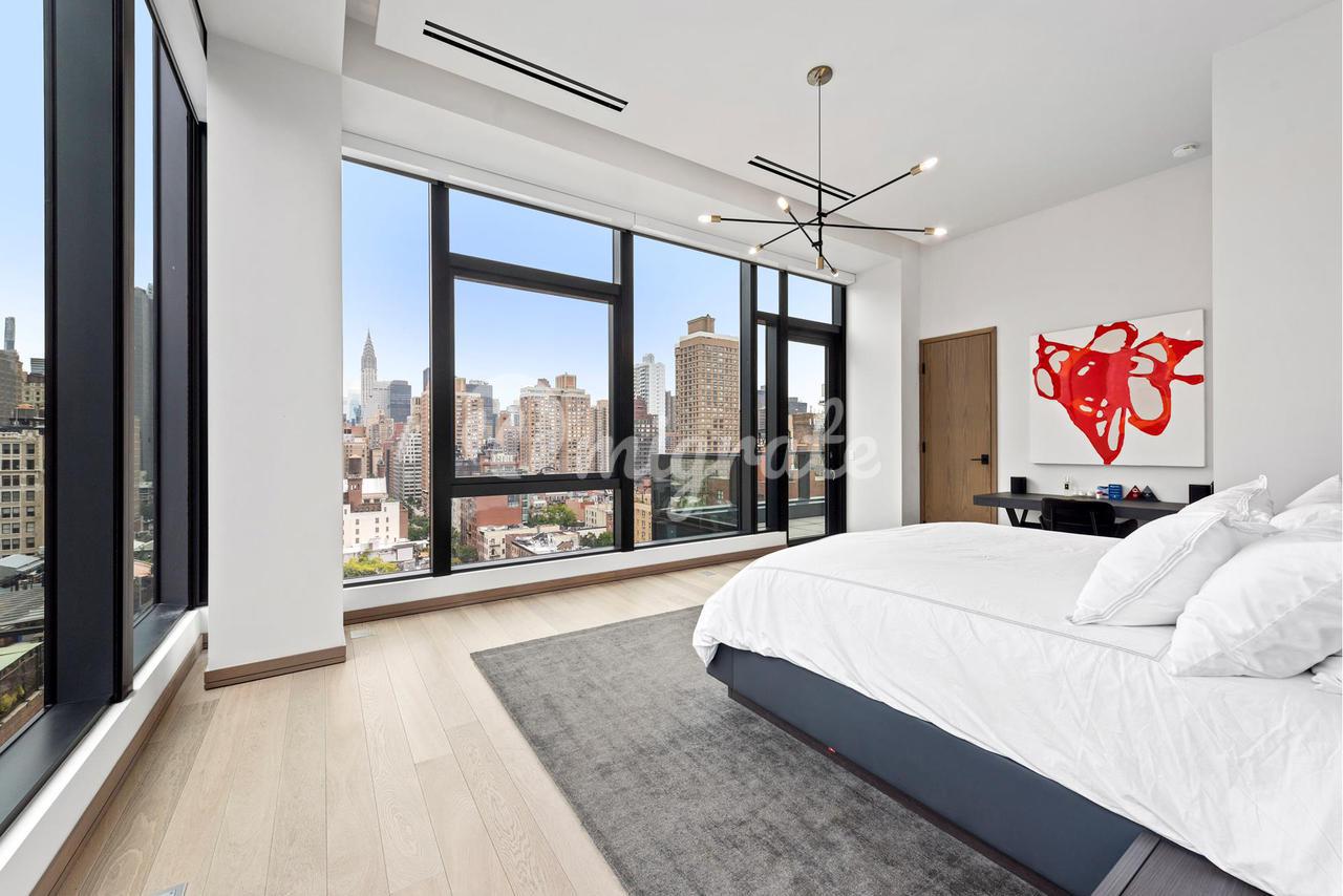 Эта резиденция с четырьмя спальнями включает в себя угловую основную спальню с большим встроенным шкафом, отдельную гардеробную с окном, террасу с потрясающим видом на небоскреб Эмпайр-стейт-билдинг и Крайслер-билдинг, а также главную ванную комнату с пятью светильниками и полом из французского известняка. и настенная плитка, фартук из травертиновой плиты, теплые полы с подогревом и глубокая ванна WetStyle Cube Collection. Дополнительные детали ванной комнаты включают в себя столярные изделия из дымчатого дуба, аптечку со светодиодной подсветкой и антизапотевающим зеркалом, а также светильники Hansgrohe.
