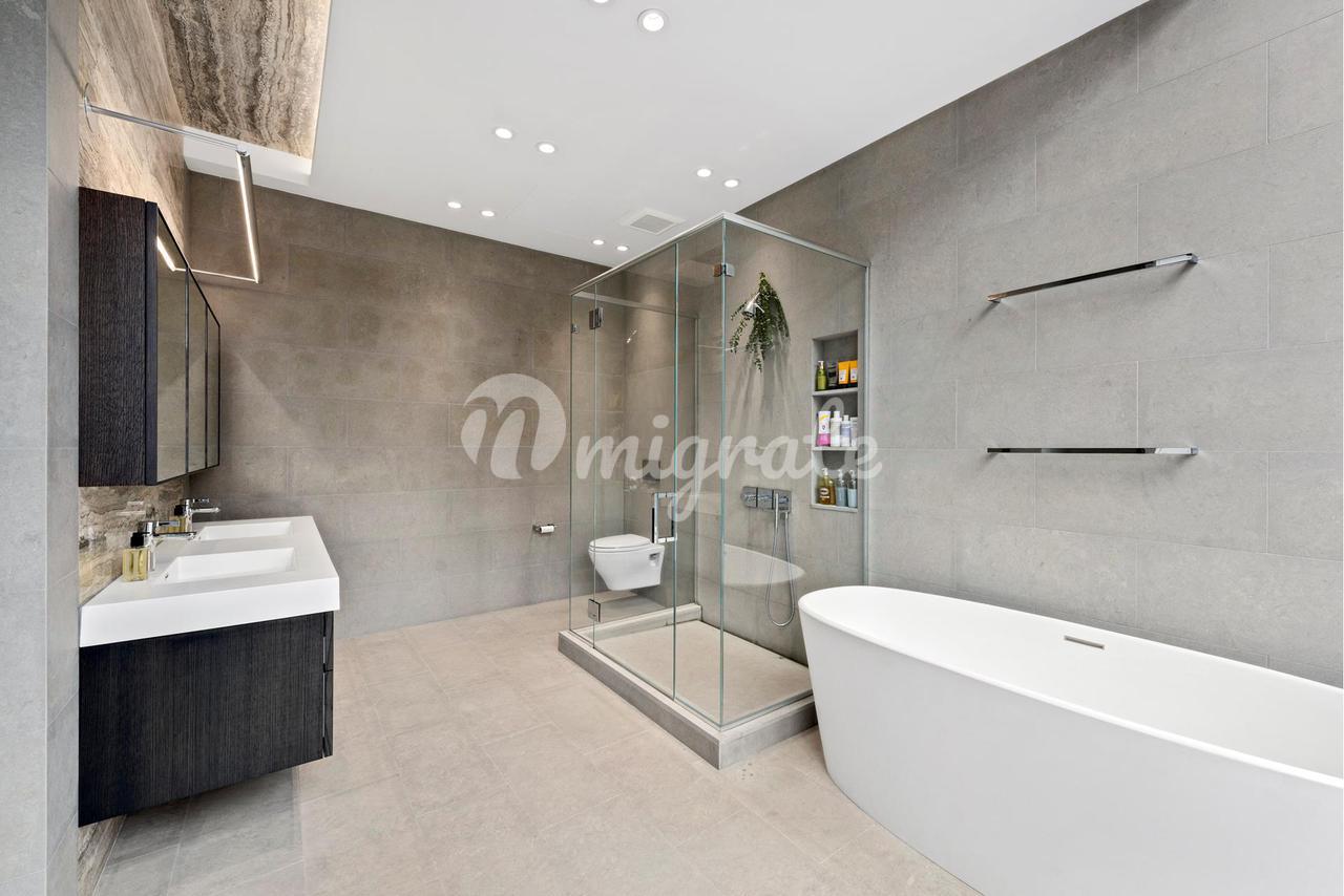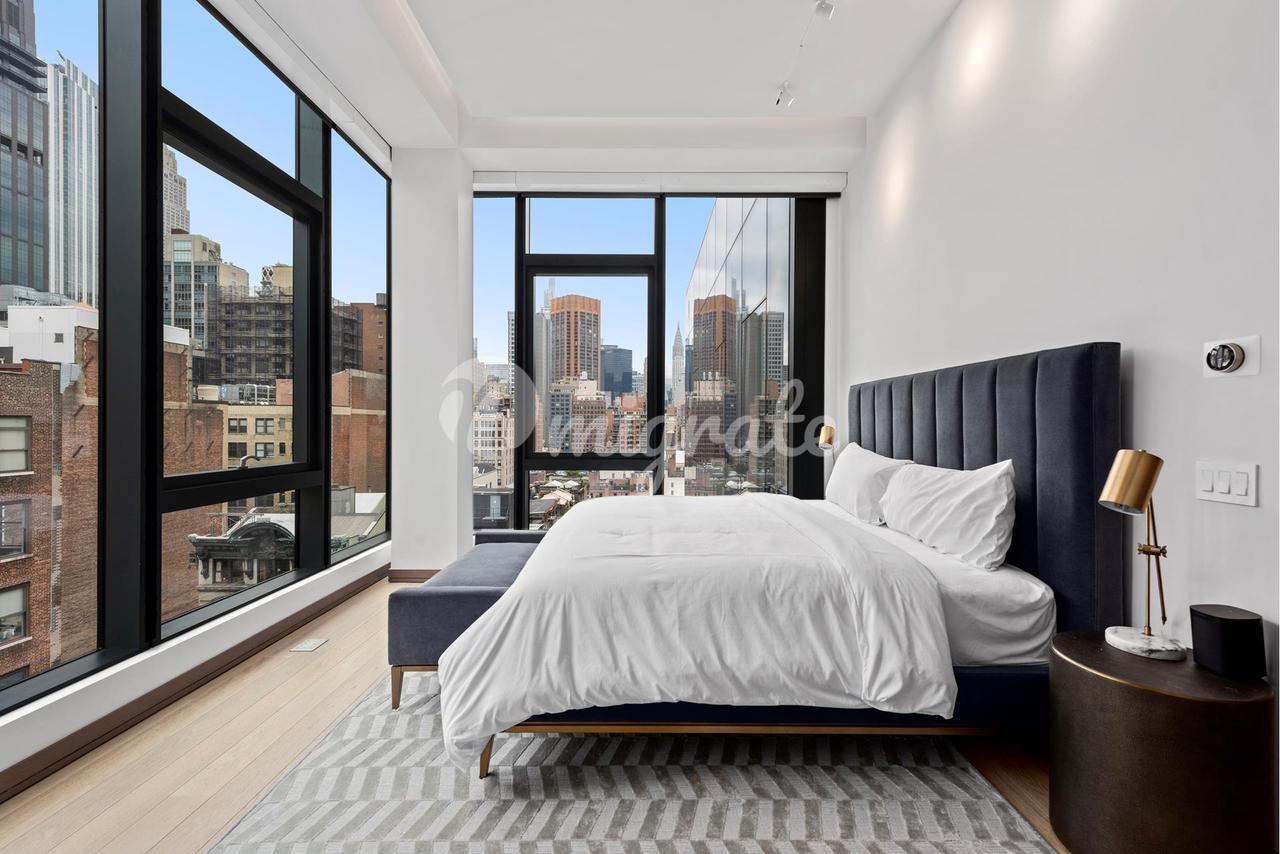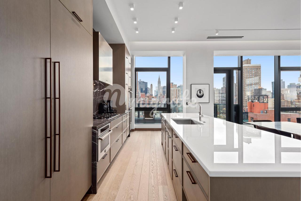 Эта резиденция с четырьмя спальнями включает в себя угловую основную спальню с большим встроенным шкафом, отдельную гардеробную с окном, террасу с потрясающим видом на небоскреб Эмпайр-стейт-билдинг и Крайслер-билдинг, а также главную ванную комнату с пятью светильниками и полом из французского известняка. и настенная плитка, фартук из травертиновой плиты, теплые полы с подогревом и глубокая ванна WetStyle Cube Collection. Дополнительные детали ванной комнаты включают в себя столярные изделия из дымчатого дуба, аптечку со светодиодной подсветкой и антизапотевающим зеркалом, а также светильники Hansgrohe.