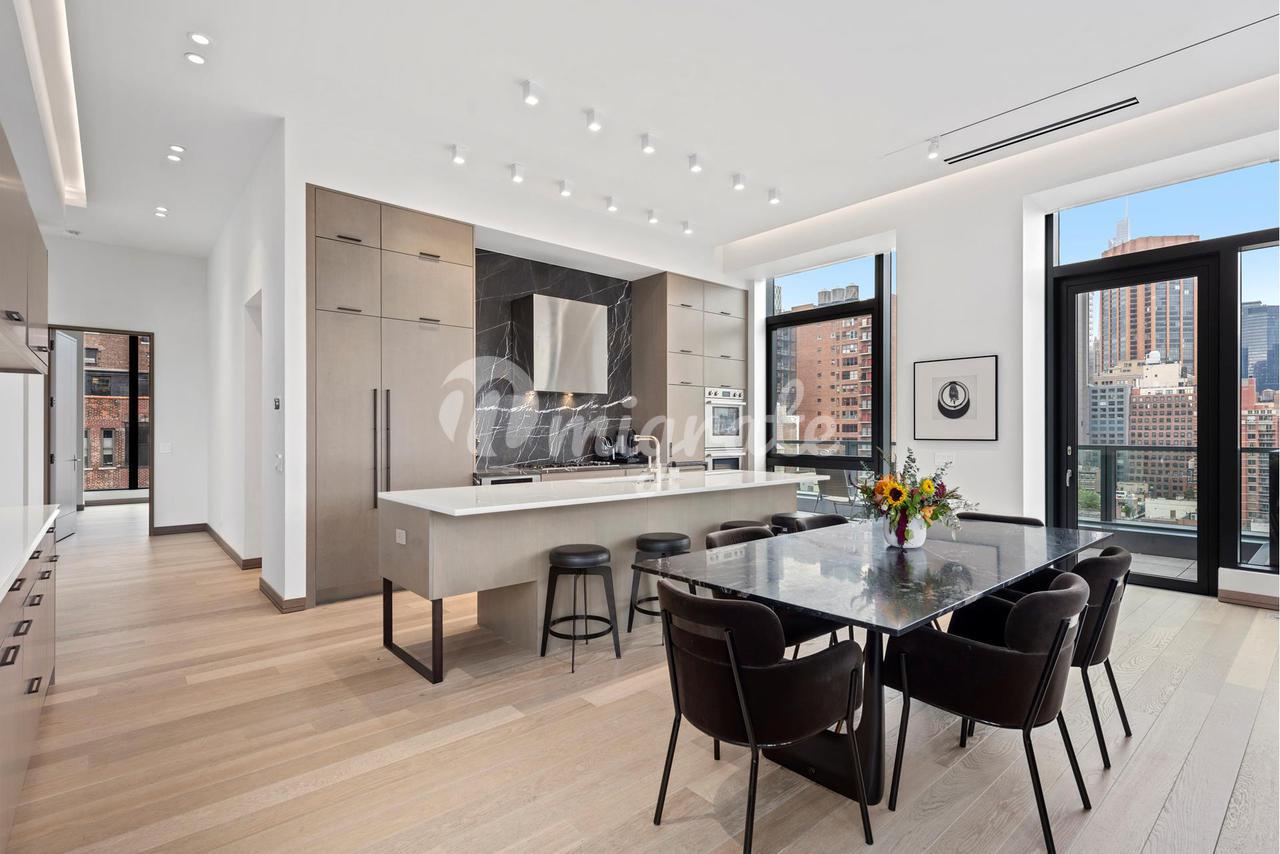 Пентхаус A на 88&90 Lex — это великолепная угловая резиденция с четырьмя спальнями и четырьмя с половиной ванными комнатами, которая переопределяет городскую жизнь внутри и снаружи. Эта резиденция, продуманно спроектированная архитектором Workshop/APD, предлагает обширную планировку, сосредоточенную вокруг потрясающего частного двора площадью 18 футов 18 футов со встроенным грилем и мини-кухней — уникальное предложение, которое идеально подходит для развлечений и повседневной жизни. Двор окружен большой угловой гостиной/столовой и открытой кухней с потолками высотой 11 футов 4 дюйма и потрясающим видом на Эмпайр-стейт-билдинг и Крайслер-билдинг.