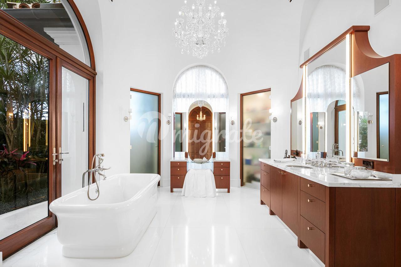 Baccara Estate — безупречный архитектурный шедевр, представляющий собой целостную художественную среду с мастерством в каждой детали. Это индивидуальное поместье предлагает дизайн мирового класса и образ жизни с большими удобствами, конфиденциальностью и безопасностью. Великолепие и комфорт роскошной жизни оживают в этом полностью меблированном шедевре на берегу озера в престижном районе Бока-Ратон. Этот двухэтажный драгоценный камень, расположенный на тупике внутри закрытых границ Лонг-Лейк-Эстейтс — пышного, усаженного деревьями поселения со 126 огромными домами — занимает почти 12 500 квадратных футов под землей и более 15 200 квадратных метров. стопы в целом. Разработанный Architectural Form and Light и Alexandra Karram Interiors, отель отличается высокими потолками и большими окнами, которые создают