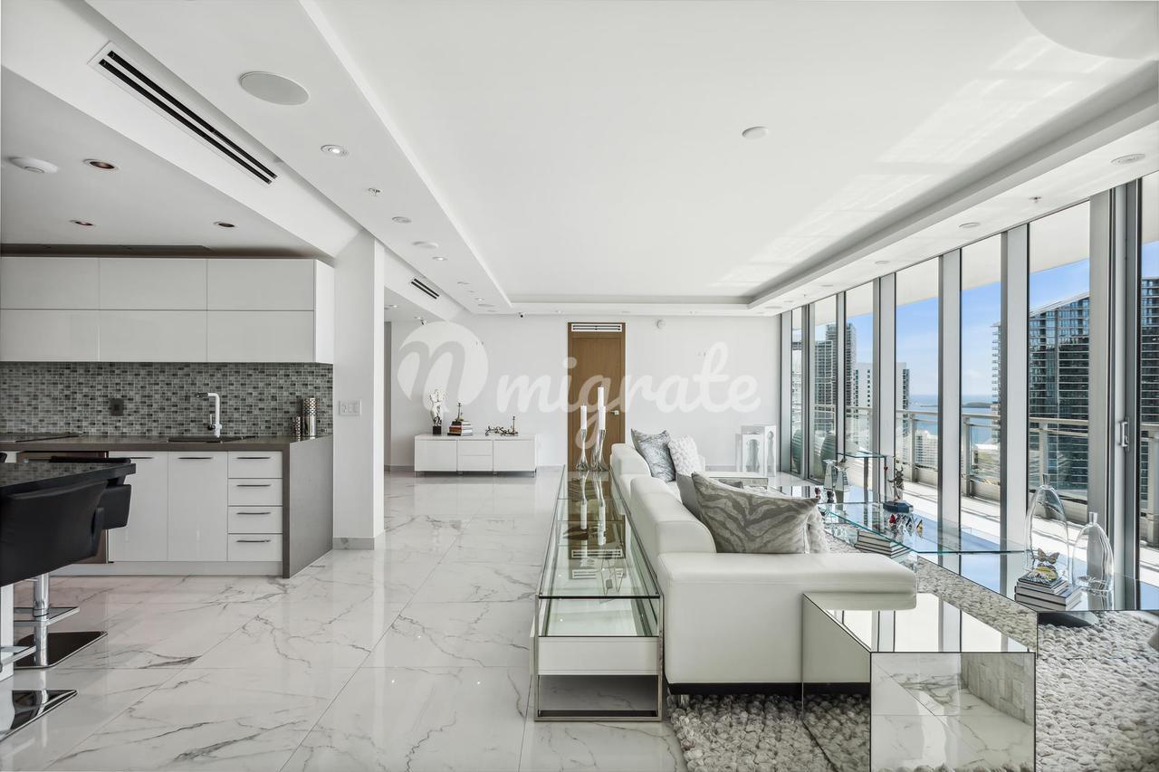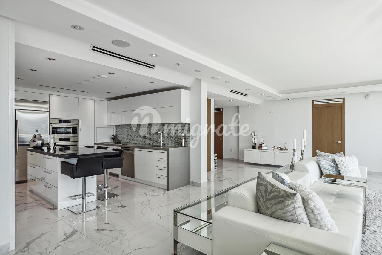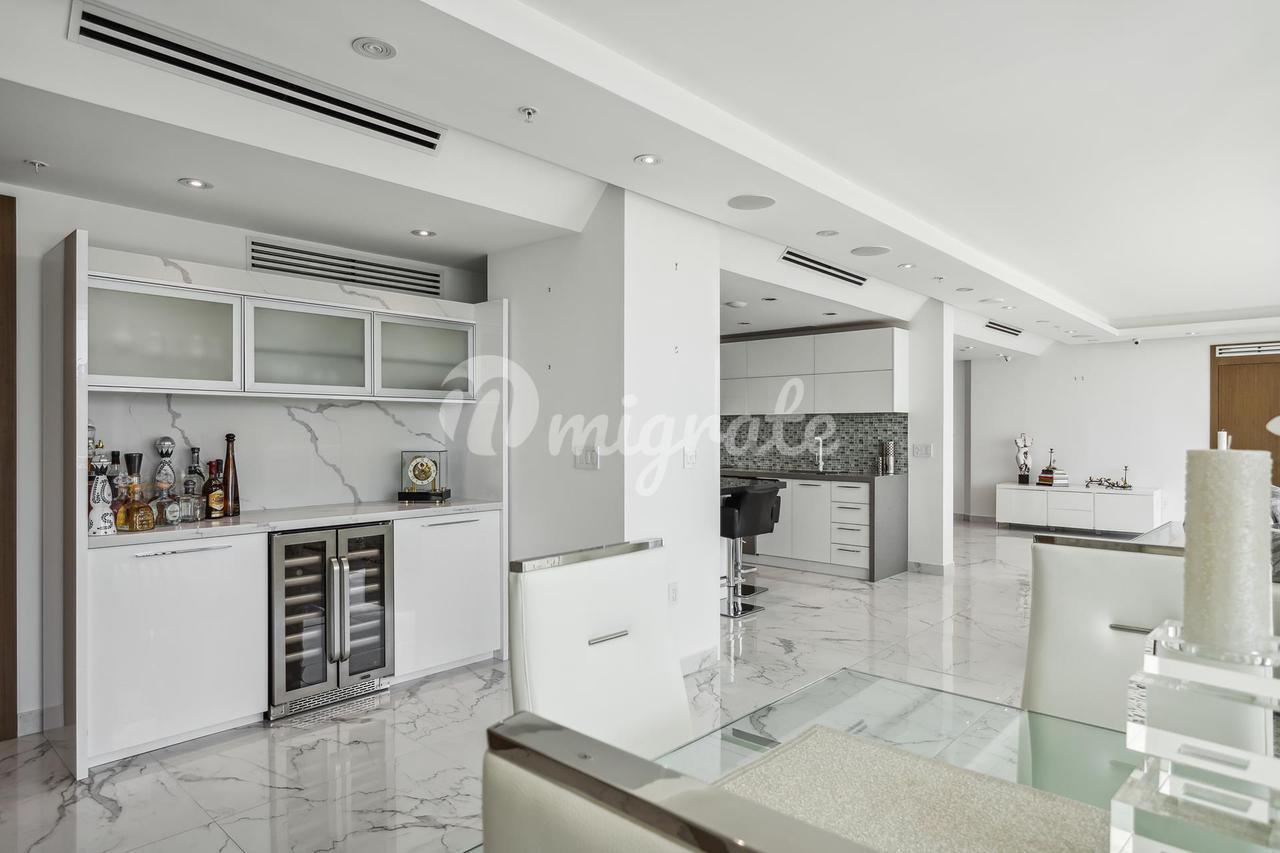 Потрясающий вид на город и реку, этот дом с тремя спальнями, тремя ванными комнатами и гостевой ванной комнатой был продуманно спроектирован таким образом, чтобы предложить много места и потрясающие виды. Эта уникальная резиденция площадью более 2356 квадратных футов представляет собой комбинацию двух квартир, которые были преобразованы в один просторный дом. Поэтажные планы были утверждены городом, все они разработаны в соответствии с кодексом. В просторной главной спальне есть большая гардеробная и собственная ванная комната с двойной раковиной и душем. Роскошная отделка, включая двери из итальянского дерева, прачечная с большим пространством. Барная зона, кухня с островом для приготовления пищи в центре, бытовая техника Bosch с настенным телевизором, гостиная и столовая с видом на городской пейзаж. Электрические жалюзи, аудиосистема объемного звучания, 2 выделенные парковки и кладовая.