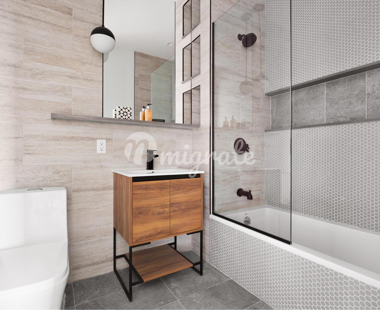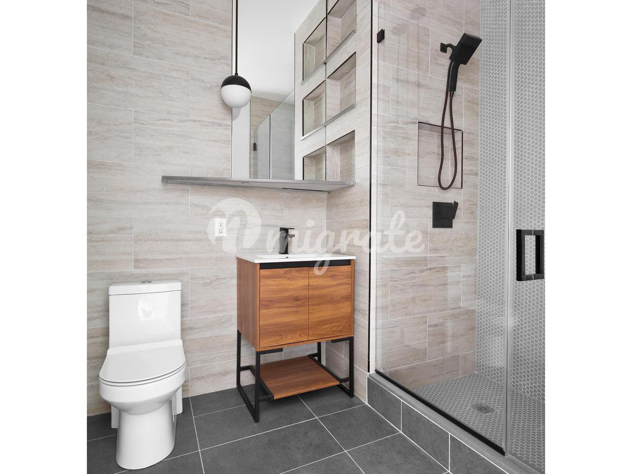 Большие ванные комнаты продуманы до мелочей для максимального расслабления. Настенная плитка из бежевого матового керамогранита, шестигранная фарфоровая мозаичная плитка для душа, умывальник Fine Fixture из орехового дерева с белой керамической столешницей и белой раковиной, глубокие ванны для купания, черная матовая сантехника Delta и теплые полы с подогревом для дополнительного комфорта, создавая непревзойденный спа- как опыт.952 Бушвик предлагает лучшее из Бруклина, без компромиссов. Окруженный множеством исполнительских искусств, превосходных ресторанов, авторских коктейль-баров, передовых художественных галерей, культурных новинок, музыкальных площадок и множества разнообразных тусовок.