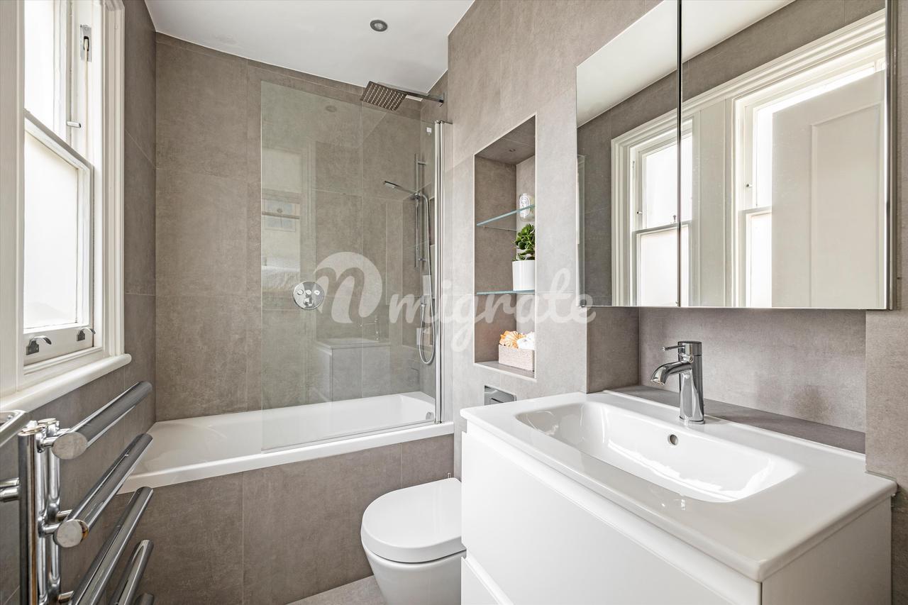 Эти хорошо оформленные апартаменты с двумя спальнями расположены на втором этаже очаровательного старинного здания. Собственность была отремонтирована в соответствии с современными требованиями, с деревянными полами, полностью выложенными плиткой ванными комнатами, в то же время сохранив старинный вид благодаря подходящим окнам со створками. Красивая полуоткрытая кухня и приемная имеют встроенную бытовую технику, а в главной спальне есть собственная душевая с современной матово-черной бытовой техникой.