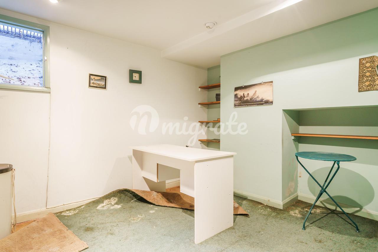 Дом занимает три этажа и нуждается в ремонте и возможном расширении. Первый этаж состоит из крытого бокового вестибюля с входной дверью, боковой дверью и выходом в сад. Вестибюль простирается до внутренней задней двери, которая открывается на кухню. Ванная комната находится в задней части кухни. В середине дома есть столовая, а в передней части - гостиная. Из столовой ведут ступеньки вниз, в подвал, где находятся две комнаты. В настоящее время на втором этаже расположены две спальни, в задней спальне есть гардеробная, которая ведет в душевую комнату. Сад расположен сбоку и сзади и имеет небольшой внутренний дворик и дорожку с травянистыми бордюрами.