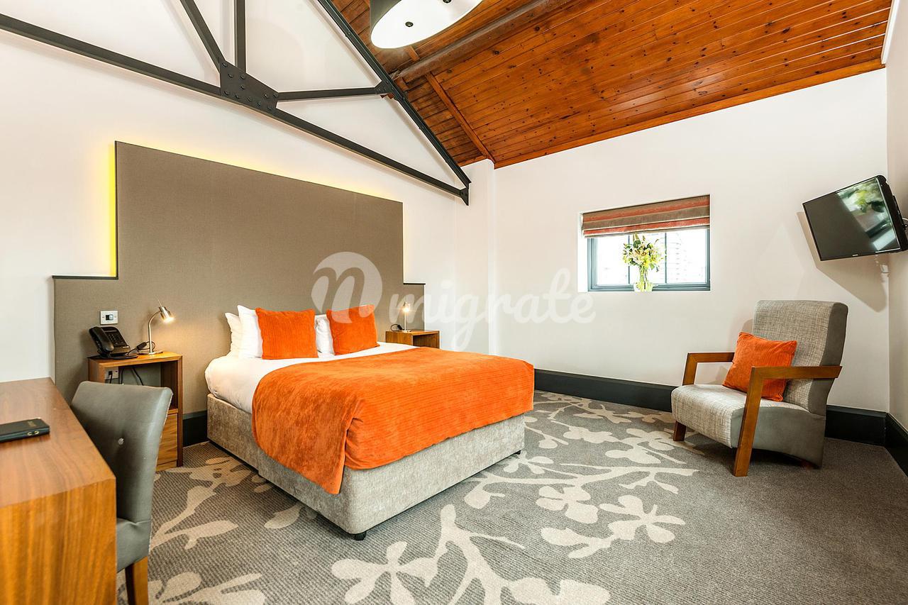 • 87 хорошо спланированных гостевых спален с ванными комнатами, включая двухместные, семейные, представительские и дуплексы. • В пяти минутах ходьбы от оживленного района Спиннингфилдс и финансового района Манчестера к северо-западу от центра города.