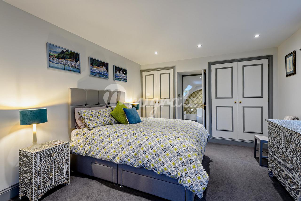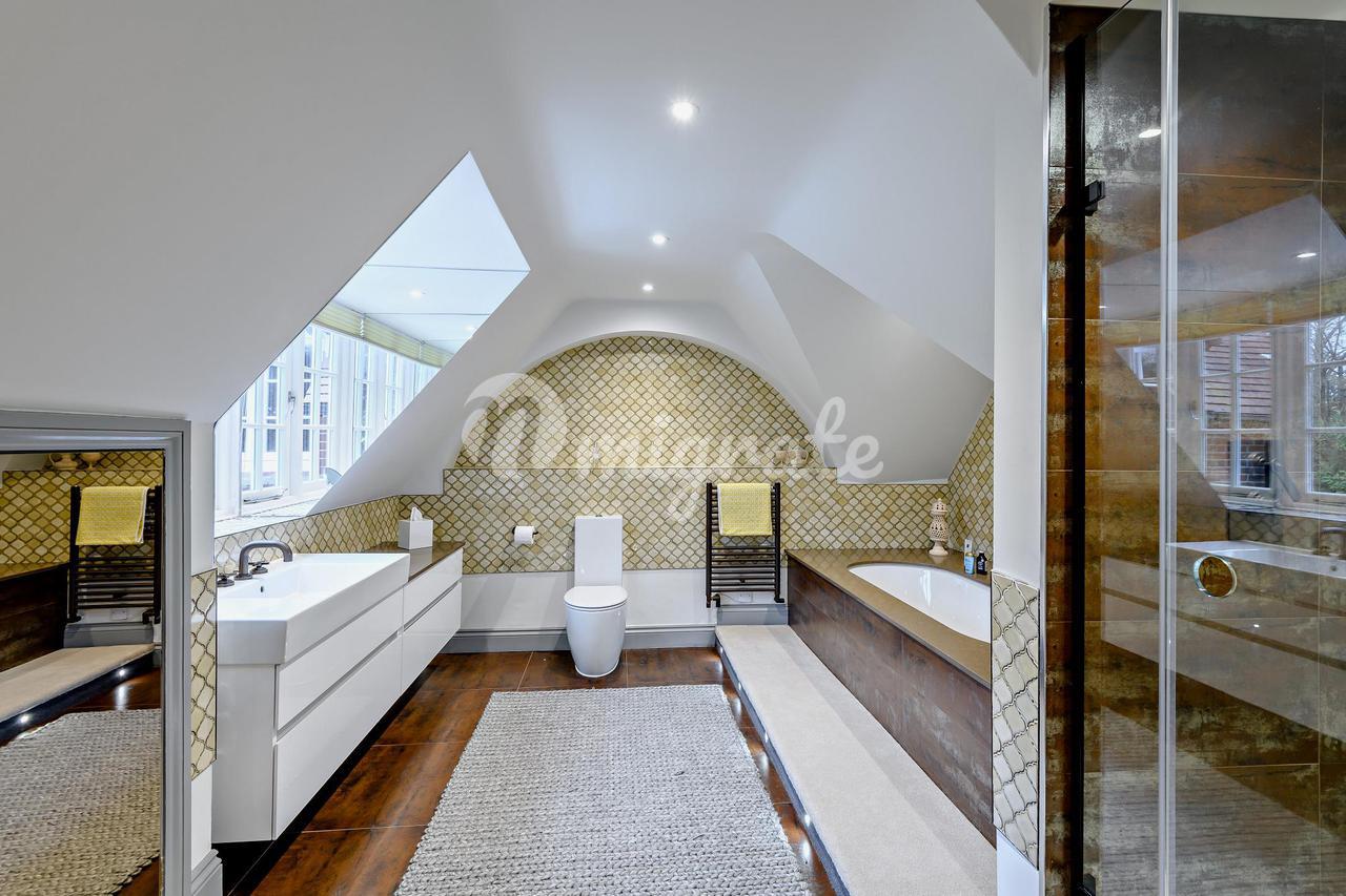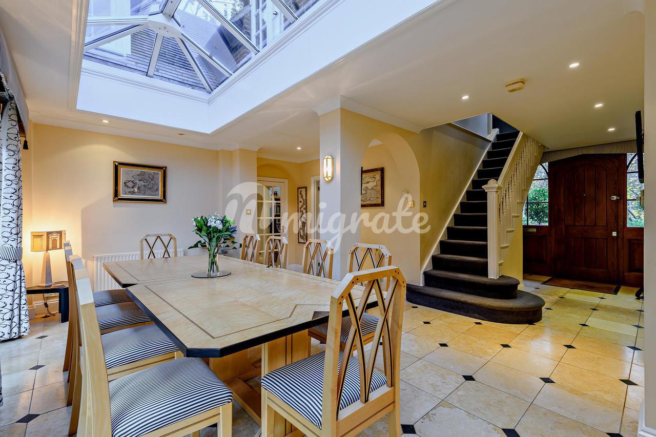 Когда вы входите в дом, вы видите внушительную прихожую с полом из иерусалимского известняка и элегантную обеденную зону, идеально подходящую для приема гостей, с двумя двойными дверями, выходящими на солнечную террасу и в сад. Из холла находится большая, сделанная на заказ кухня/комната для завтрака с двойным фасадом, с кухонными гарнитурами из клена, гранитными столешницами и встроенной бытовой техникой. Рядом с кухней находится просторное подсобное помещение с кладовой и отдельной комнатой для хранения вещей, уютный кабинет и кабинет. Просторная гостиная с двойным фасадом, открытым камином и двойными дверями, ведущими в садовую комнату с великолепным видом на сад и двойными дверями, ведущими на террасу. На первом этаже также есть гостевой гардероб и душевая, последняя удобно расположена для использования с пятой спальней. На первом этаже главная спальня с двойным фасадом имеет встроенные шкафы и просторную элегантную ванную комнату. Есть еще три спальни, вторая спальня также имеет большую и стильную ванную комнату. Между третьей и четвертой спальнями находится семейная ванная комната. В пятую спальню, расположенную над встроенным гаражом на две машины, можно попасть по вспомогательной лестнице.