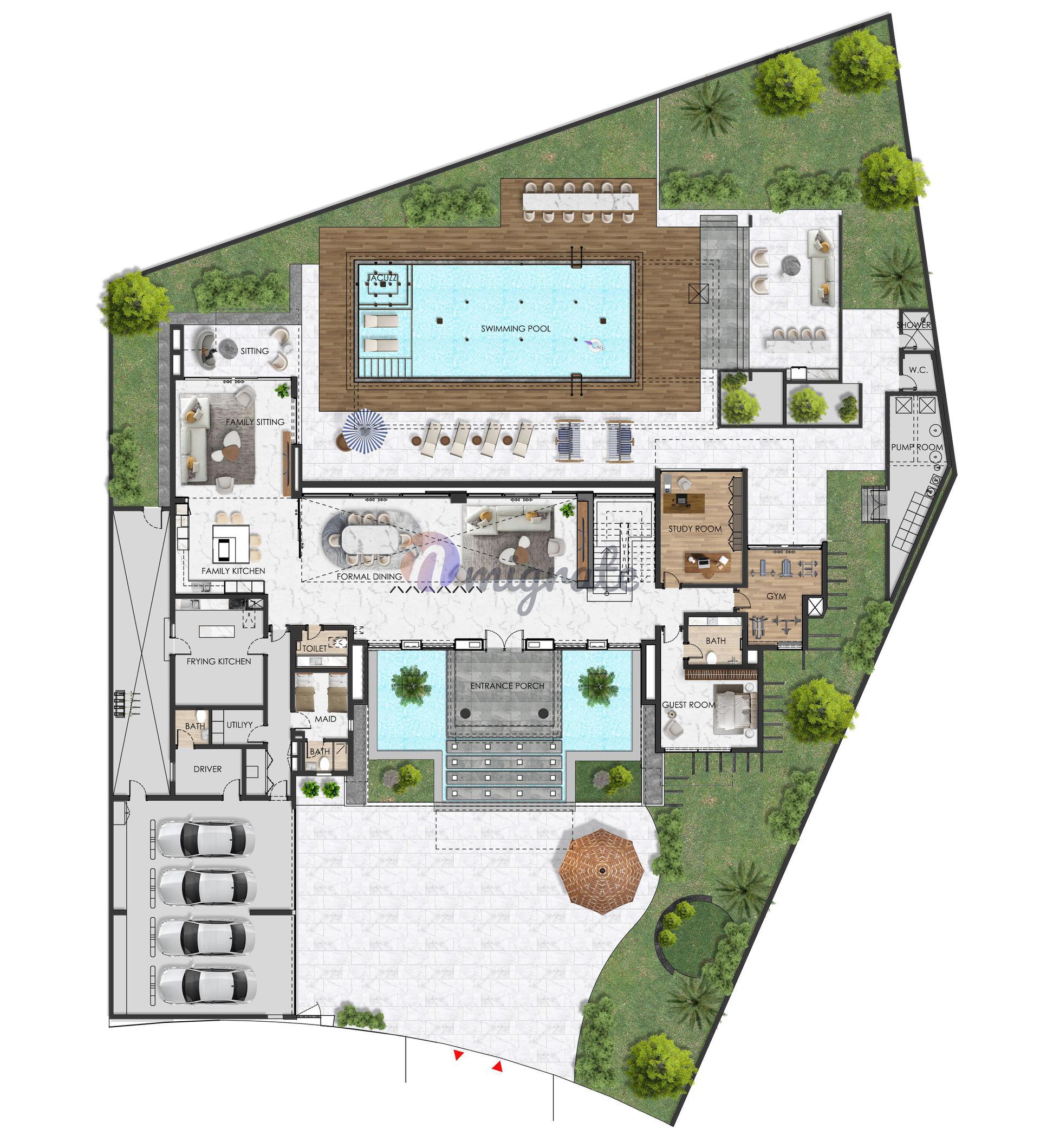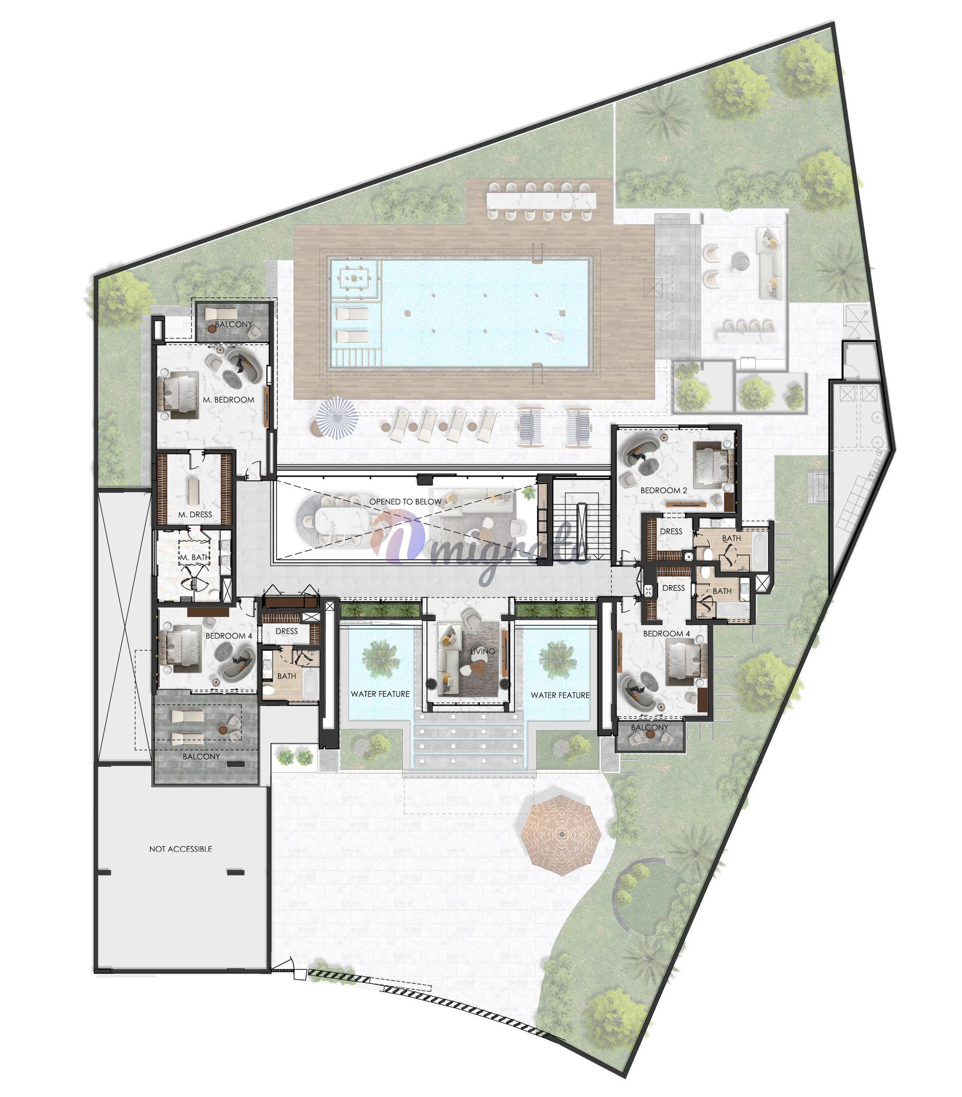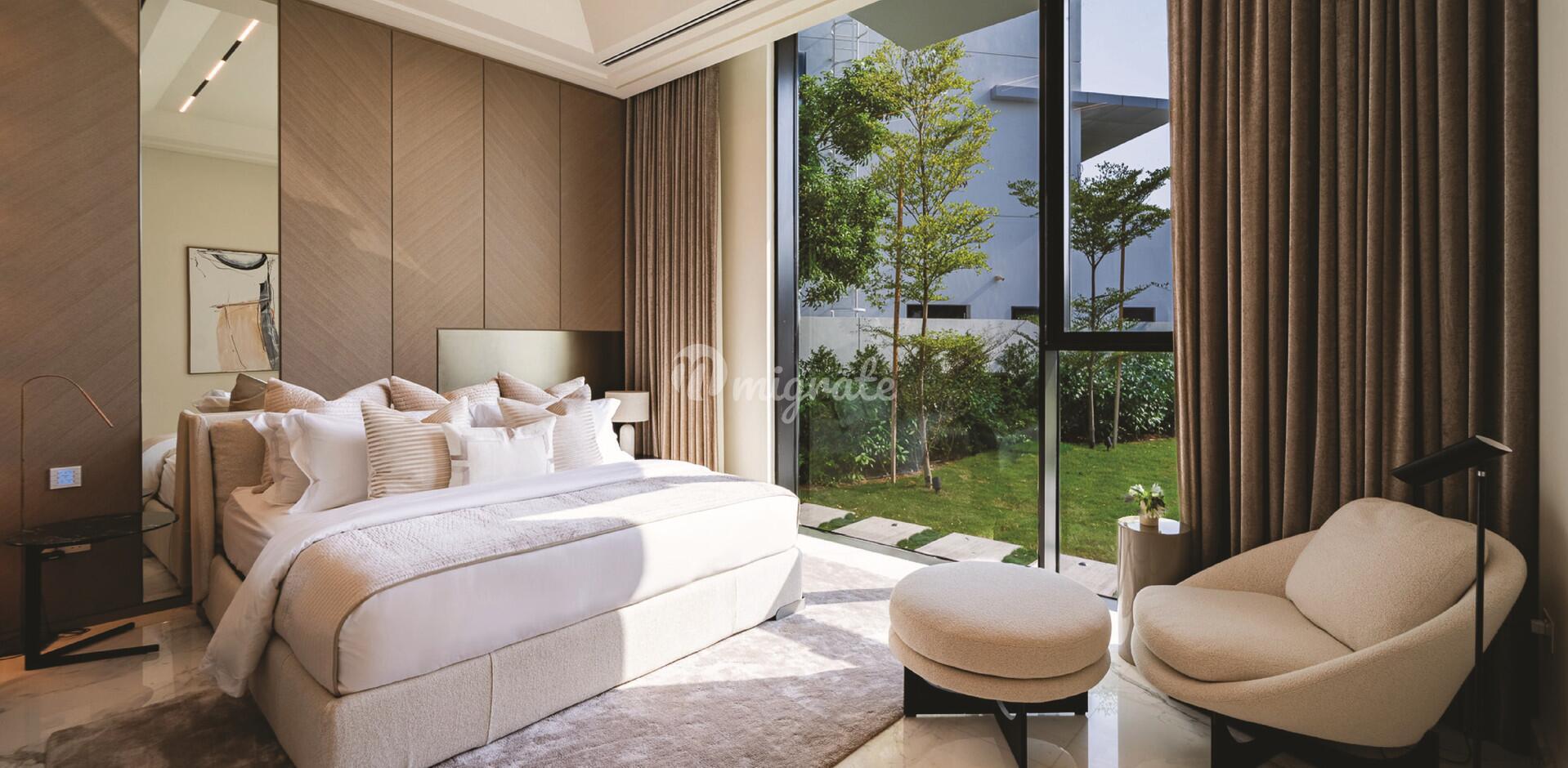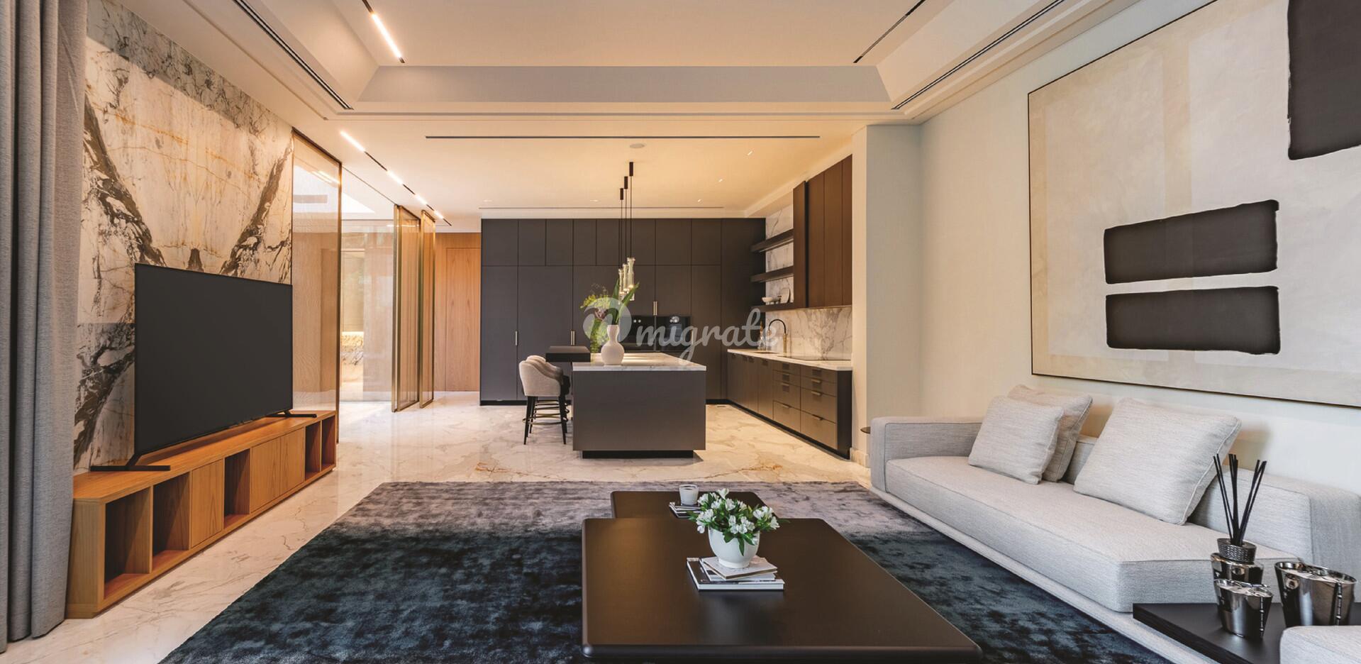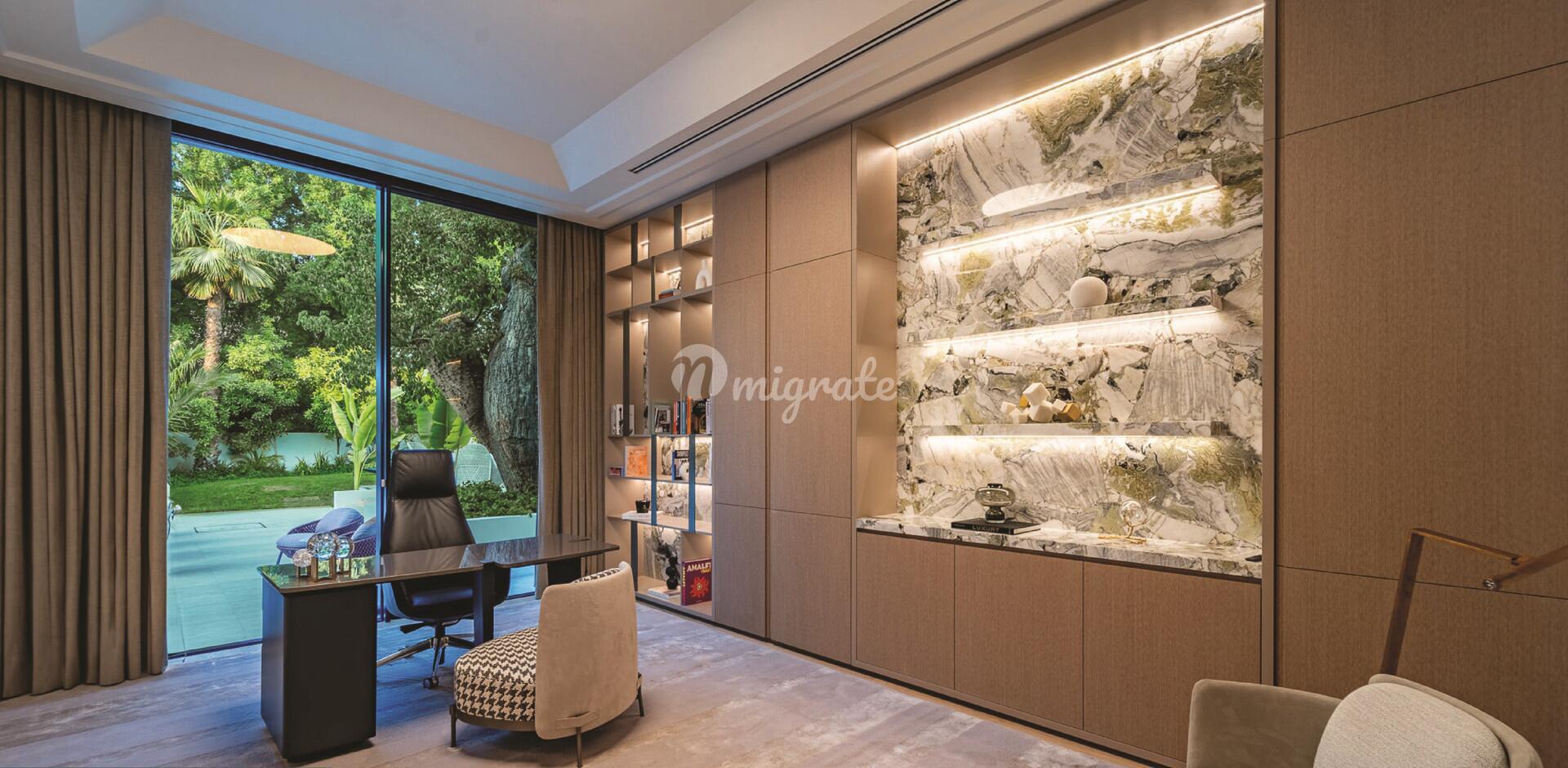 Архитектура этого особняка демонстрирует изысканную современную утонченность, а широкие окна заливают интерьеры естественным светом. На двух просторных этажах особняка расположены пять прекрасно оборудованных спален и несколько гостиных зон, созданных для комфорта и стиля. Кроме того, здесь есть открытые пространства с пышным садом, тенистой беседкой, изысканными обеденными зонами и элегантным баром, идеально подходящим для приема гостей. А в самом сердце особняка находится потрясающий бассейн, который является идеальным местом для безмятежного отдыха на свежем воздухе.