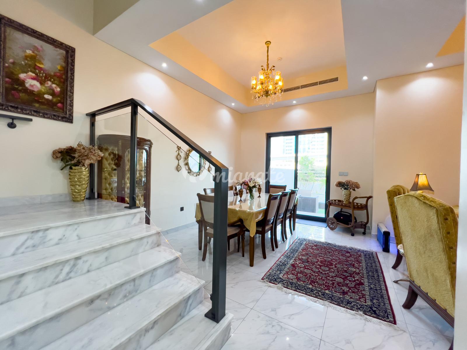 Мы рады представить вам этот таунхаус в Аль Фурджане. Таунхаус отличается простором благодаря высоким потолкам. Внизу находится большая закрытая кухня, а также столовая и гостиная открытой планировки. Из этой зоны можно выйти в большой ухоженный сад с ландшафтным дизайном, расположенный в одном ряду и обеспечивающий достаточную приватность. Поднявшись наверх, вы сможете воспользоваться 3 просторными спальнями, все с ванными комнатами, а также большой семейной комнатой на лестничной площадке с выходом на собственную террасу. В таунхаусе также есть туалетная комната, просторная кладовая, прачечная, комната для прислуги и встроенные шкафы.