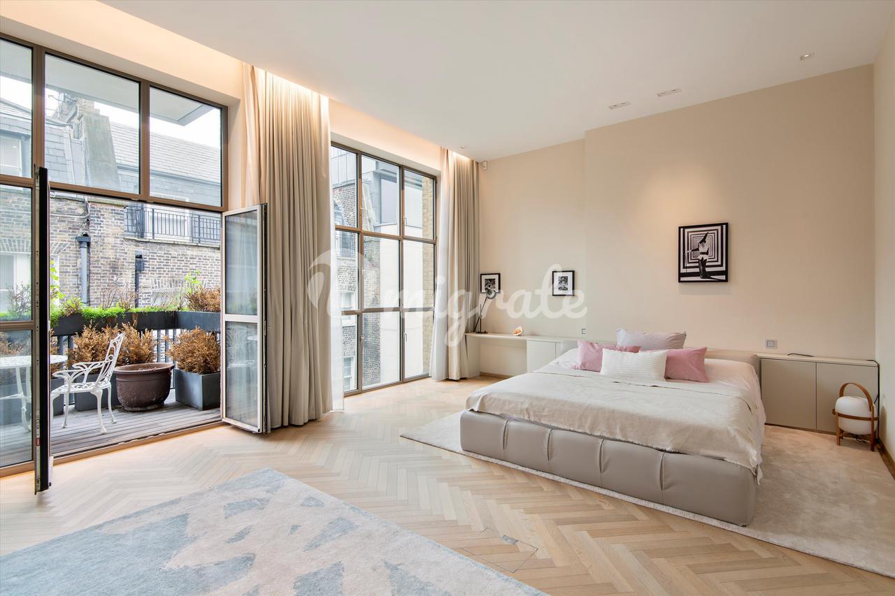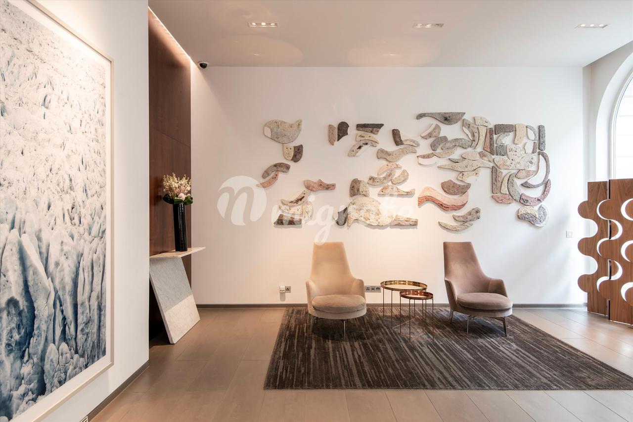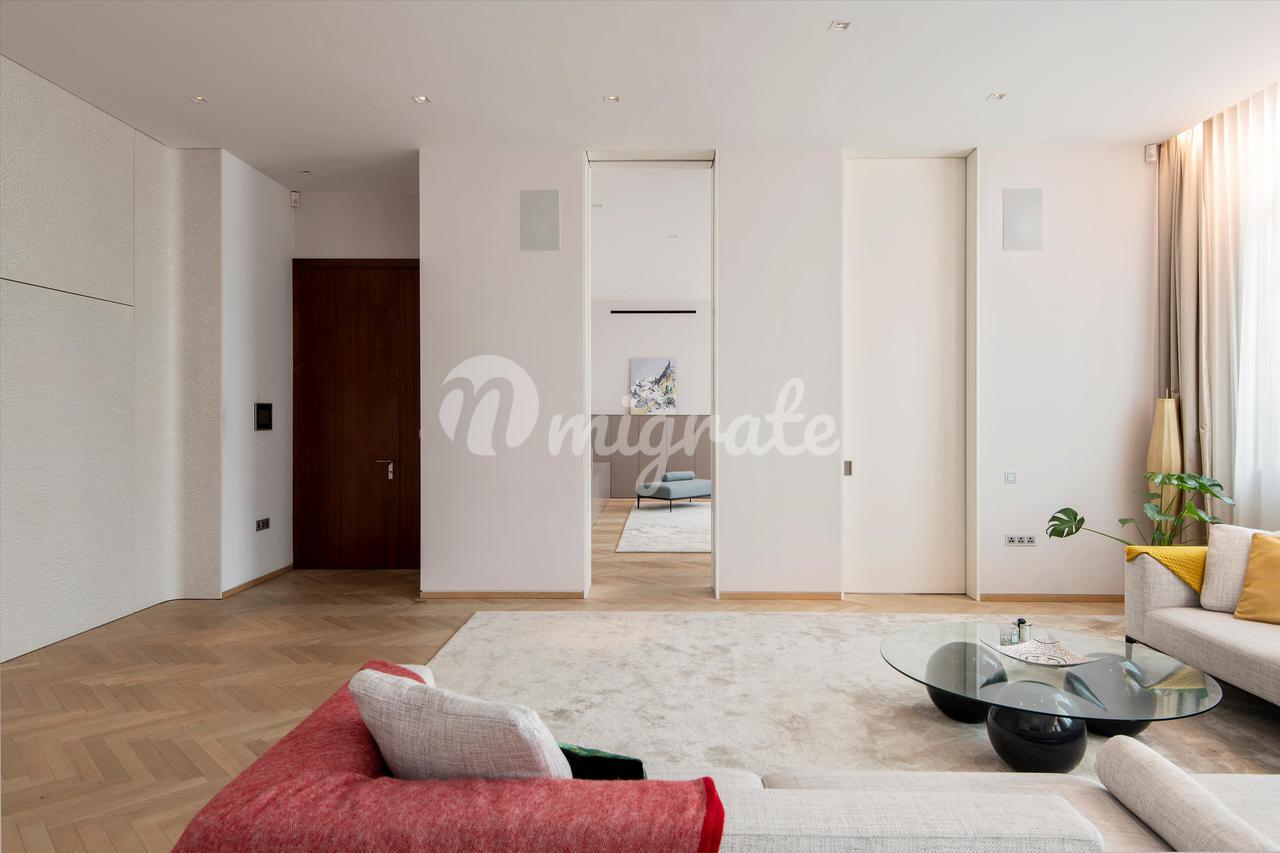 Главная приемная / столовая имеет захватывающий дух масштаб с невероятными 3,5-метровыми потолками, библиотекой и зоной для занятий. Через несколько гладких раздвижных дверей вы можете найти вторую приемную / галерею. Высококлассная кухня Bulthaup со встроенной бытовой техникой Miele создает атмосферу общения и приема пищи. На кухне есть сделанная на заказ металлическая раздвижная стена на барной стойке, чтобы вы могли закрыть кухню от гостиной. Во всех спальнях есть современные ванные комнаты. В основной спальне есть успокаивающая гардеробная, просторная ванная комната и балкон, идеально подходящий для утреннего кофе.