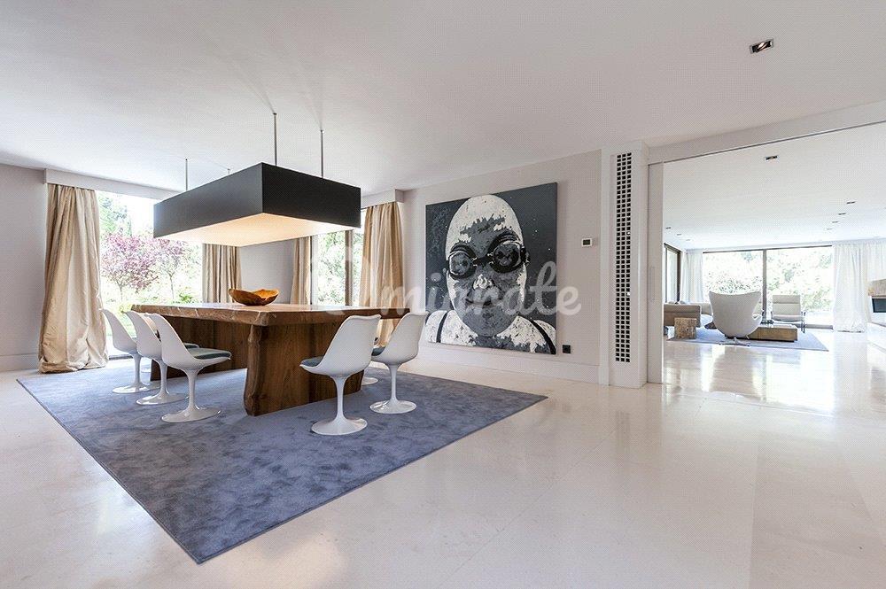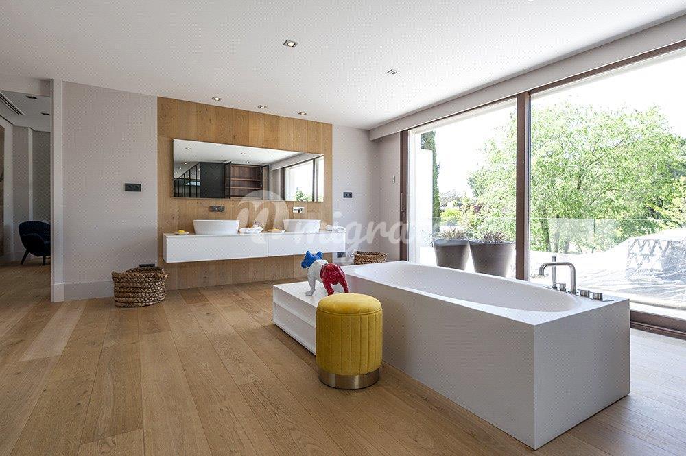 Дом, расположенный на главной улице урбанизации Ла Моралеха, состоит из 1400 м² и 10 700 м² практически плоского участка со столетними деревьями и прекрасным видом на горы, 3400 м² газона, спроектированного ландшафтным дизайнером, и бассейна площадью 100 м². переливается и нагревается. Эта современная собственность с прекрасным видом из любой точки дома имеет окна и окна на участок, вид на горы и лесные массивы, сохраняя конфиденциальность как главную цель. Они открывают свои двери через светлый холл двойной высоты. Первый этаж состоит из гостиной-столовой, различных гостиных и комнат отдыха, спальни для гостей и зоны обслуживания. По дизайнерской лестнице мы попадаем на второй этаж, где находим главные спальни и апартаменты с гардеробными, большими окнами и видами на бесконечность. Все спальни с жалюзи и электрические жалюзи. Как внутренняя, так и внешняя кухня состоит из всей бытовой техники для обслуживания больших групп посетителей. Имущество состоит из тренажерного зала, домашней автоматизации, полов с подогревом с автоматическими регуляторами, кондиционирования воздуха марки Daikin и теплового насоса, мощности 50 кВт для удовлетворения всех потребностей как дома, так и участка, полностью освещены с различными сценариями возможностей с технологическими светодиодными камерами наблюдения и централизованные системы Wi-Fi, централизованные системы цифрового телевидения во всех областях. На ферме есть будка безопасности для круглосуточного наблюдения с полностью оборудованной ванной комнатой и средствами наблюдения, колодец, который питает 20000-литровый бак с напорным насосом для полива, который полностью автоматизирован на всем участке.