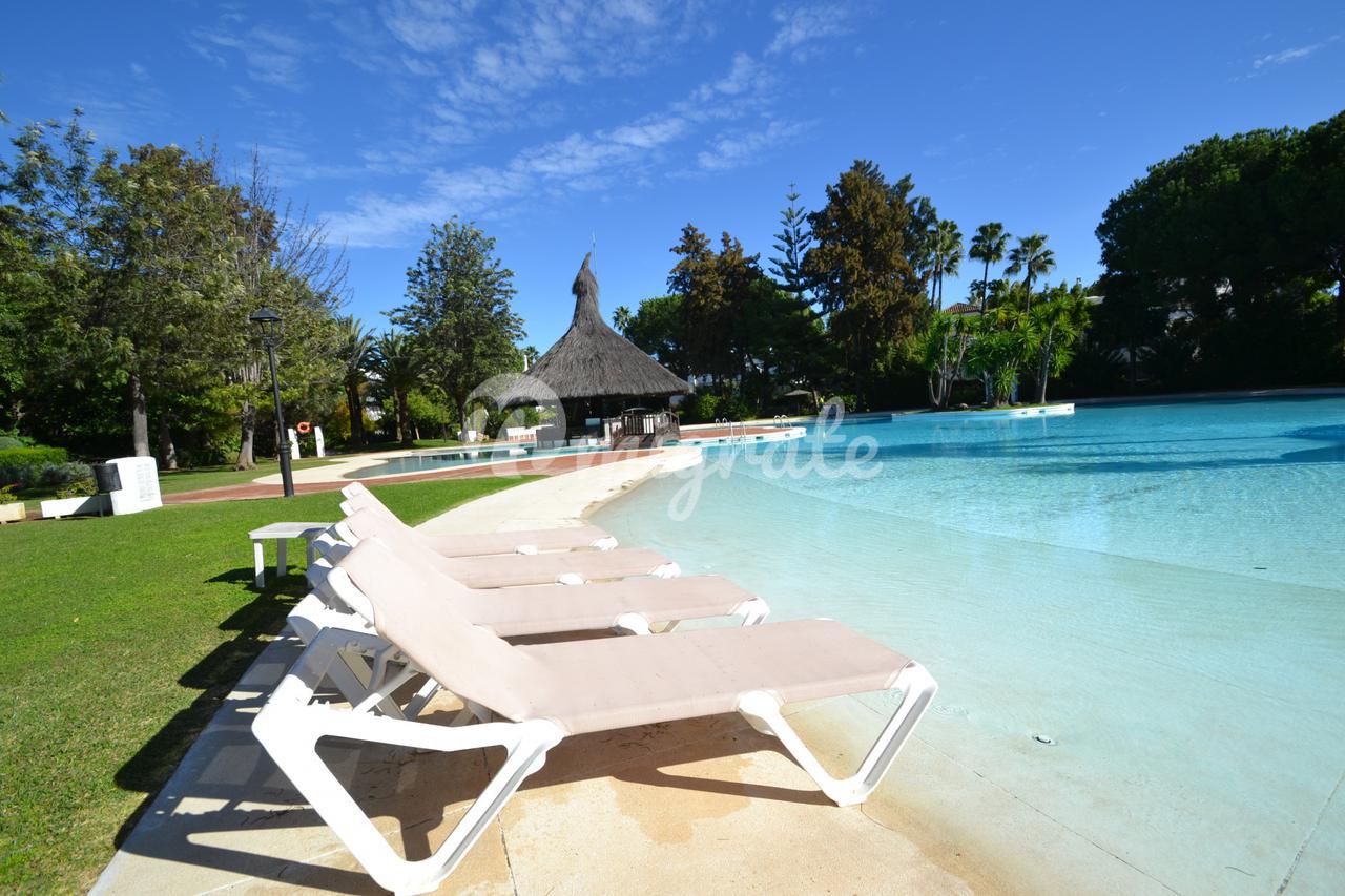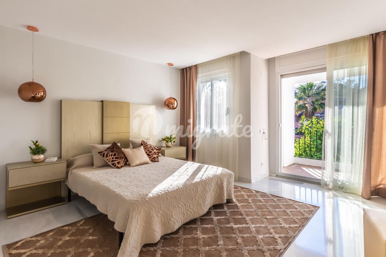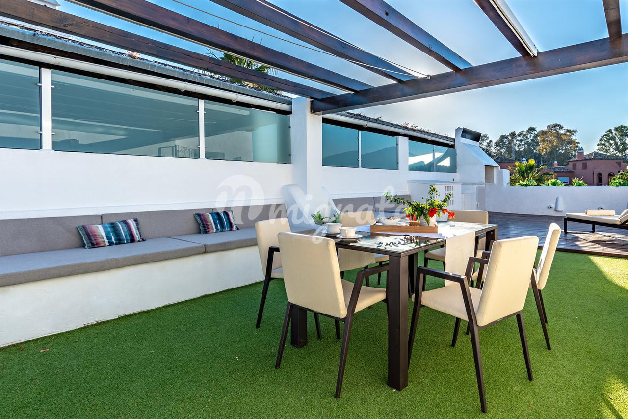 Эти просторные апартаменты находятся в закрытом жилом комплексе с круглосуточной охраной, рядом со всеми видами услуг, магазинами, школами, ресторанами, а также недалеко от поля для гольфа Guadalmina и Падель-клуба. В комплексе есть большие зеленые зоны, бассейн озерного типа, прогулочные зоны, корт для паддл-тенниса и общественная парковка. Состоит из гостиной с камином с выходом на террасу около 30 м2 с восточной ориентацией и открытыми видами на общие зеленые зоны и бассейн. Полностью отремонтированная кухня с современной бытовой техникой и практичной прачечной. Спальни внешние и светлые. В главной спальне есть собственная терраса, а в ванной комнате есть сауна и джакузи. Этаж солярия состоит из небольшого кабинета, который можно использовать как пятую спальню с выходом на большую террасу с джакузи, барбекю и зоной отдыха, где вы можете насладиться прекрасным видом и расслабиться.