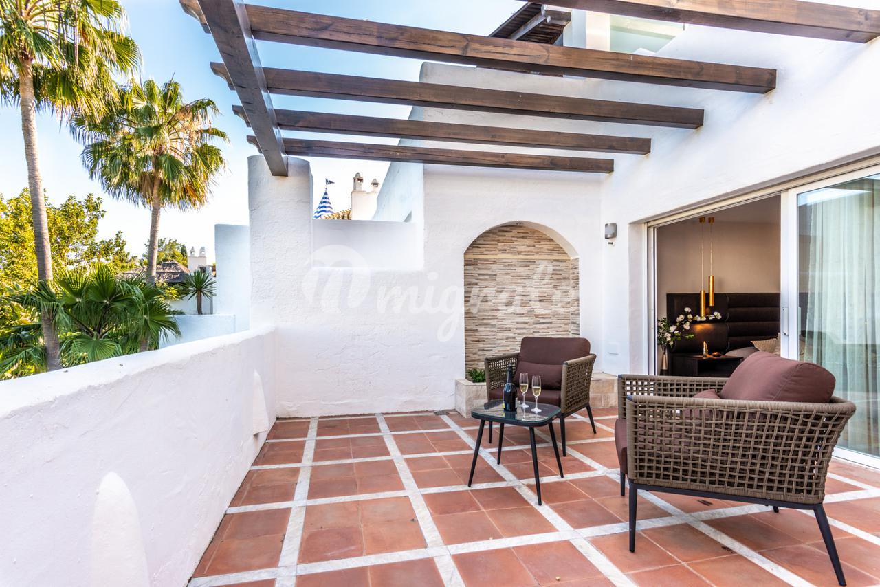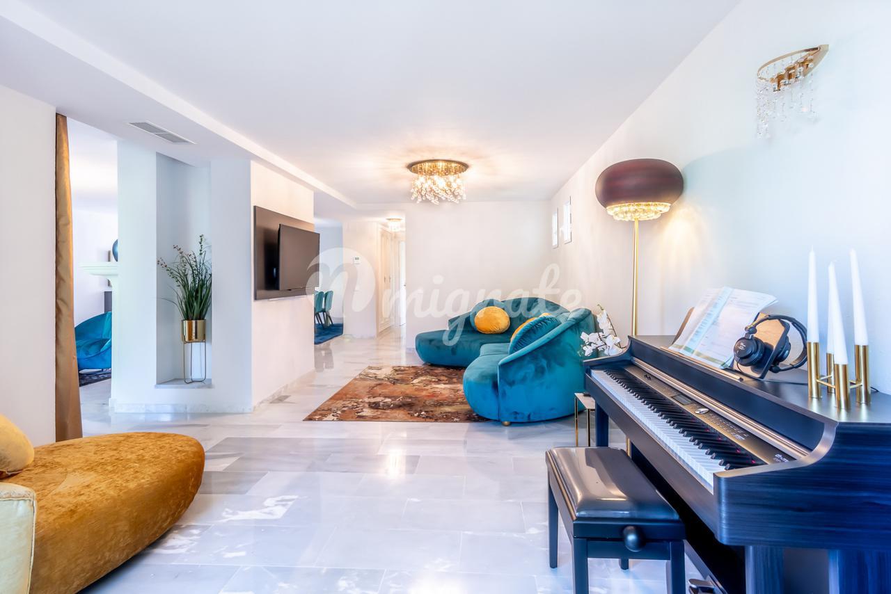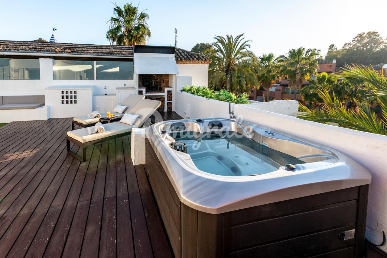 Эти просторные апартаменты находятся в закрытом жилом комплексе с круглосуточной охраной, рядом со всеми видами услуг, магазинами, школами, ресторанами, а также недалеко от поля для гольфа Guadalmina и Падель-клуба. В комплексе есть большие зеленые зоны, бассейн озерного типа, прогулочные зоны, корт для паддл-тенниса и общественная парковка. Состоит из гостиной с камином с выходом на террасу около 30 м2 с восточной ориентацией и открытыми видами на общие зеленые зоны и бассейн. Полностью отремонтированная кухня с современной бытовой техникой и практичной прачечной. Спальни внешние и светлые. В главной спальне есть собственная терраса, а в ванной комнате есть сауна и джакузи. Этаж солярия состоит из небольшого кабинета, который можно использовать как пятую спальню с выходом на большую террасу с джакузи, барбекю и зоной отдыха, где вы можете насладиться прекрасным видом и расслабиться.