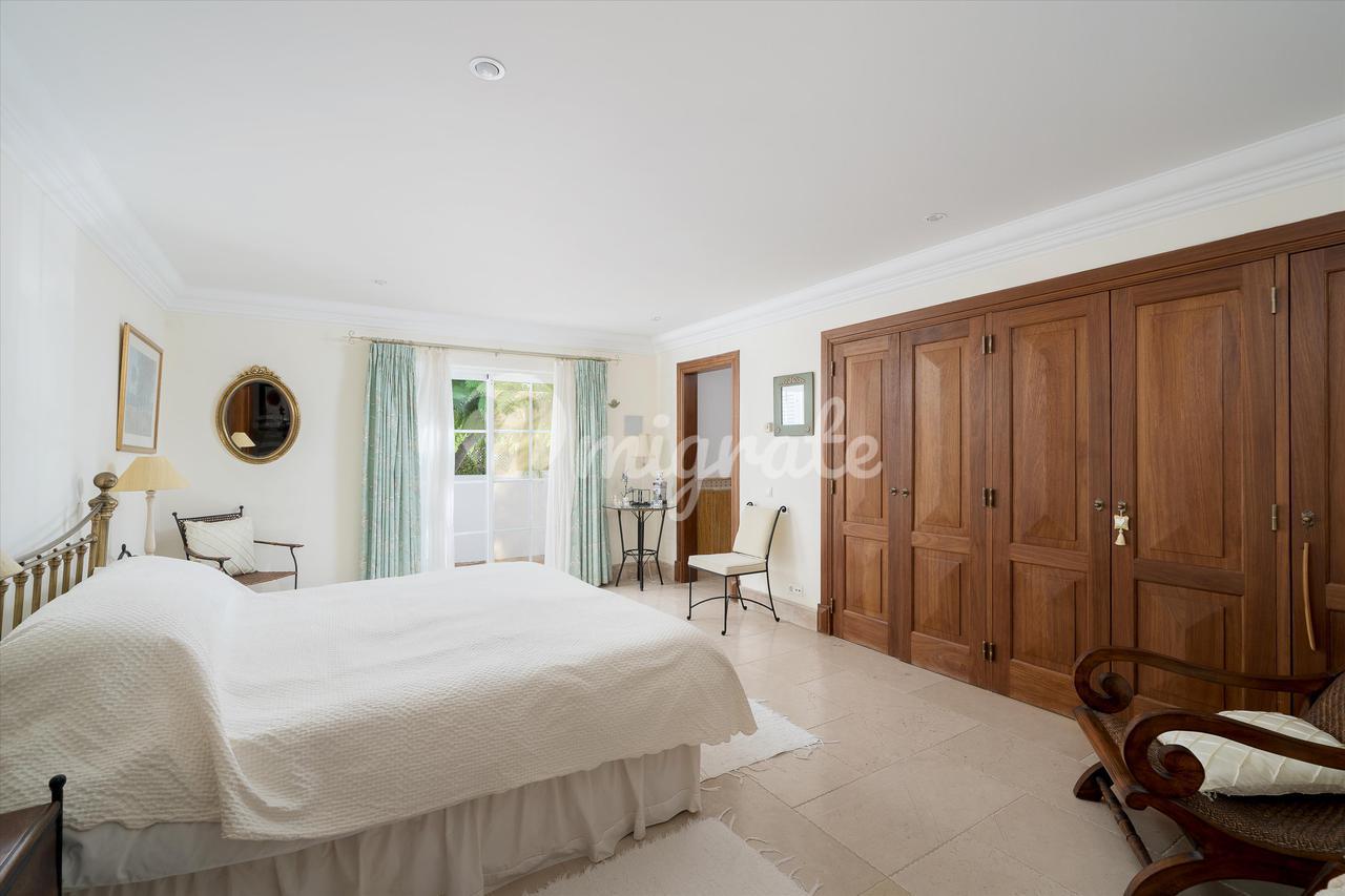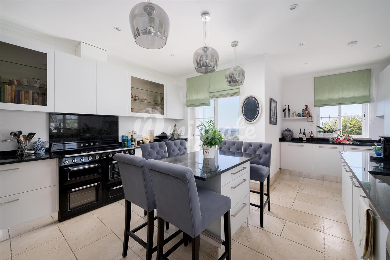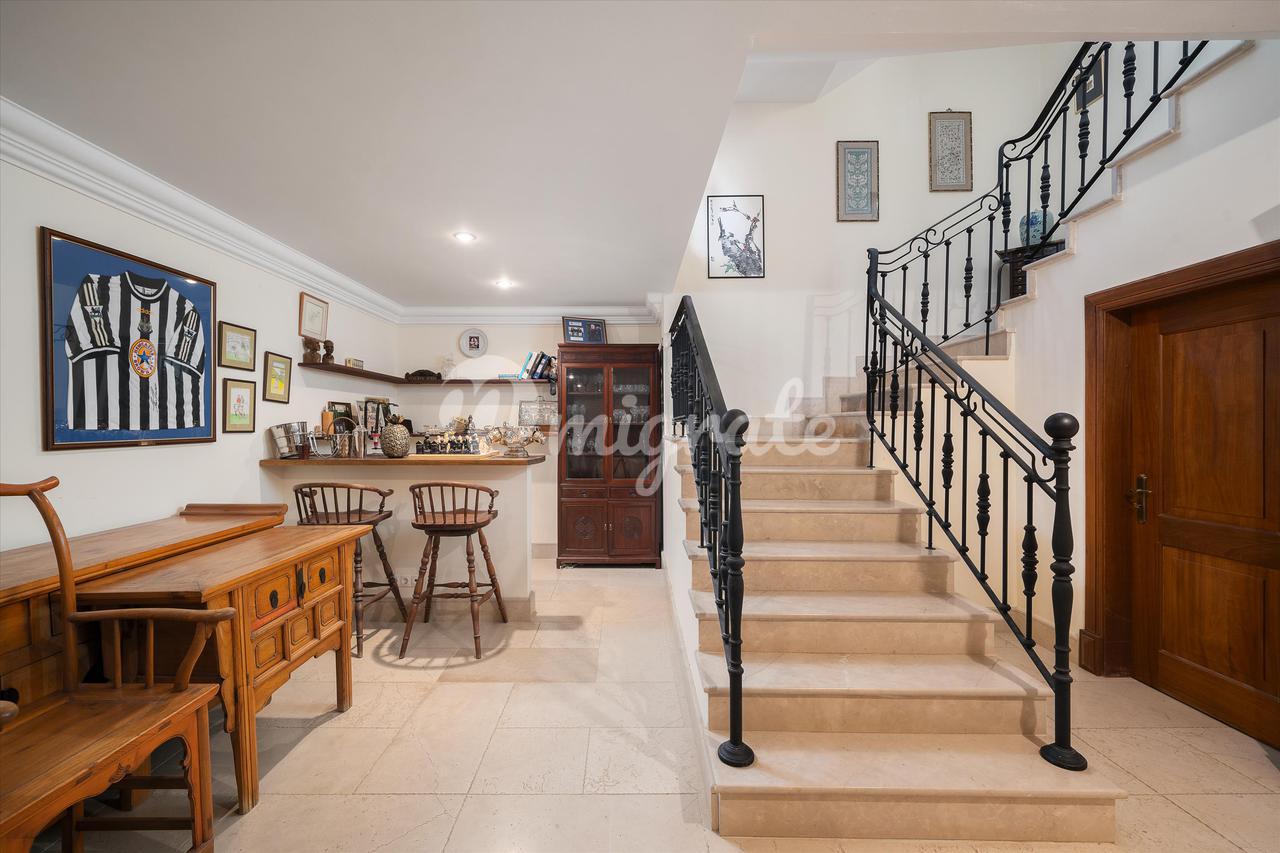 Имущество включает в себя гостиную с отдельной столовой и недавно полностью оборудованную кухню с индукционной плитой SMEG в деревенском стиле и центральным кухонным островом. Все жилые помещения выходят на внешнюю террасу к бассейну. На этом этаже есть уютная зона и 2 спальни с ванными комнатами, а также гостевая гардеробная. На втором этаже есть 2 спальни с ванными комнатами и кабинет/офис на просторной площадке, все с видом на море. На цокольном этаже находится игровая зона с большим телевизором и барной стойкой, просторная прачечная с большим количеством мест для хранения вещей и большая спальня с ванной комнатой и естественным освещением. На вилле есть кондиционер и полы с подогревом.