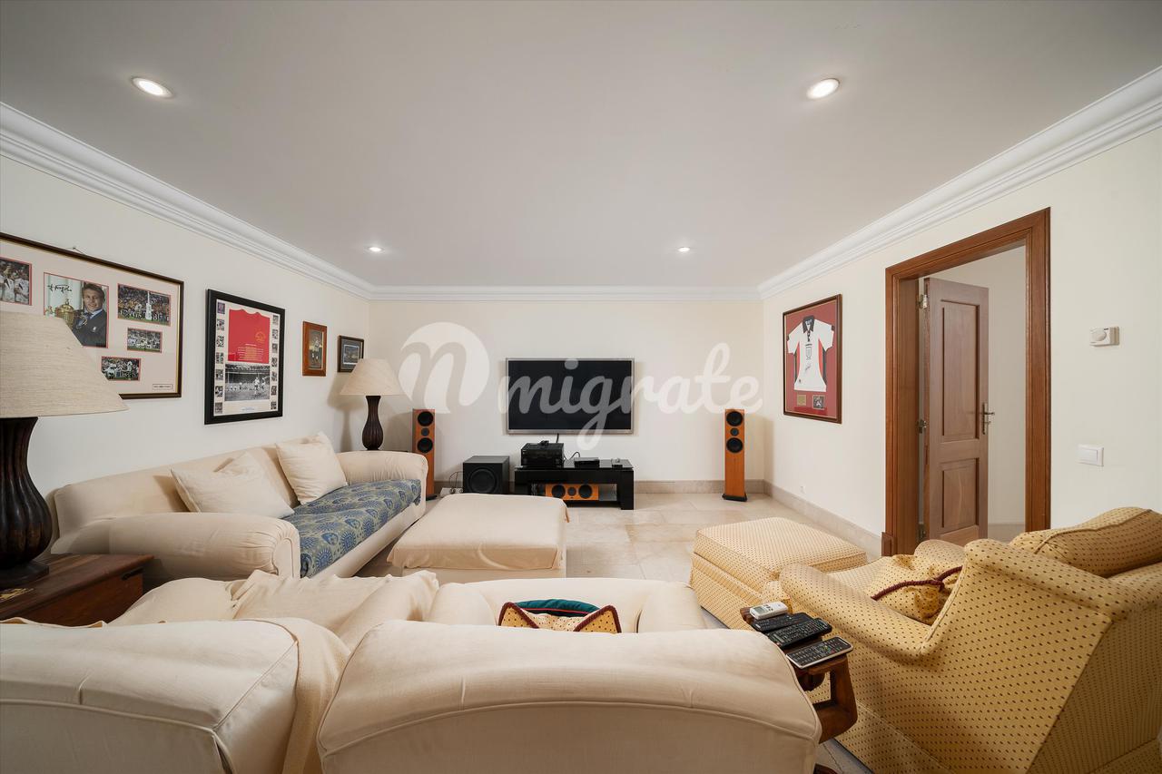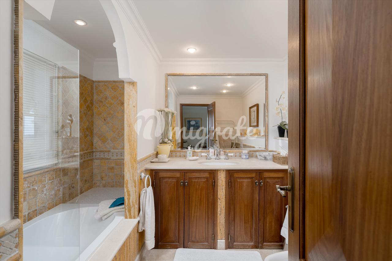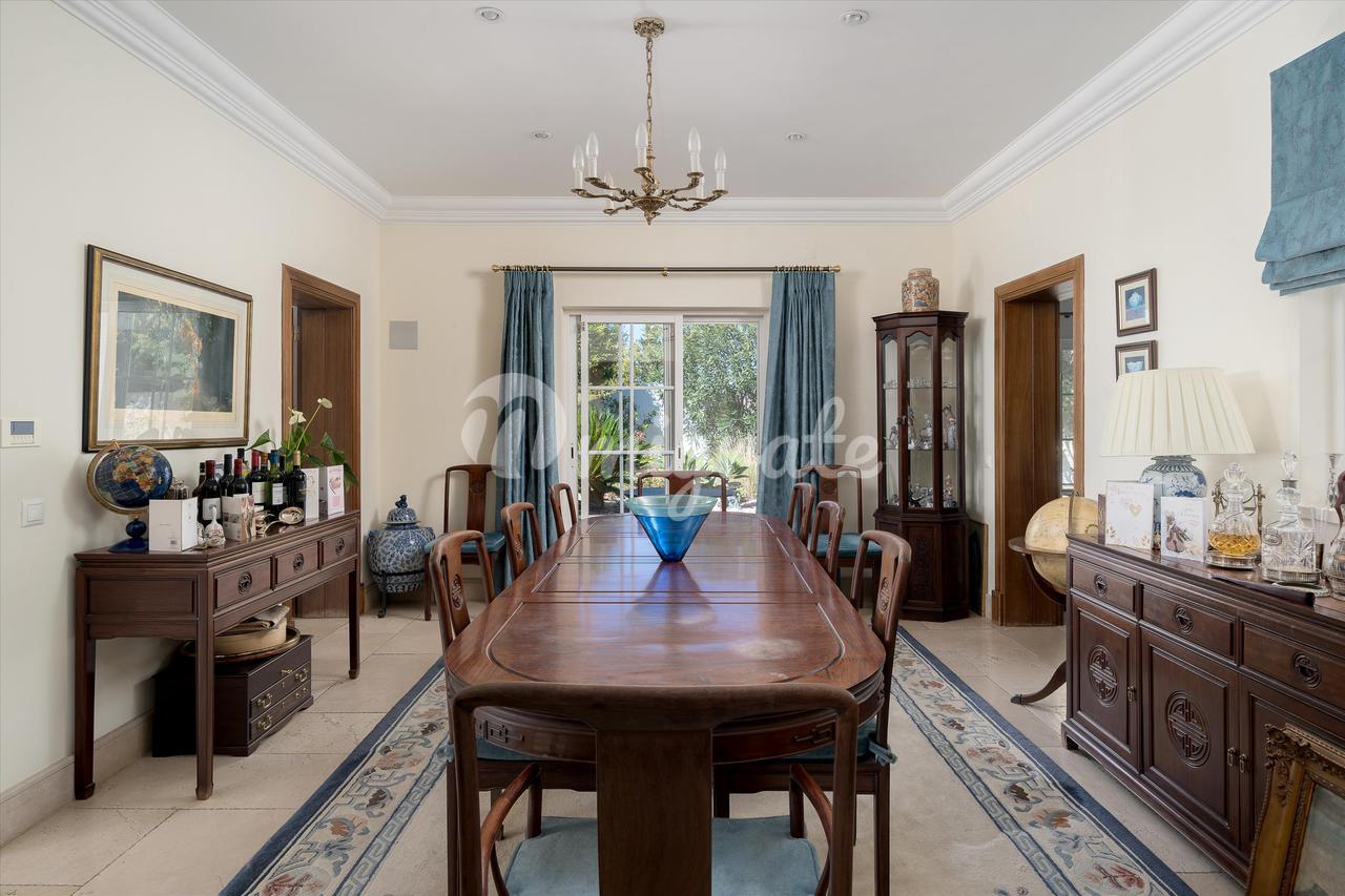 Имущество включает в себя гостиную с отдельной столовой и недавно полностью оборудованную кухню с индукционной плитой SMEG в деревенском стиле и центральным кухонным островом. Все жилые помещения выходят на внешнюю террасу к бассейну. На этом этаже есть уютная зона и 2 спальни с ванными комнатами, а также гостевая гардеробная. На втором этаже есть 2 спальни с ванными комнатами и кабинет/офис на просторной площадке, все с видом на море. На цокольном этаже находится игровая зона с большим телевизором и барной стойкой, просторная прачечная с большим количеством мест для хранения вещей и большая спальня с ванной комнатой и естественным освещением. На вилле есть кондиционер и полы с подогревом.