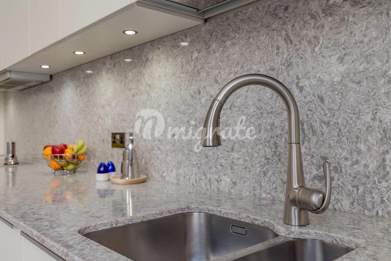 С первого этажа лестница ведет в подсобное помещение, которое затем дает доступ к задней двери, ведущей во внутренний дворик и к трем парковочным местам. Остальная часть нижнего этажа предназначена для использования в качестве отдельной квартиры, но отделена от основного дома только разделительной дверью. Это дает людям возможность сохранить этот этаж как часть основного дома, если это необходимо. Он может быть идеальным в качестве гостевого дома, комнаты для детей старшего возраста или домашнего офиса. Жилье состоит из кухни/гостиной открытой планировки, двух спален и двух душевых.