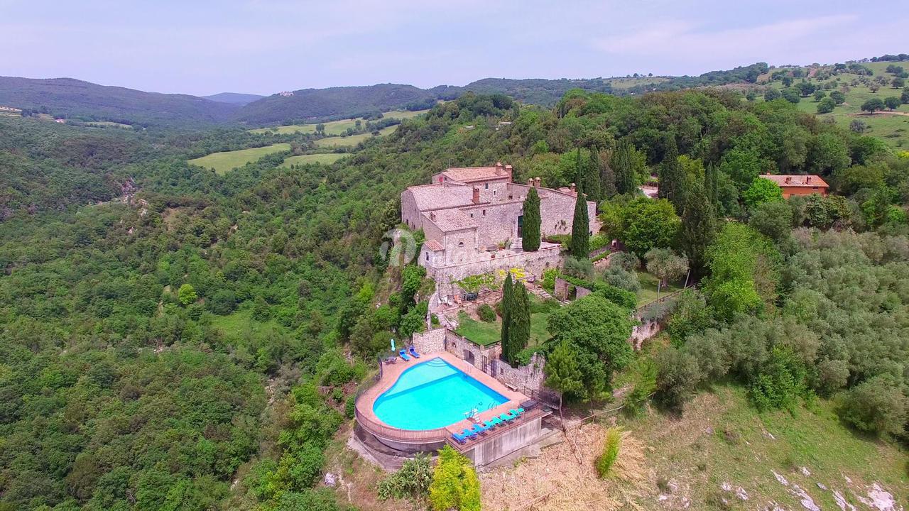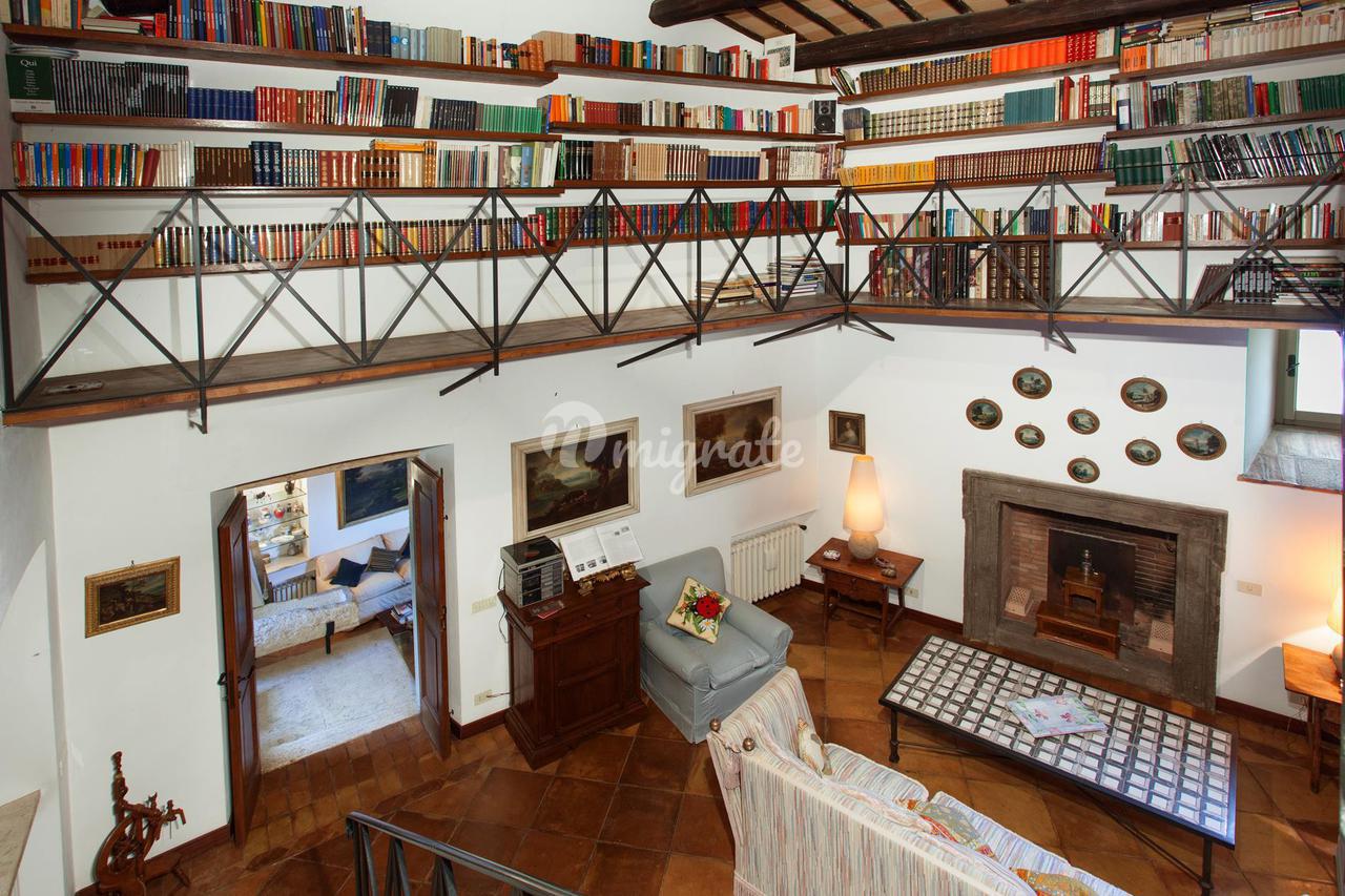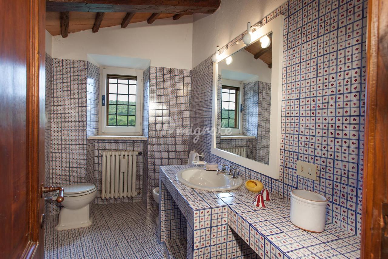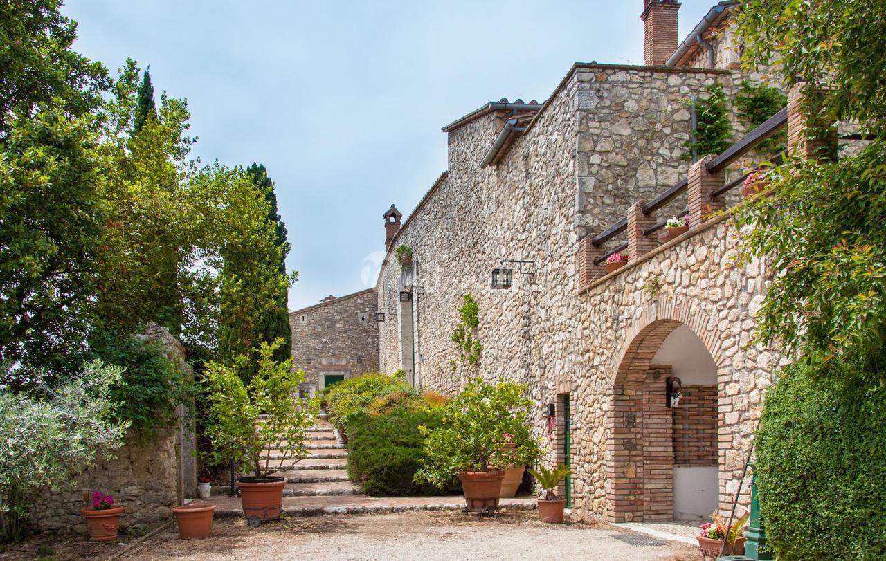 Некогда монастырь, который был превращен в руины, это чудесное поместье было куплено в 1979 году семьей нынешних владельцев и с любовью и кропотливостью восстановлено в его великолепном нынешнем виде. Внешне здание сохранило свой монашеский характер, идеально вписываясь в зеленую сельскую местность Умбрии, в то время как вход и подъездные пути обсажены кипарисами в самых классических умбрийско-тосканских традициях. Попасть ко входу можно по винтовым ступеням, через внешнюю террасу с видом на луга с оливковыми деревьями и большой бассейн, расположенный на обрыве над речным ущельем. Рядом со входом находится часовня, которая также была отреставрирована и расписана фресками английского художника. Портал ведет в вымощенный камнем внутренний двор (или, возможно, в ранее существовавший монастырь), из которого можно попасть в гостиную с большим камином и полом, выложенным терракотовой плиткой. Рядом с гостиной находятся кабинет и столовая, которые выходят на террасу с лужайкой. Просторная кухня, также расположенная на первом этаже, выложена крупной белой керамической плиткой. Лестница из травертина ведет на верхний этаж, где находится гостиная с библиотечной галереей, две спальни и две ванные комнаты. Из внутреннего двора лестница, отделанная травертином, ведет в гостевые апартаменты с главной спальней, еще одной спальней и небольшой гостиной. В каждой из двух спален есть полностью оборудованная ванная комната. Большой плавательный бассейн размером 13 х 14 метров в самом длинном месте имеет форму рояля. Расположенный на солнечном месте и защищенный от ветра, он выходит с перепадом высот около 100 метров на обрыв, спускающийся в ущелье Фоссо, или Рио-Гранде, притока реки Тибр. Дом расположен в великолепном месте с пологими склонами, богатыми лугами и небольшими лесами, спускающимися к долине Тибра. В сад, расположенный под домом, можно попасть через прямоугольный каменный портал, вделанный в стену, увитую ползучим жасмином. Ступени, ведущие вниз в сад, обрамлены живой изгородью и многоярусной стеной, а сад с естественным газоном окружен руинами древних каменных зданий. Все было оставлено в своем естественном состоянии с учетом сельских особенностей местности. Сад разделен пополам древней стеной, увитой кустами дикой розы и настенными растениями вперемешку с каперсами, и выходит аркой на оставшуюся часть сада. Со второй лужайки каменные ступени ведут вниз к бассейну. Существует также пристройка, построенная в 1993 году на 3 этажах, площадью около 270 кв.м, с двумя жилыми блоками на первом и втором этажах. На первом этаже (классифицируемом как сельскохозяйственное подразделение) находится помещение, используемое в качестве жилого/офисного помещения. Первый этаж: гостиная с открытой кухней, 2 спальни, 1 ванная комната (достаточная для размещения людей с ограниченными физическими возможностями) и дополнительная комната, используемая в качестве офиса, с прилегающим внутренним двором с парой небольших хозяйственных построек (кладовая и курятник). Второй этаж: гостиная, 2 спальни, 1 ванная комната, кухня, пригодный для жилья балкон. Второй этаж: открытое пространство, предназначенное для гостиной и столовой с открытой кухней, 2 спальни и 2 ванные комнаты.