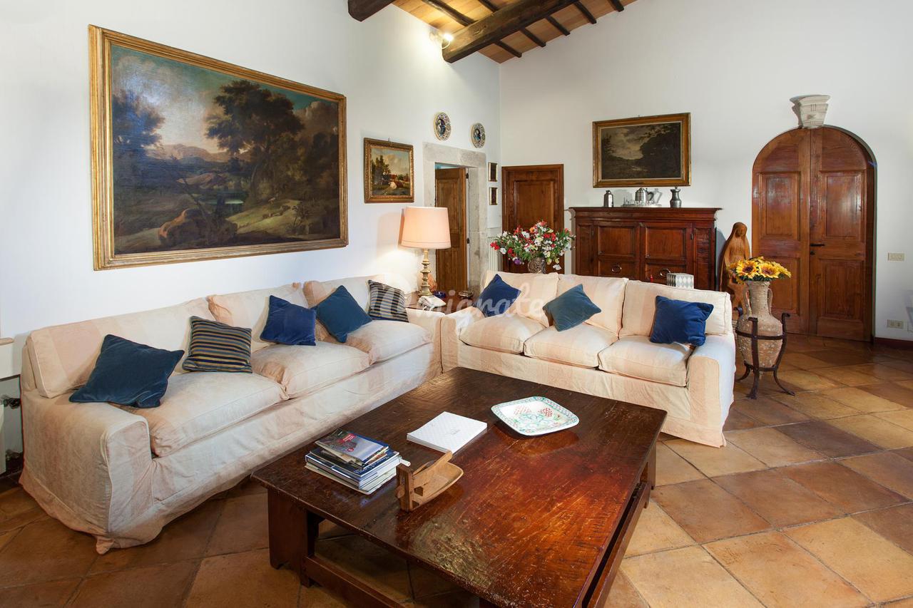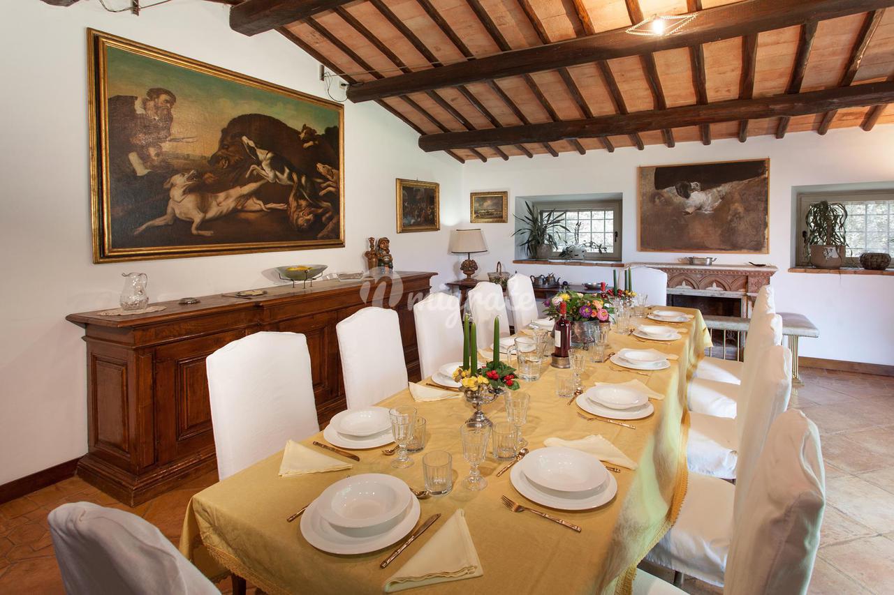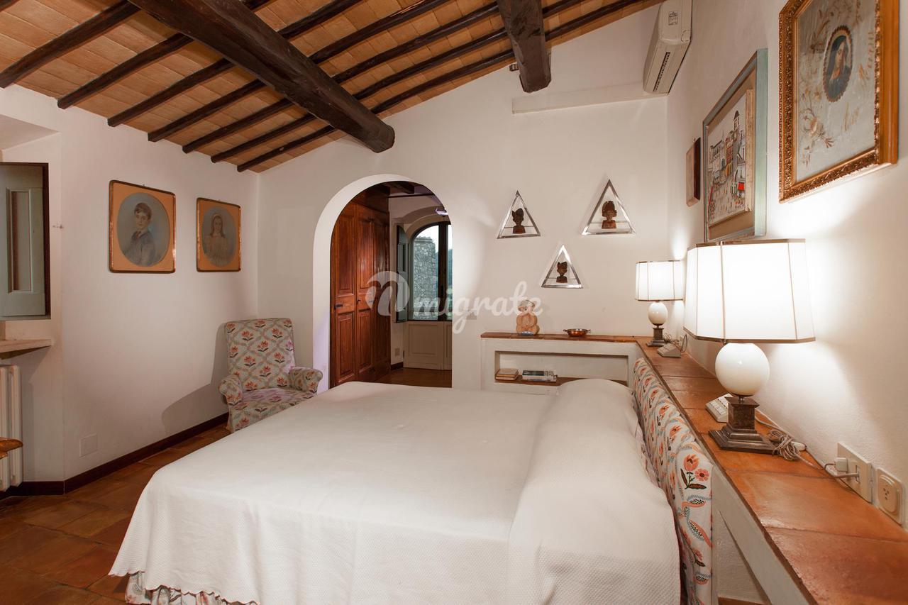 Некогда монастырь, который был превращен в руины, это чудесное поместье было куплено в 1979 году семьей нынешних владельцев и с любовью и кропотливостью восстановлено в его великолепном нынешнем виде. Внешне здание сохранило свой монашеский характер, идеально вписываясь в зеленую сельскую местность Умбрии, в то время как вход и подъездные пути обсажены кипарисами в самых классических умбрийско-тосканских традициях. Попасть ко входу можно по винтовым ступеням, через внешнюю террасу с видом на луга с оливковыми деревьями и большой бассейн, расположенный на обрыве над речным ущельем. Рядом со входом находится часовня, которая также была отреставрирована и расписана фресками английского художника. Портал ведет в вымощенный камнем внутренний двор (или, возможно, в ранее существовавший монастырь), из которого можно попасть в гостиную с большим камином и полом, выложенным терракотовой плиткой. Рядом с гостиной находятся кабинет и столовая, которые выходят на террасу с лужайкой. Просторная кухня, также расположенная на первом этаже, выложена крупной белой керамической плиткой. Лестница из травертина ведет на верхний этаж, где находится гостиная с библиотечной галереей, две спальни и две ванные комнаты. Из внутреннего двора лестница, отделанная травертином, ведет в гостевые апартаменты с главной спальней, еще одной спальней и небольшой гостиной. В каждой из двух спален есть полностью оборудованная ванная комната. Большой плавательный бассейн размером 13 х 14 метров в самом длинном месте имеет форму рояля. Расположенный на солнечном месте и защищенный от ветра, он выходит с перепадом высот около 100 метров на обрыв, спускающийся в ущелье Фоссо, или Рио-Гранде, притока реки Тибр. Дом расположен в великолепном месте с пологими склонами, богатыми лугами и небольшими лесами, спускающимися к долине Тибра. В сад, расположенный под домом, можно попасть через прямоугольный каменный портал, вделанный в стену, увитую ползучим жасмином. Ступени, ведущие вниз в сад, обрамлены живой изгородью и многоярусной стеной, а сад с естественным газоном окружен руинами древних каменных зданий. Все было оставлено в своем естественном состоянии с учетом сельских особенностей местности. Сад разделен пополам древней стеной, увитой кустами дикой розы и настенными растениями вперемешку с каперсами, и выходит аркой на оставшуюся часть сада. Со второй лужайки каменные ступени ведут вниз к бассейну. Существует также пристройка, построенная в 1993 году на 3 этажах, площадью около 270 кв.м, с двумя жилыми блоками на первом и втором этажах. На первом этаже (классифицируемом как сельскохозяйственное подразделение) находится помещение, используемое в качестве жилого/офисного помещения. Первый этаж: гостиная с открытой кухней, 2 спальни, 1 ванная комната (достаточная для размещения людей с ограниченными физическими возможностями) и дополнительная комната, используемая в качестве офиса, с прилегающим внутренним двором с парой небольших хозяйственных построек (кладовая и курятник). Второй этаж: гостиная, 2 спальни, 1 ванная комната, кухня, пригодный для жилья балкон. Второй этаж: открытое пространство, предназначенное для гостиной и столовой с открытой кухней, 2 спальни и 2 ванные комнаты.