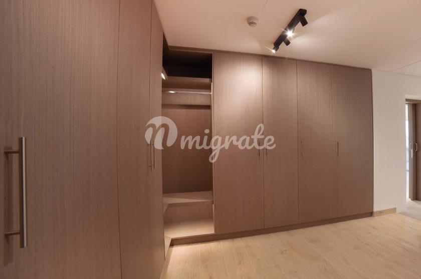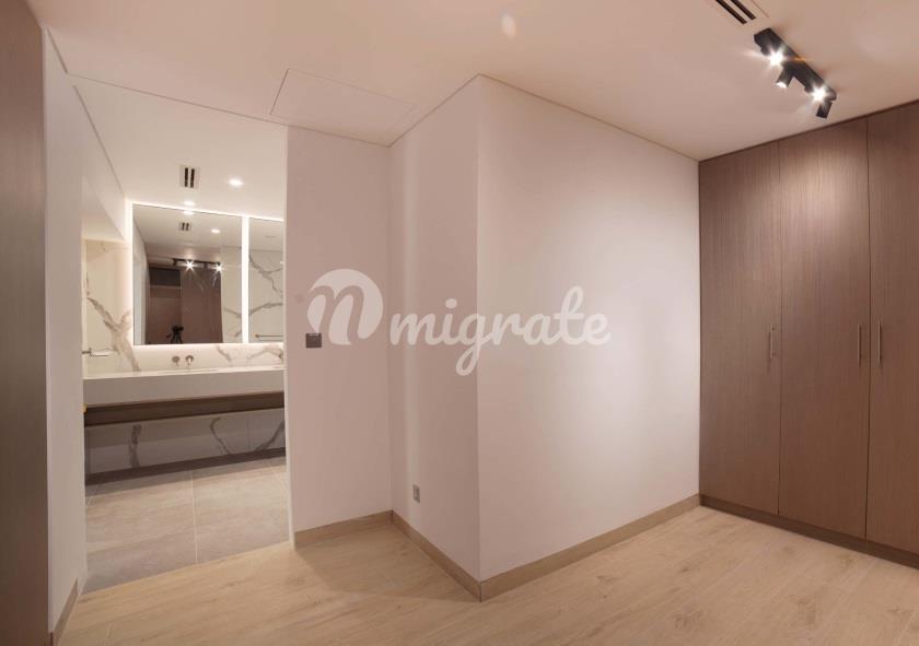 Парадное фойе ведет к роскошной гостиной, открытой кухне и гостиной для развлечений. На нижнем уровне находится комната для прислуги с ванной комнатой, гостевая спальня и вторая кухня для подготовки. Поднявшись на один уровень выше, мы можем наблюдать прекрасно поставленные пространства, изображающие главную спальню с главной ванной комнатой и главной гардеробной, за которой следует еще одна семейная гостиная, два балкона и красиво украшенный световой люк. Уникальные элементы интерьера максимально используют естественное освещение благодаря балконам, с которых открывается беспрепятственный панорамный вид на лагуны и остров Пальма Джумейра.