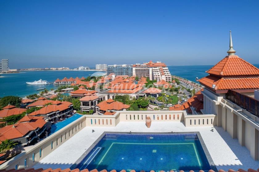 Внутри пентхауса с 5 спальнями и частным бассейном Роскошная резиденция демонстрирует захватывающий вид на панораму Пальм-Джумейра и Персидский залив, приветствуя владельцев и гостей в характерном тайском стиле, преобладающем во всех интерьерах и экстерьерах. Пентхаус с высококачественной отделкой и инновационными технологическими решениями предлагает полностью интегрированное качественное обслуживание в самом центре спокойной обстановки, где вы получите тот же уровень обслуживания, что и на пятизвездочном курорте Anantara. В интерьерах есть окна от пола до потолка, обеспечивающие максимальное естественное освещение, паркетные деревянные полы, гранитные столешницы и первоклассная кухонная техника.