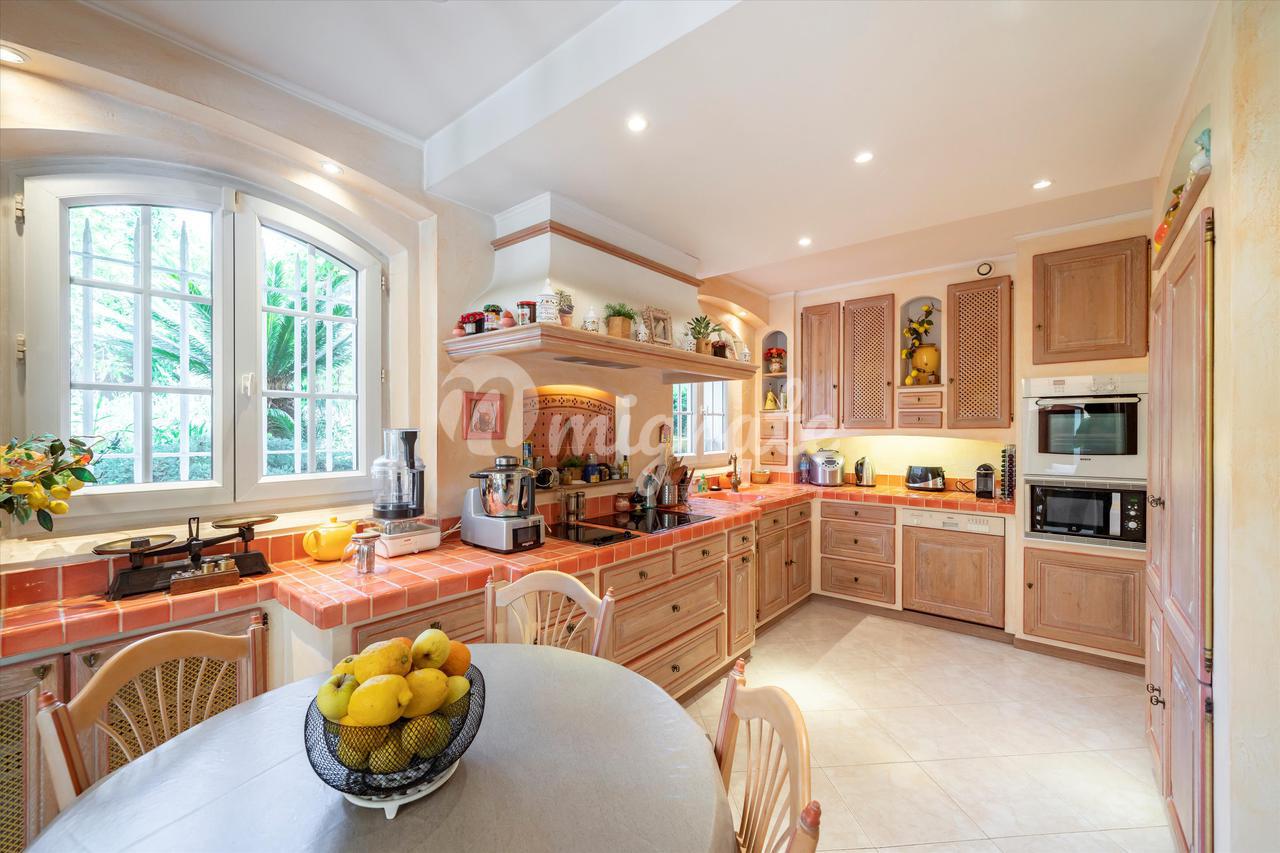 Эта вилла расположена в тихом и удобном месте, откуда можно легко добраться до местных достопримечательностей. Вилла предлагает около 206 кв.м. жилья и включает в себя: Прихожая, гостиная / столовая с видом на море, спальня с ванной комнатой, просторная оборудованная кухня и две спальни с собственными ванными комнатами. На цокольном этаже находится большое помещение площадью около 120 кв.м, которое в настоящее время используется для хранения и подсобного помещения. В отеле также есть гостевые апартаменты с размещением на двух уровнях со спальней, ванной комнатой и гостиной. Окруженная садами, выходящими на юго-восток, площадью около 1550 кв.м., вилла имеет несколько террас, бассейн с подогревом, зону для игры в петанк, двойной гараж и парковку на несколько машин. В собственности также есть система безопасности, кондиционер, электрические ворота и т. Д.