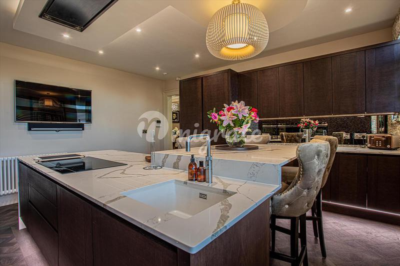 Эта превосходная квартира на первом этаже площадью более 1300 кв. м отличается исключительным качеством и стилем, а также роскошной отделкой. За просторной прихожей с хозяйственным шкафом и гардеробно