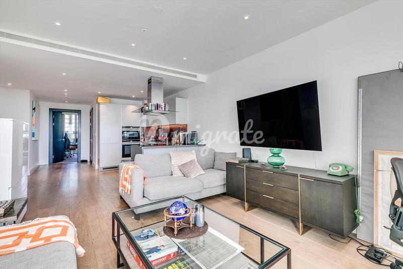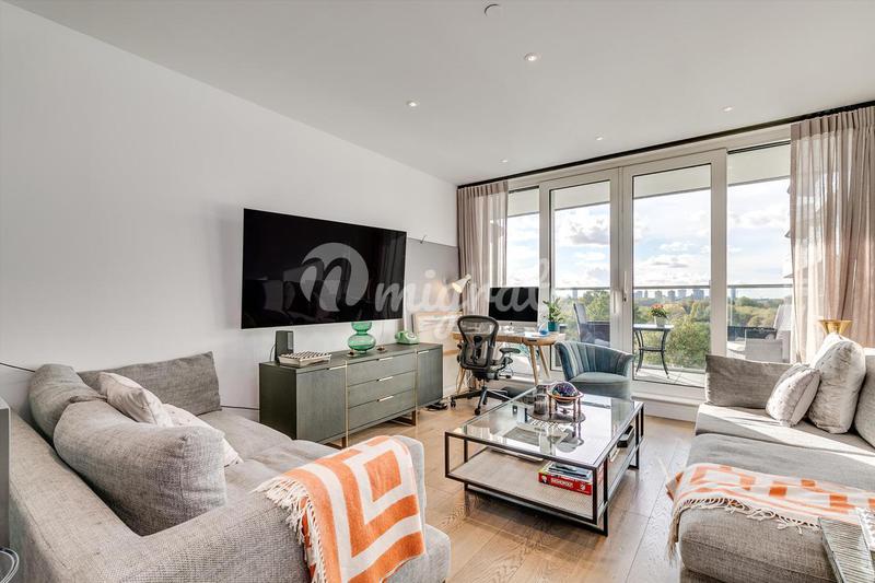Эти просторные апартаменты с двумя спальнями расположены на девятом этаже этого популярного комплекса. Из них открывается прекрасный вид на парк Баттерси. Входя в гостиную, большие окна от пола до пот