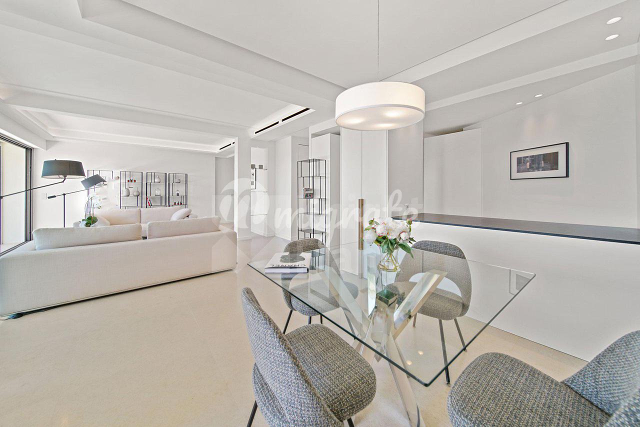 Апартаменты с видом на море расположены на известном Бульваре Круазет в Каннах в охраняемой резиденции, оснащенной лифтом. Апартаменты включают просторные террасы, гостиную, кухню, 3 спальни, 3 ванные комнаты и гостевой санузел. Апартаменты полностью меблированы. В стоимость включен гараж и кладовая.