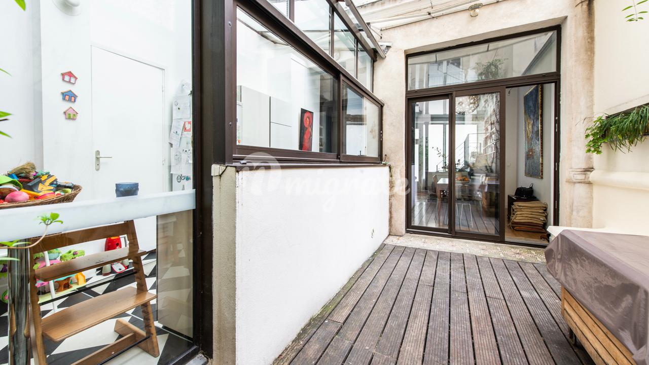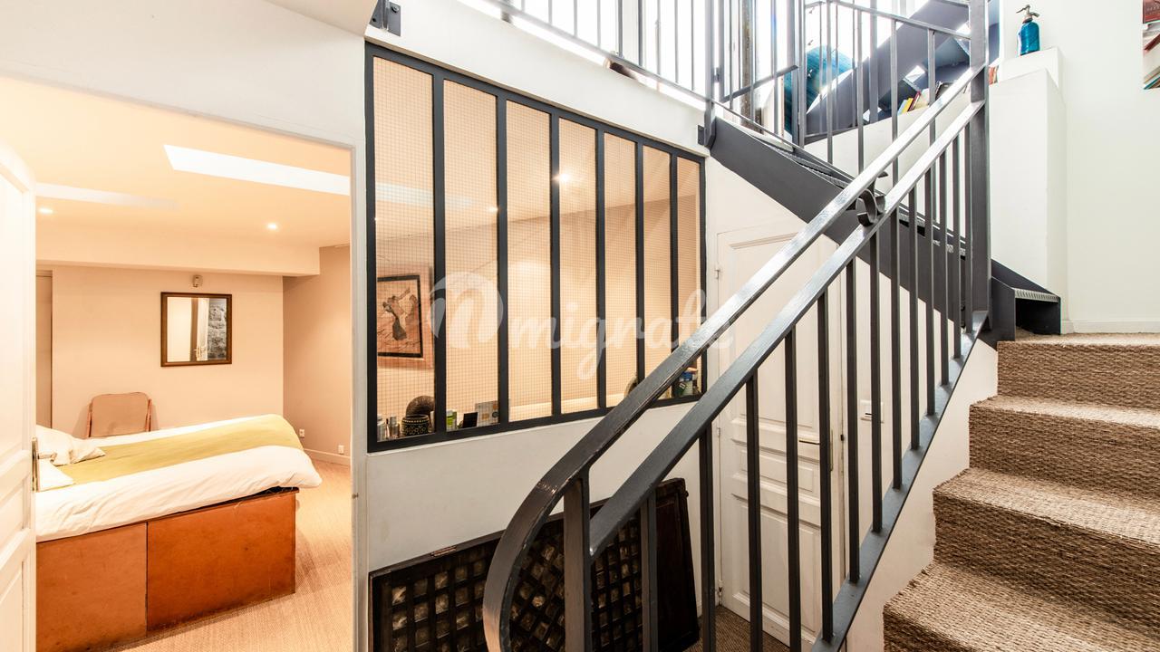 Прекрасный лофт расположен в 18-ом округе Парижа. На первом этаже площадью 146 кв. м расположена гостиная, кухня, 2 спальни, ванная комната и отдельный санузел. Нижний этаж площадью 134 кв. м включает просторную спальню, еще одну спальню (кабинет), ванную комнату, отдельный санузел и прачечную.