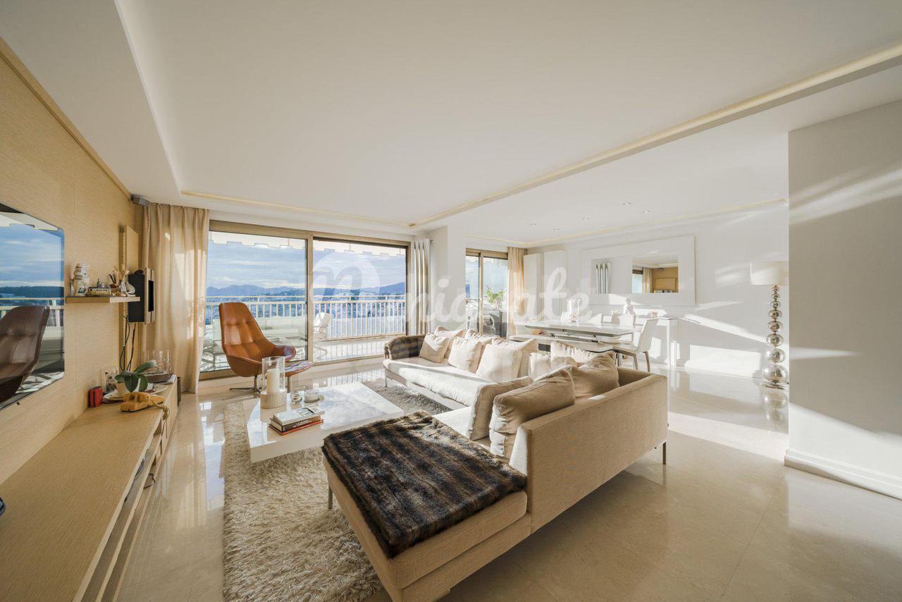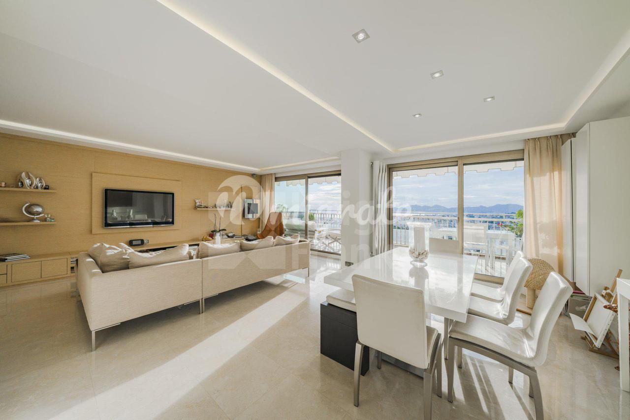 Апартаменты с видом на море, Леринские острова и побережье расположены в тихом жилом районе в Каннах. Апартаменты находятся на 9-ом этаже резиденции с паркингом, теннисным кортом и бассейном.